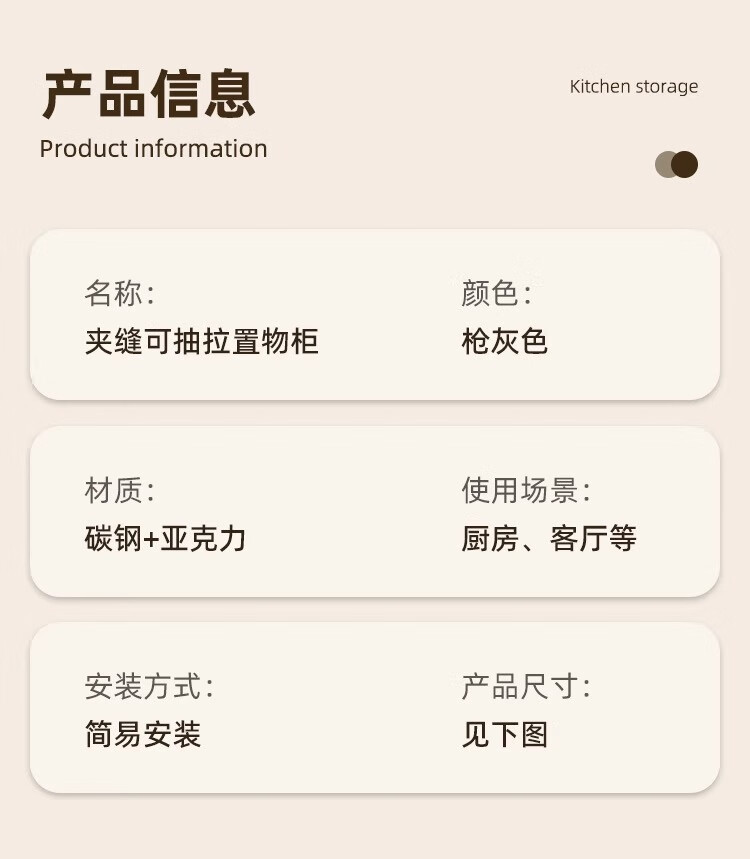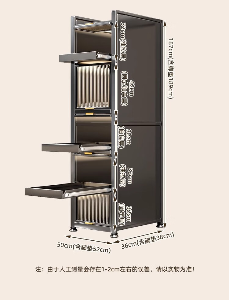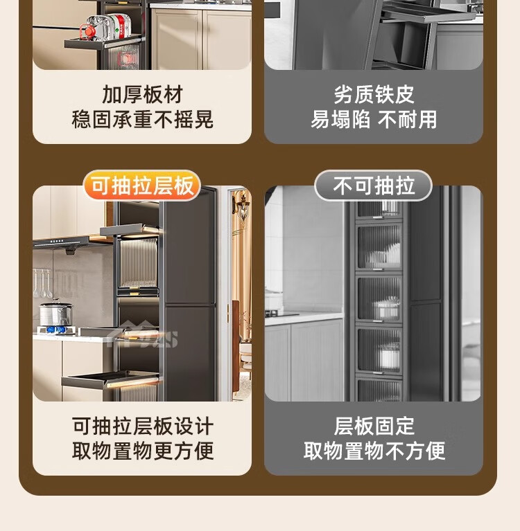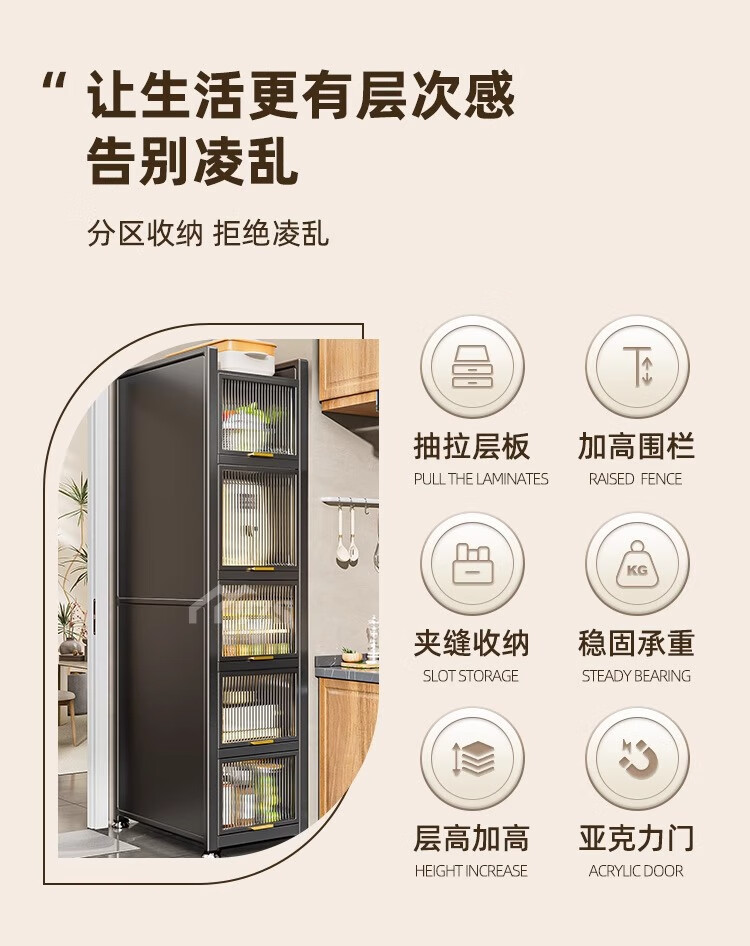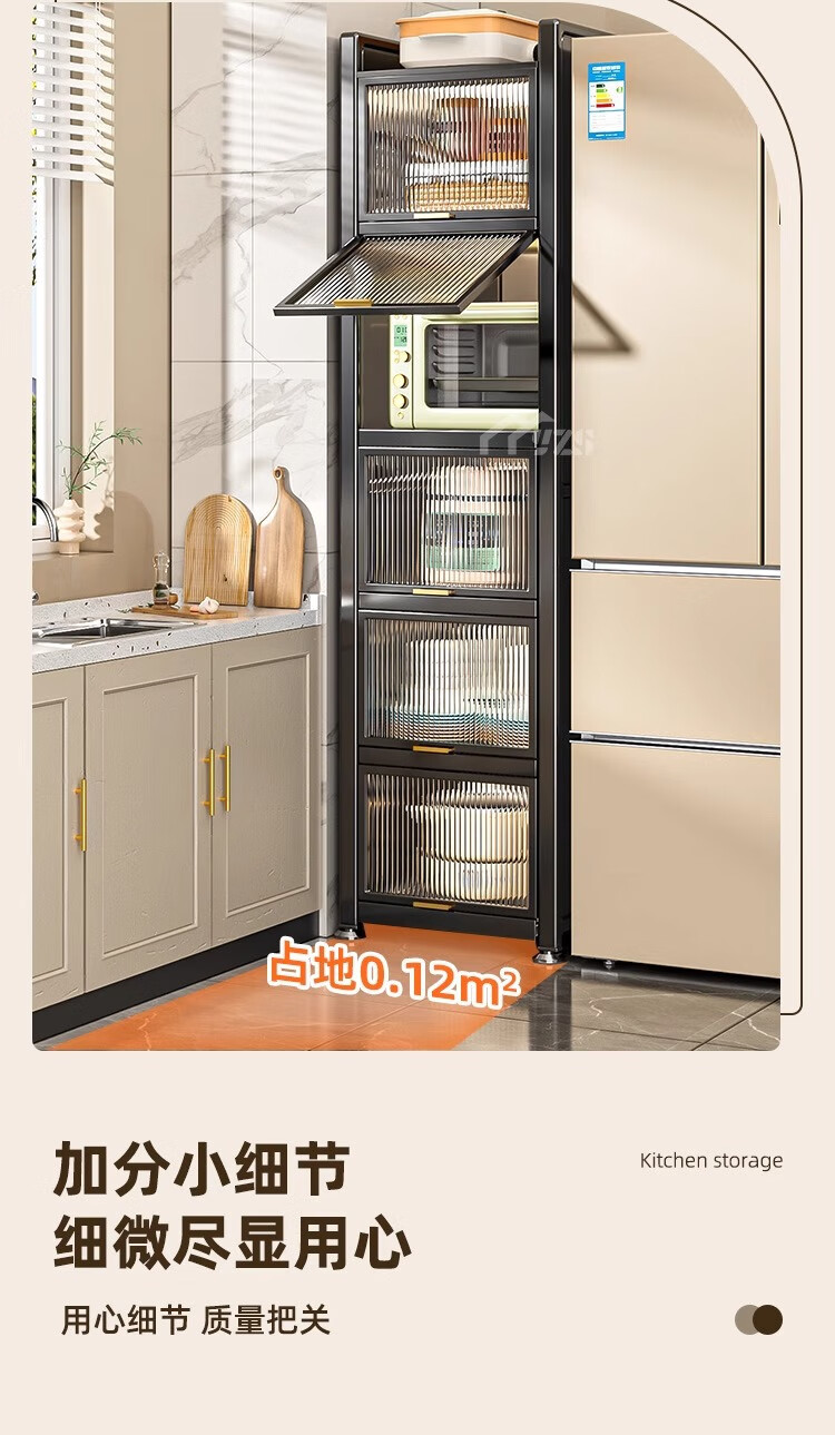 迈途森冰箱夹缝收纳柜碳钢缝隙窄边置物架厨房侧面抽拉柜超极窄缝储物柜 4层-白色-30宽123高CM