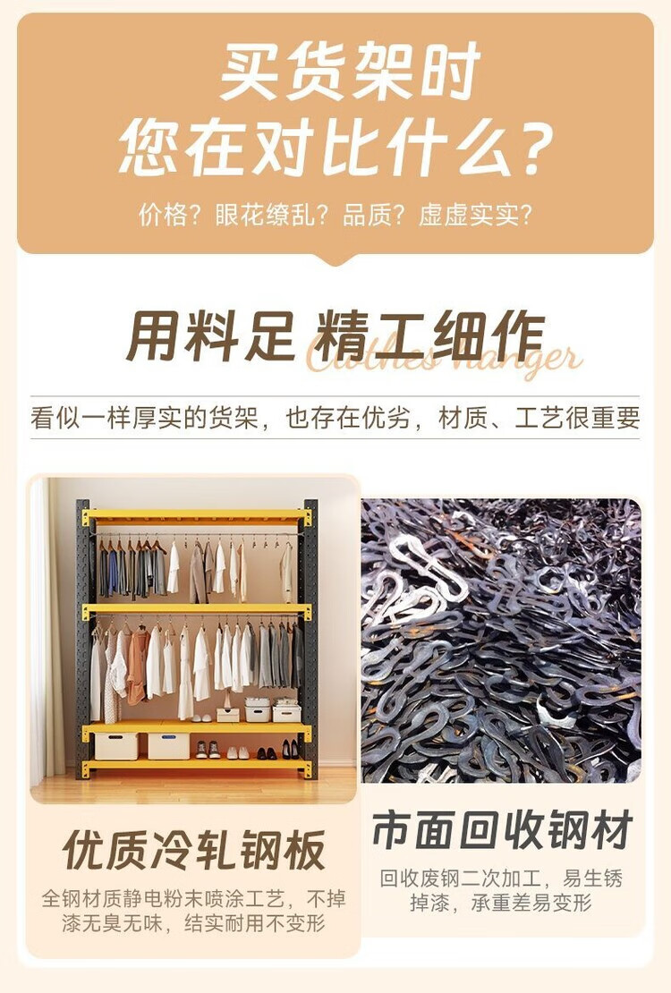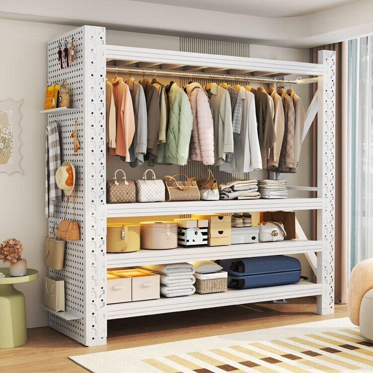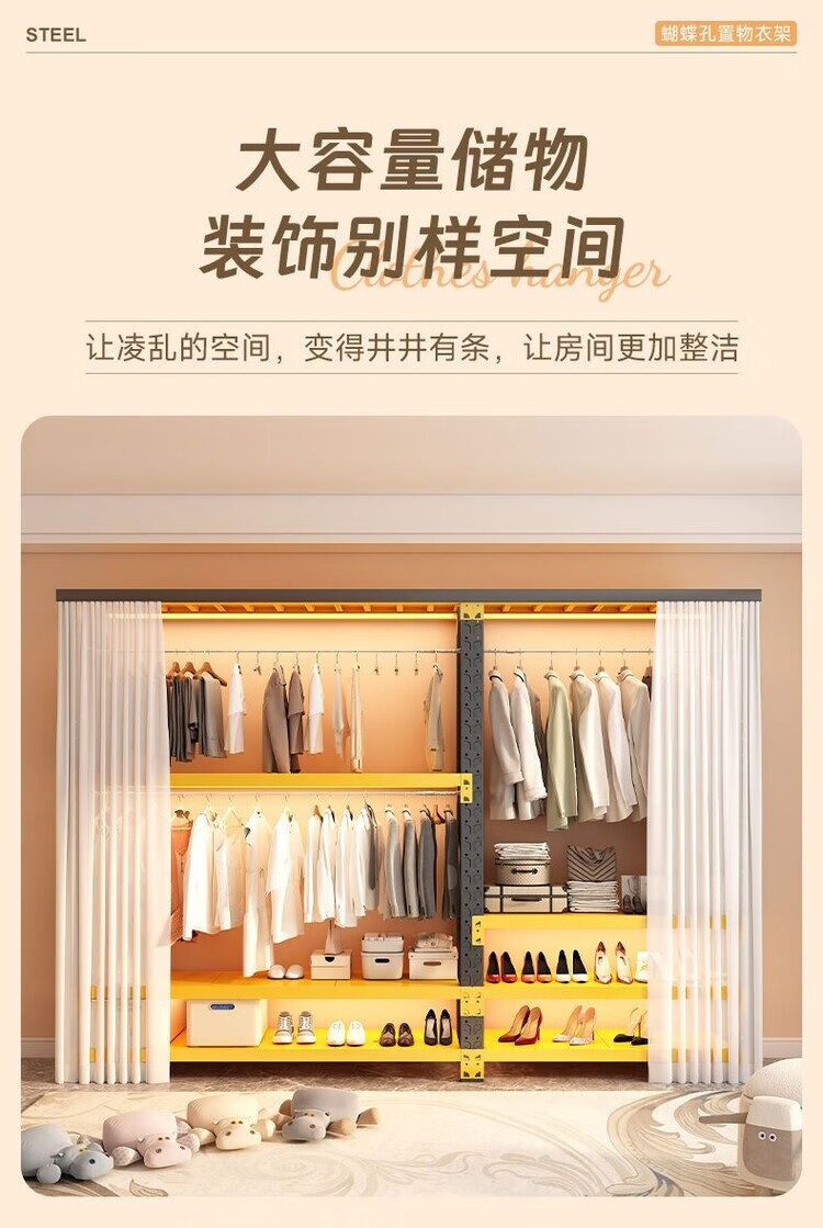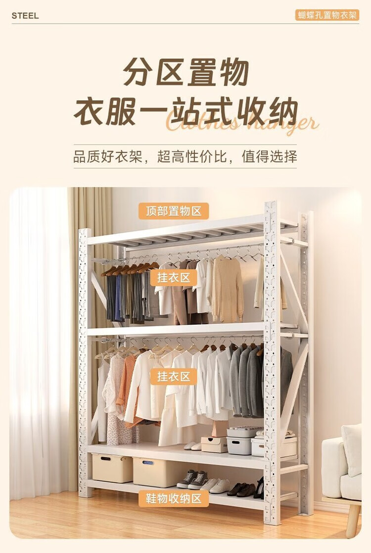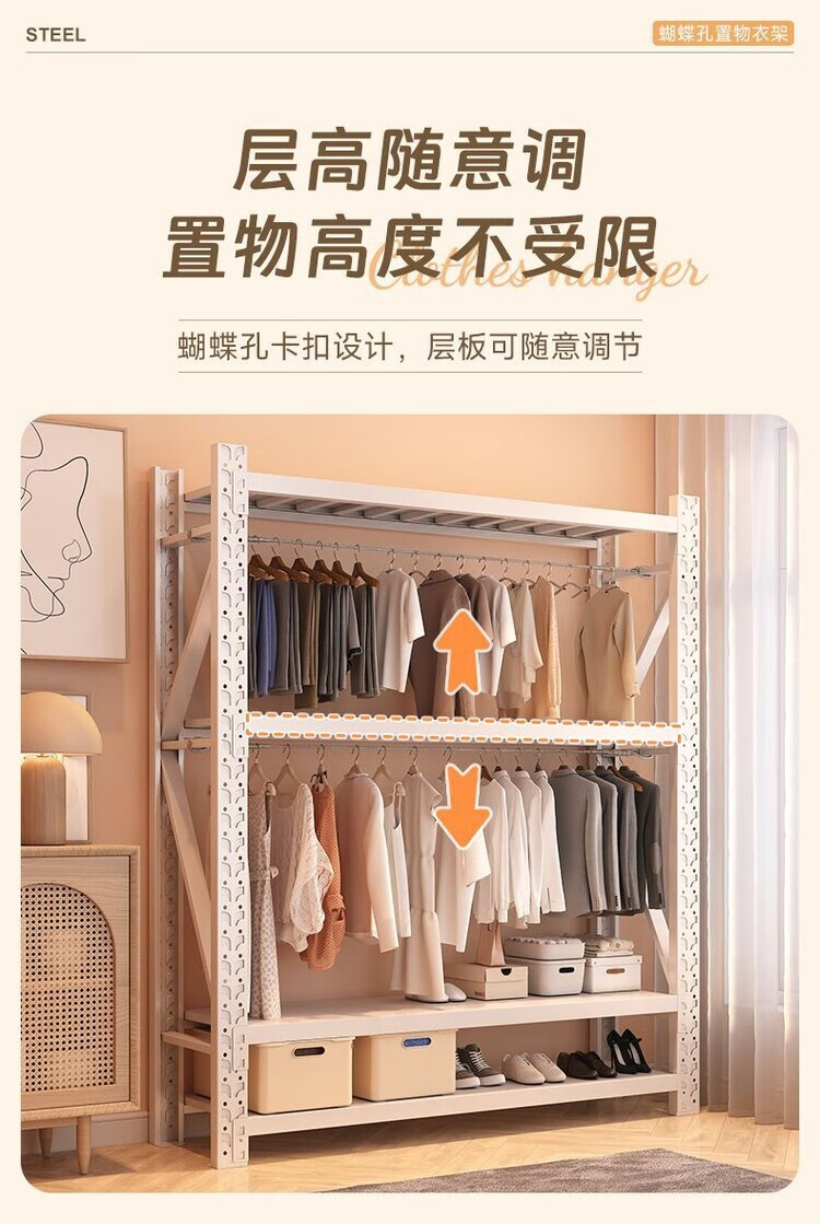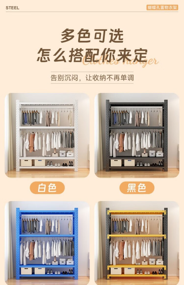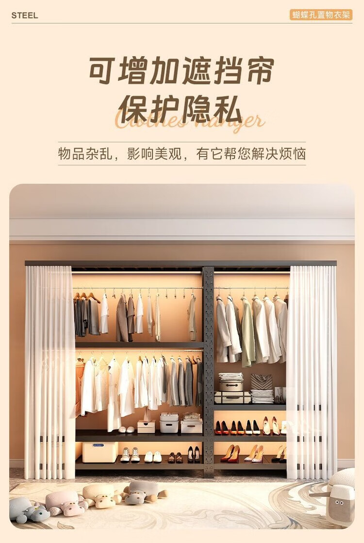 迈途森出租屋衣架货架衣柜隔板分层架鞋架收纳柜挂衣服立式衣柜耐用货架 【三层置物板】带两根定制挂衣杆【高端黑】 200*60CM*200【承重强悍】