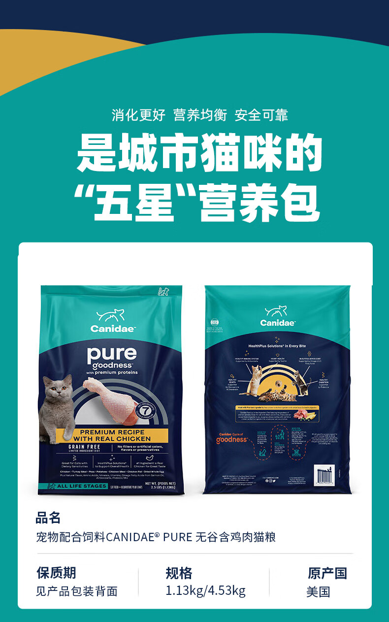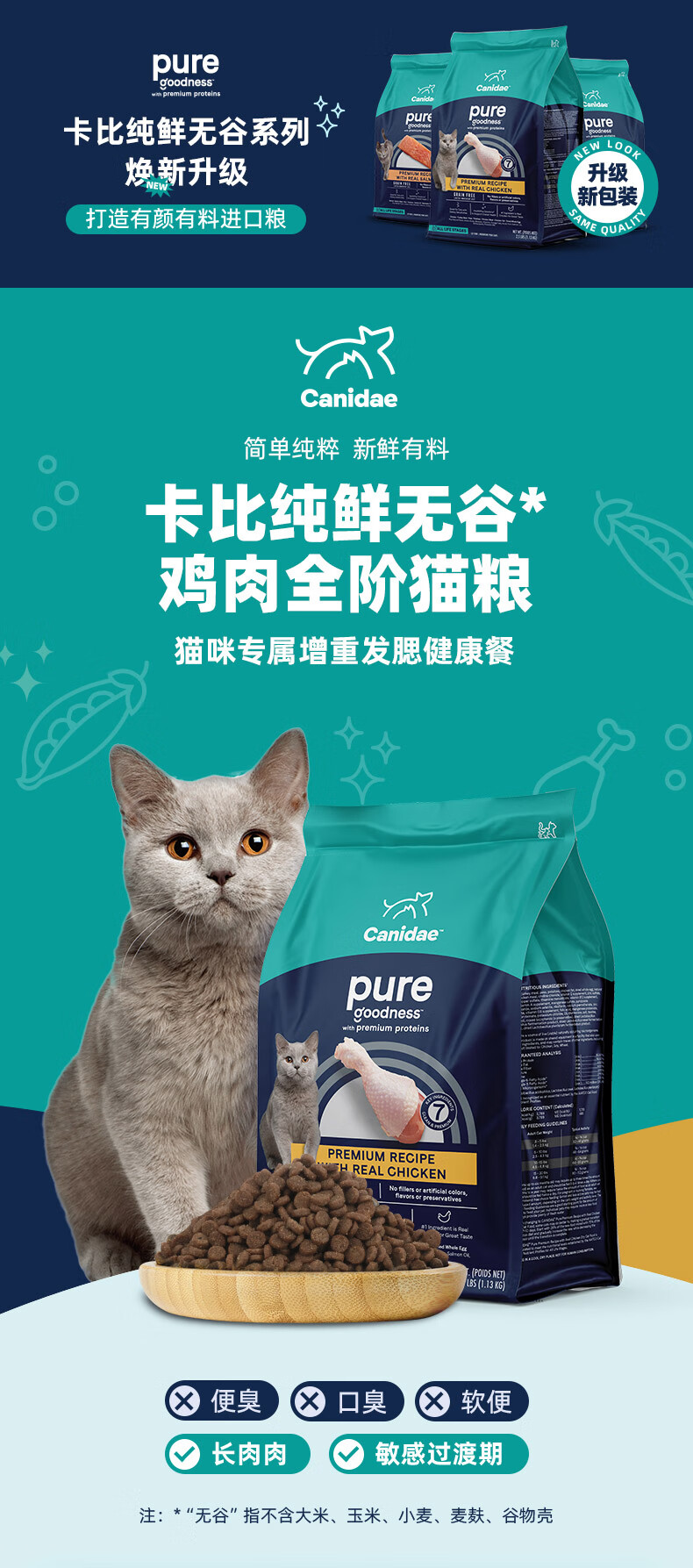 卡比【效期26年1月】卡比猫粮无谷天然粮低敏鲜鸡肉猫粮10磅增肥发腮 鸡肉味