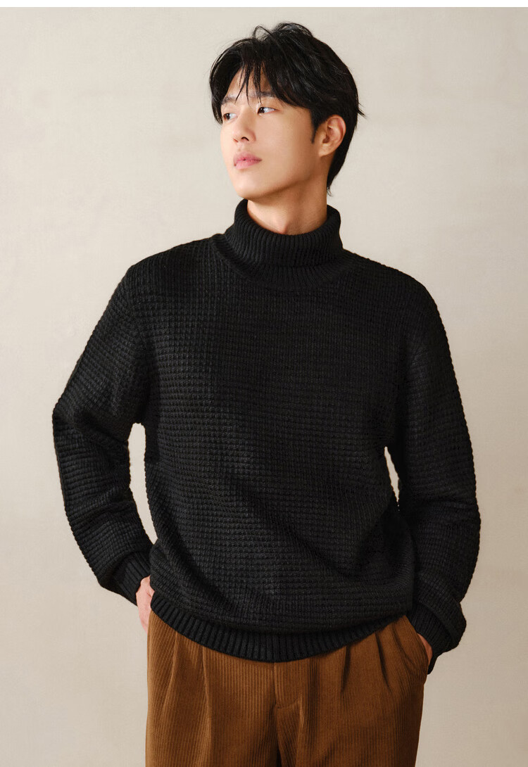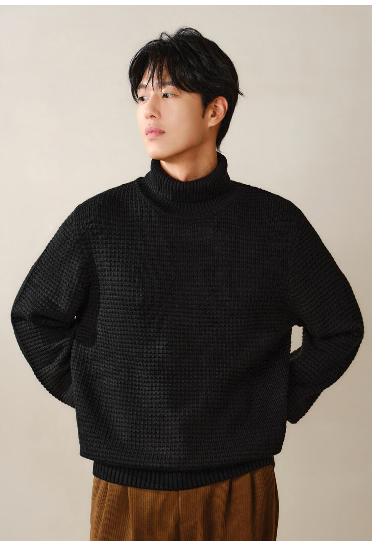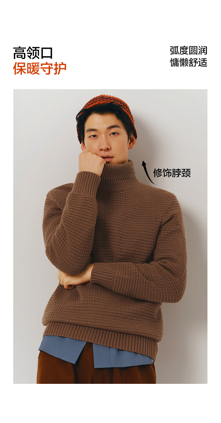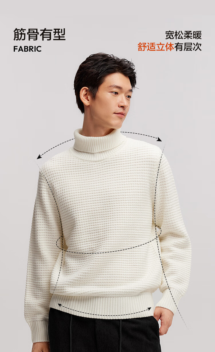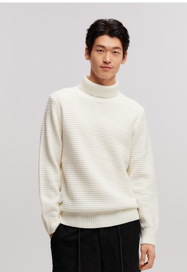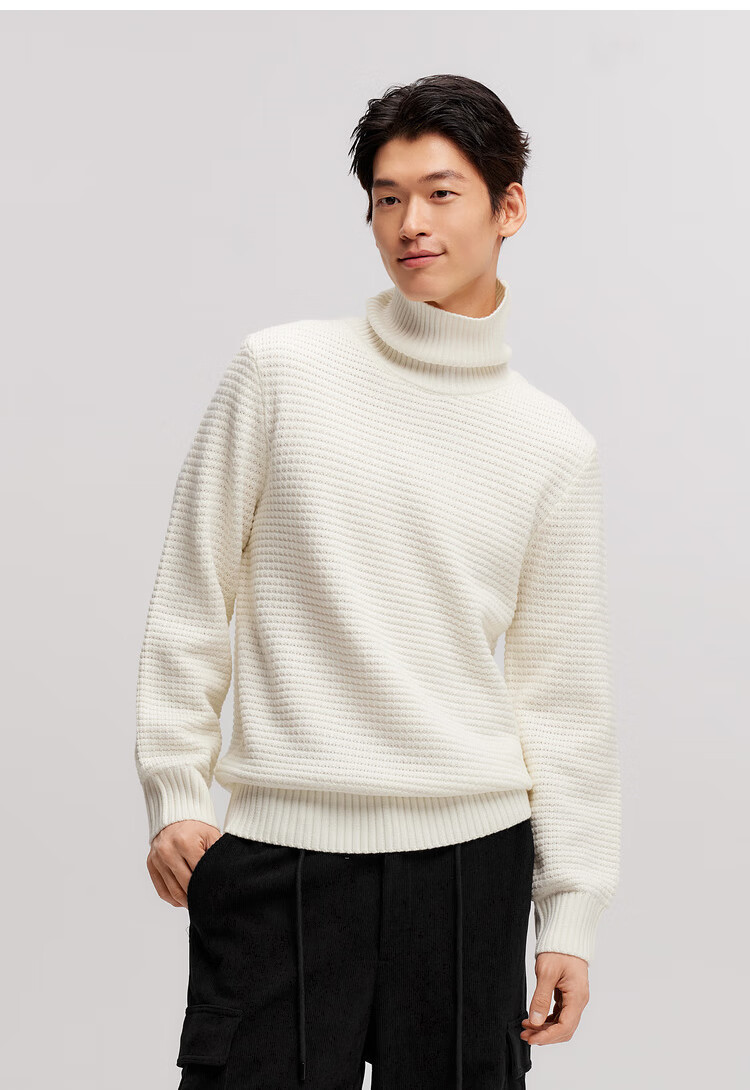 森马(Semir)毛衣男高领内搭冬季毛衫肌理感绞花打底衫针织衫 奶白10534 XL