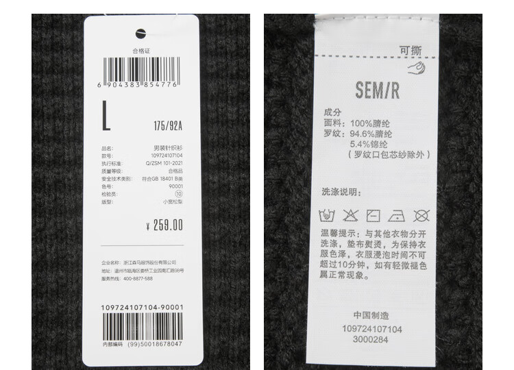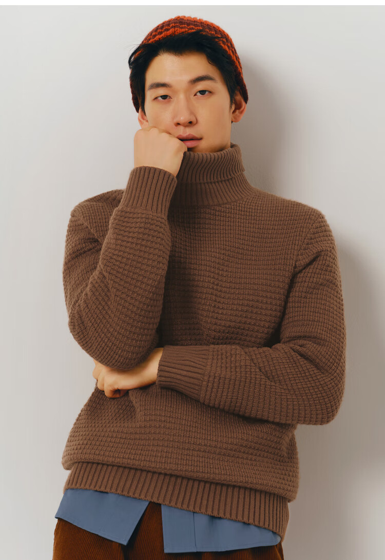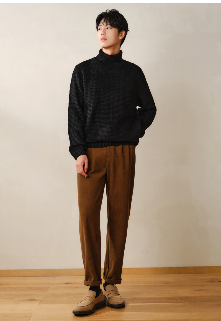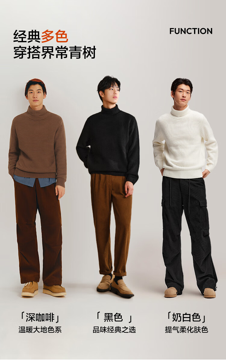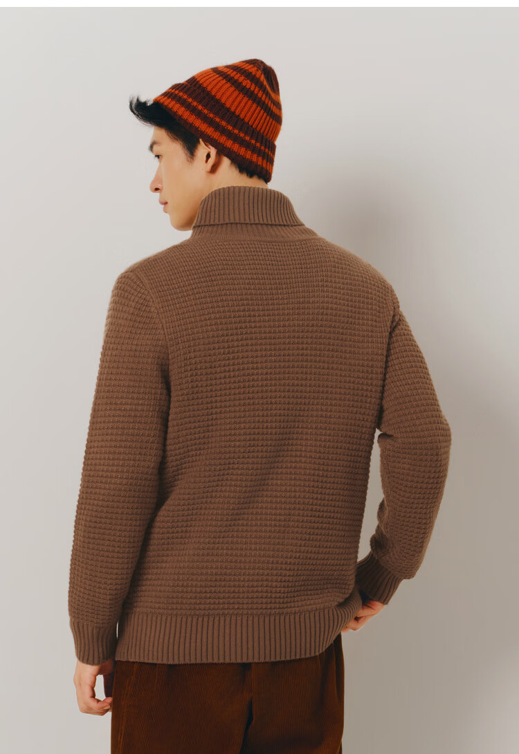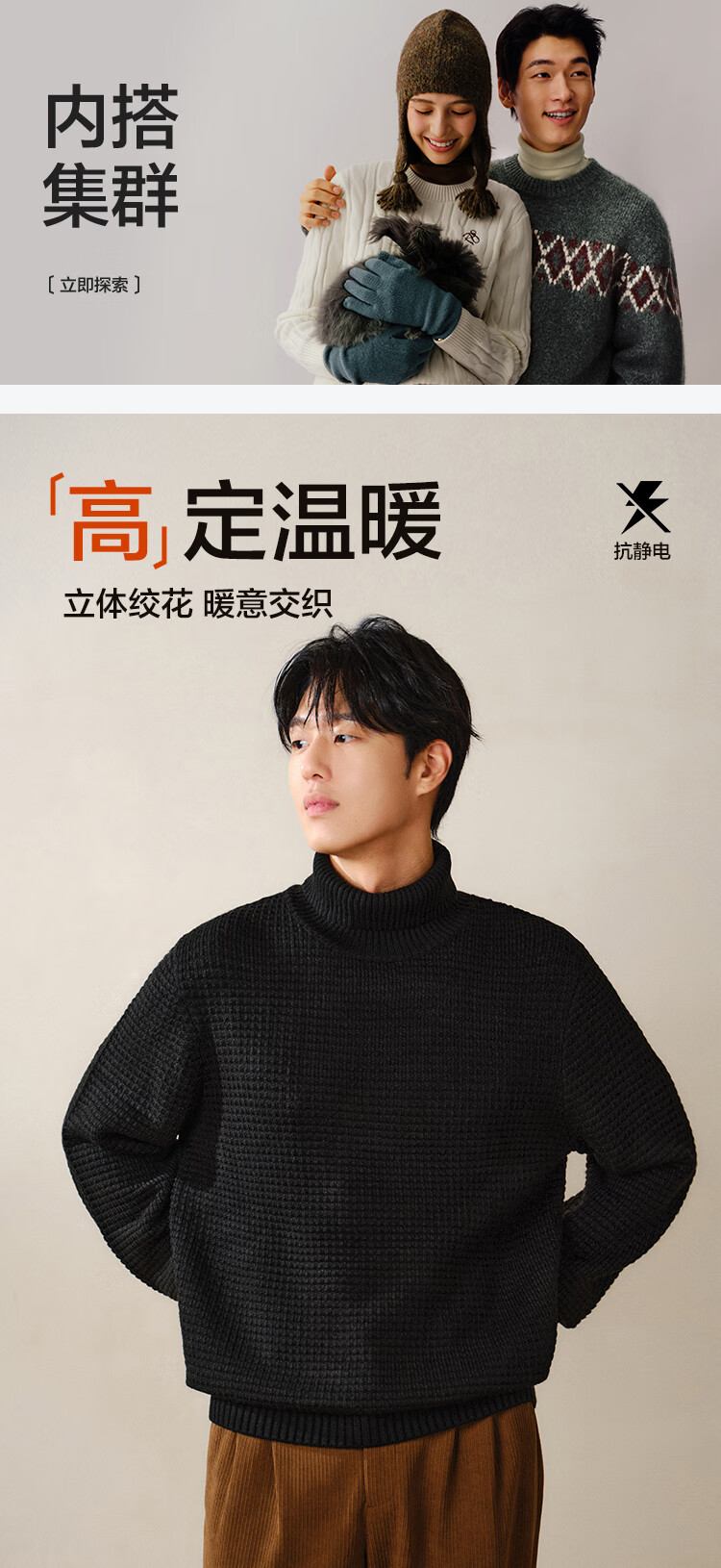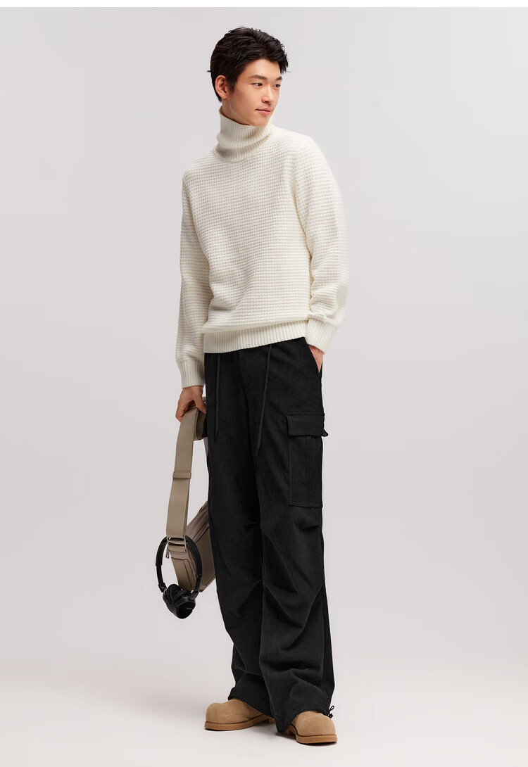 森马(Semir)毛衣男高领内搭冬季毛衫肌理感绞花打底衫针织衫 奶白10534 XL