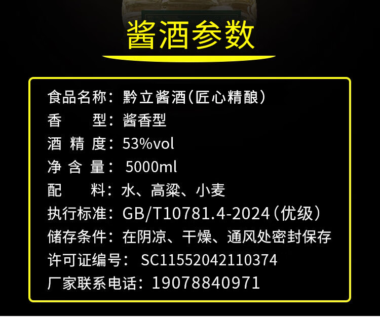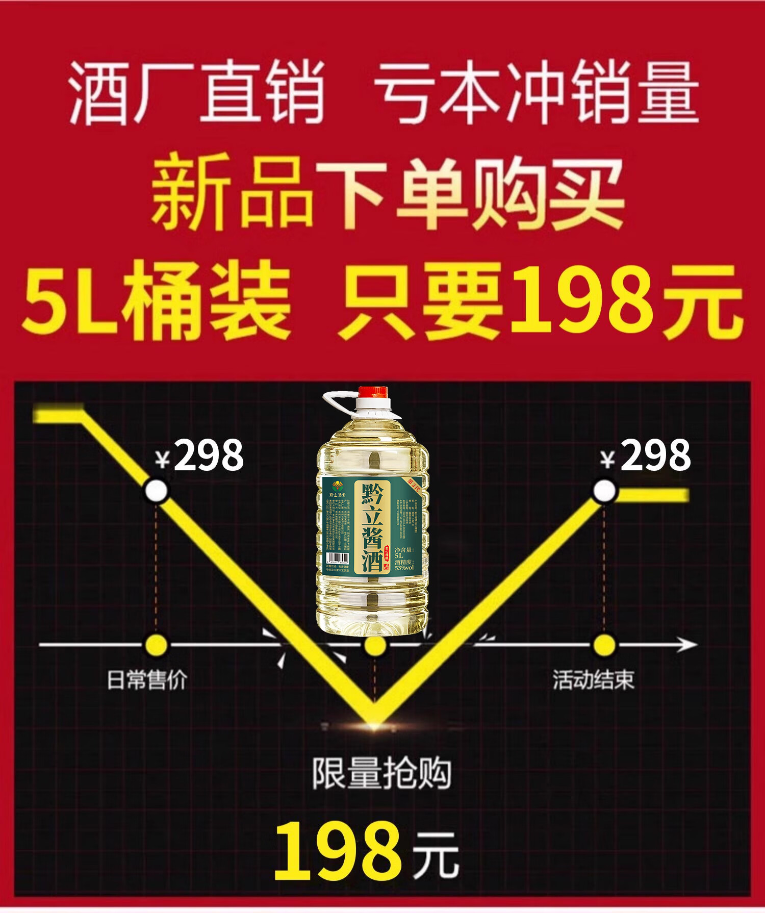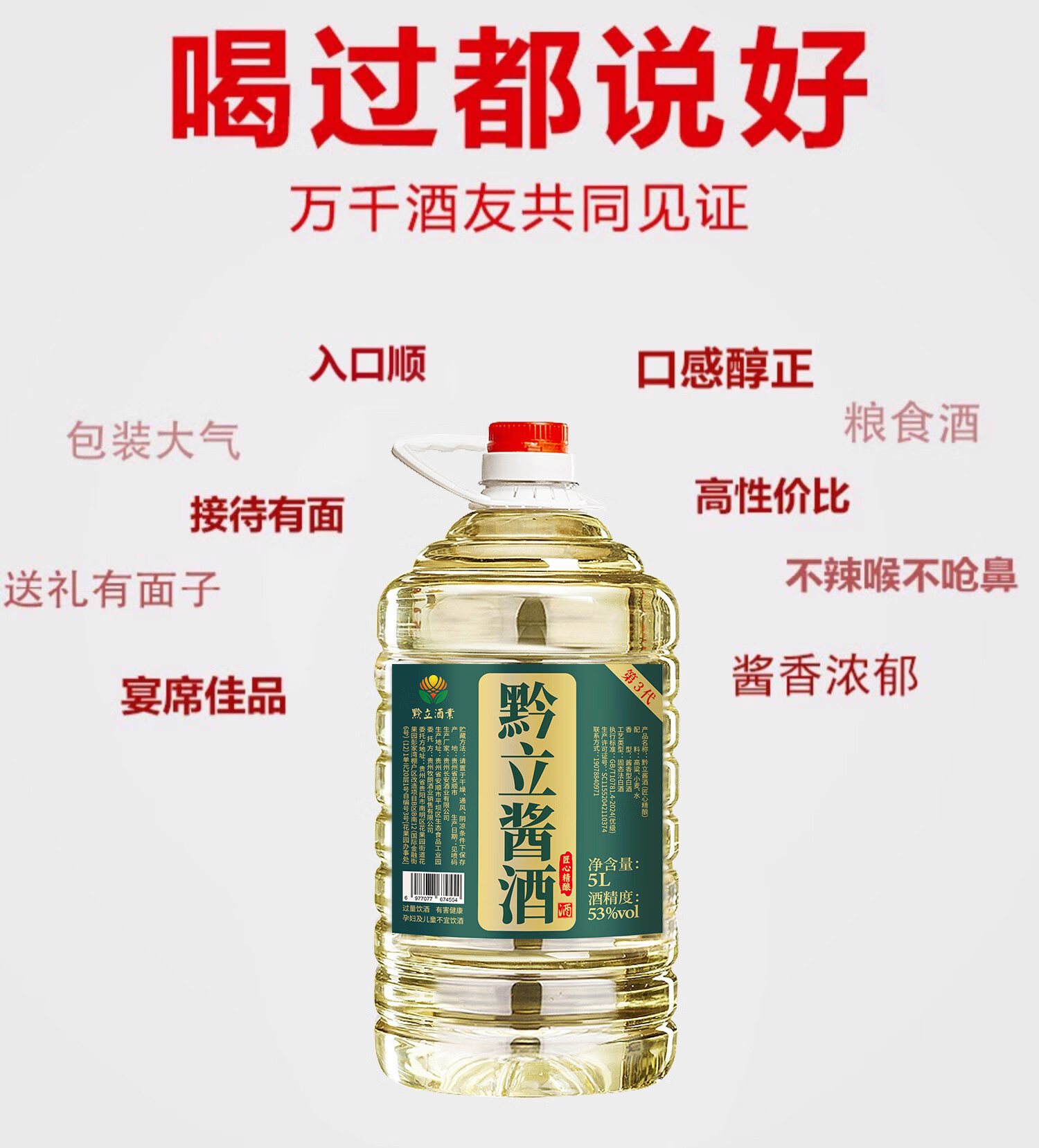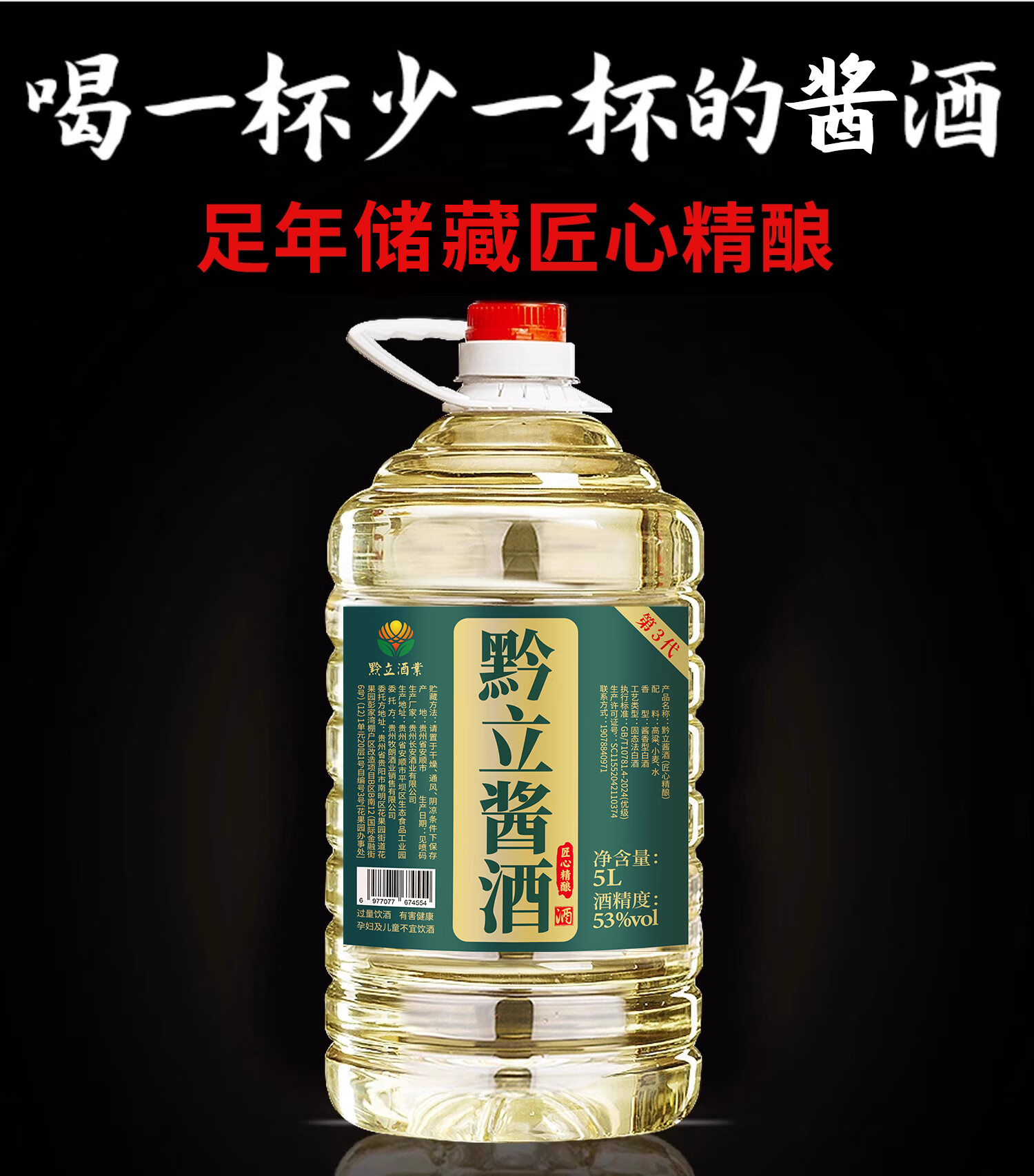 黔立贵州酱香型纯粮食酒高粱酒散装53度桶装10斤高度白酒泡酒 53度 5L 1桶 大桶装白酒5L 一桶