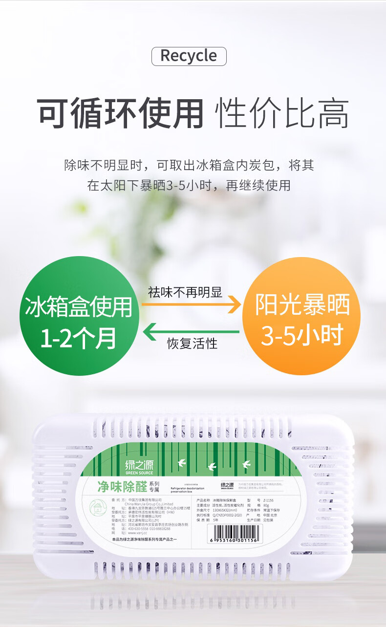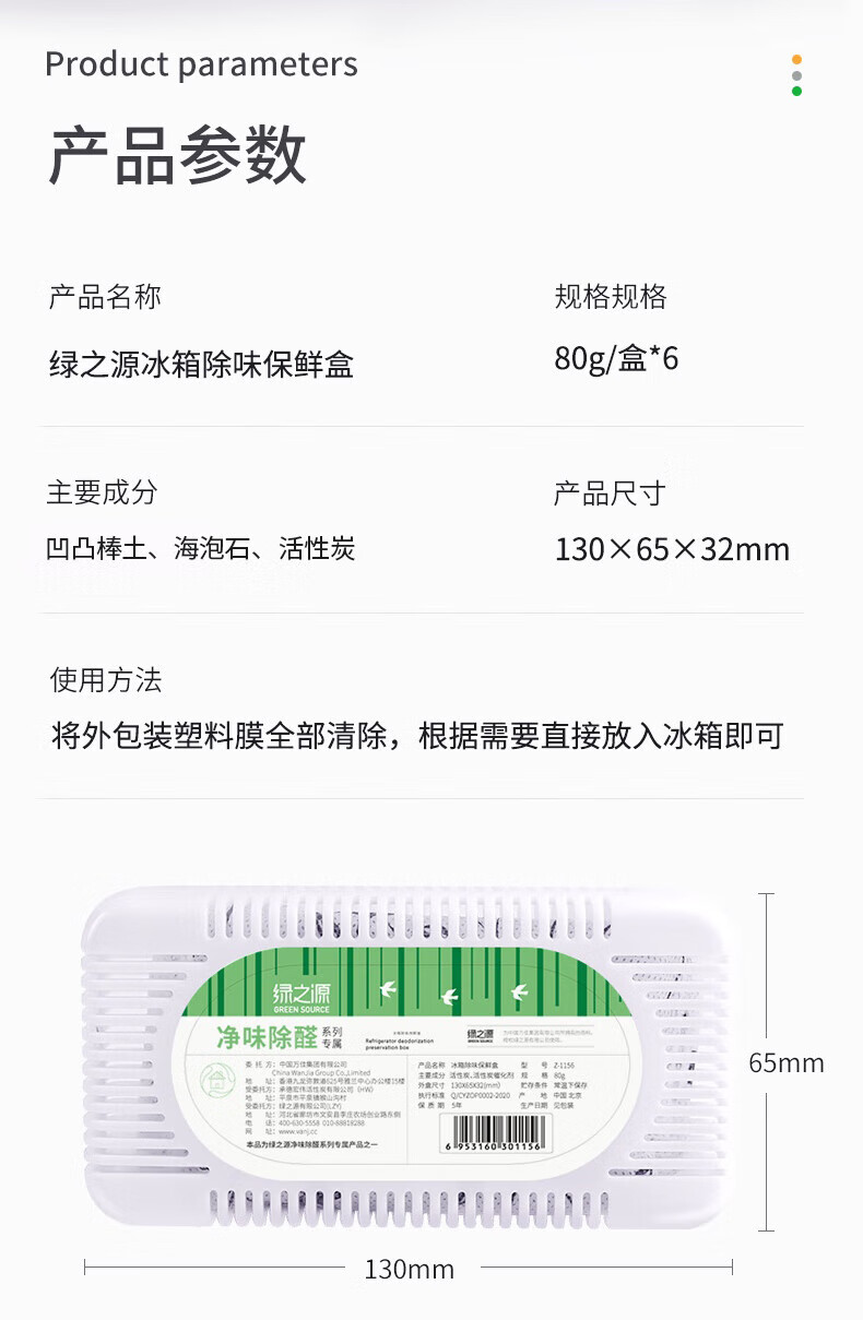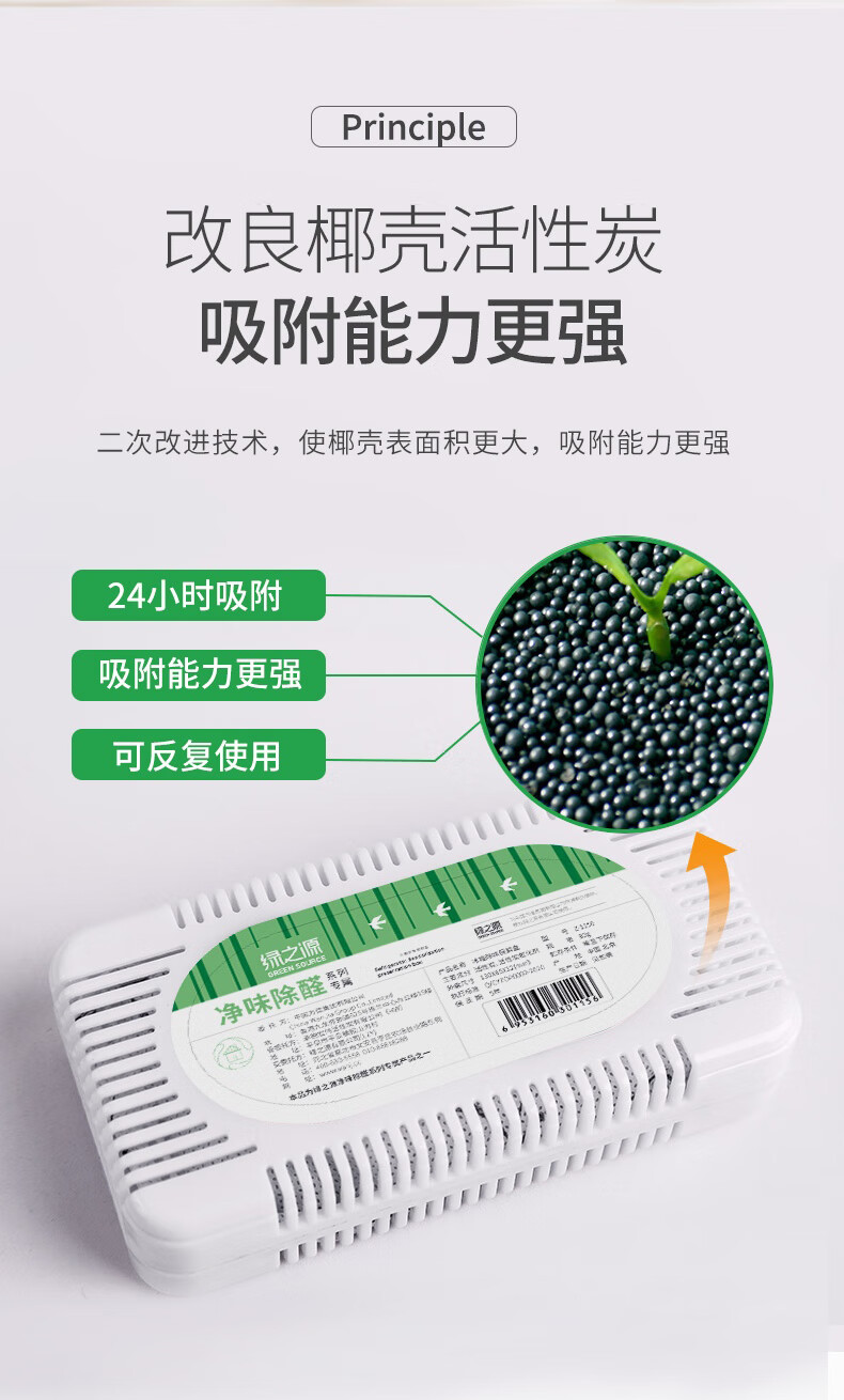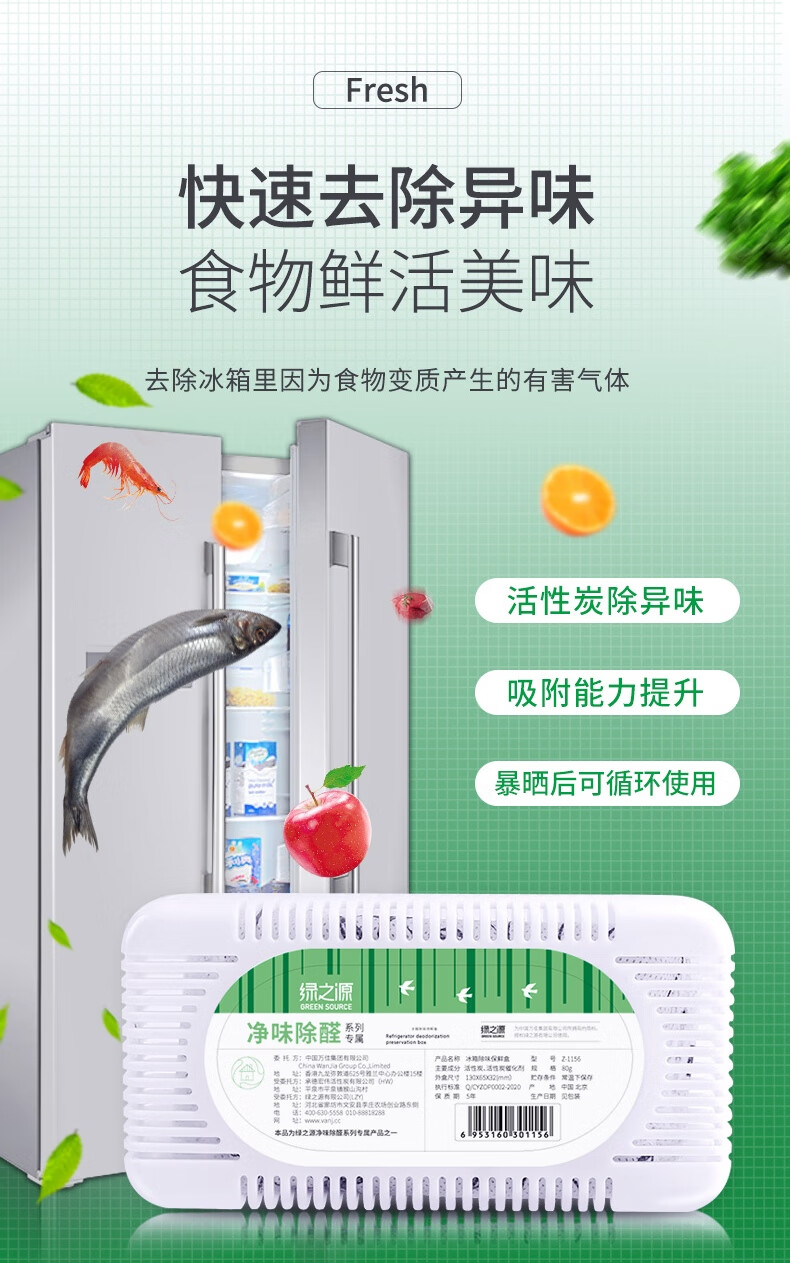 绿之源 冰箱除味剂6盒装 活性炭去除异味剂椰壳活性炭包除湿
