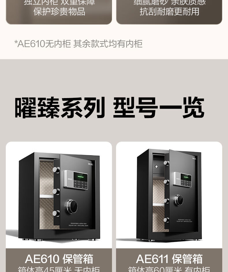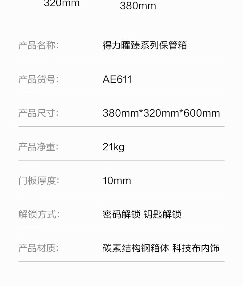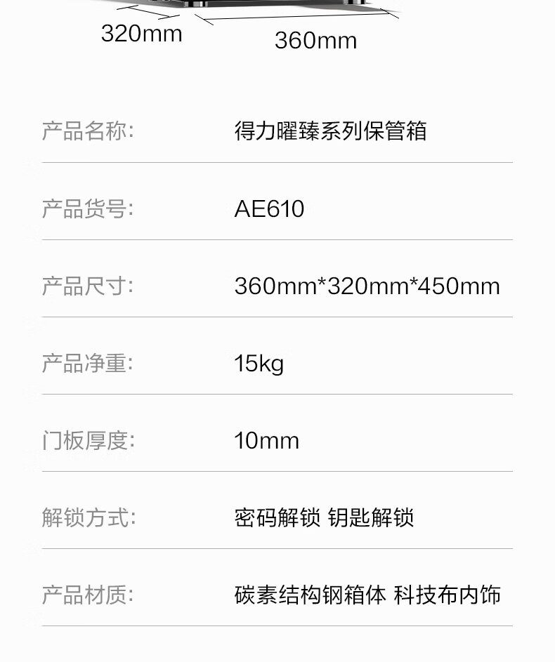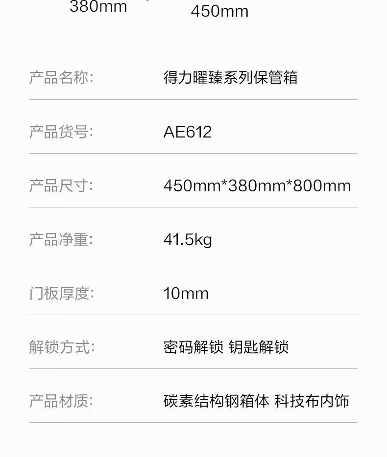得力(deli)保险柜 曜臻系列电子密码保险保管箱 办公家用保管保险箱 全钢实心加粗锁闩 高45cm AE610