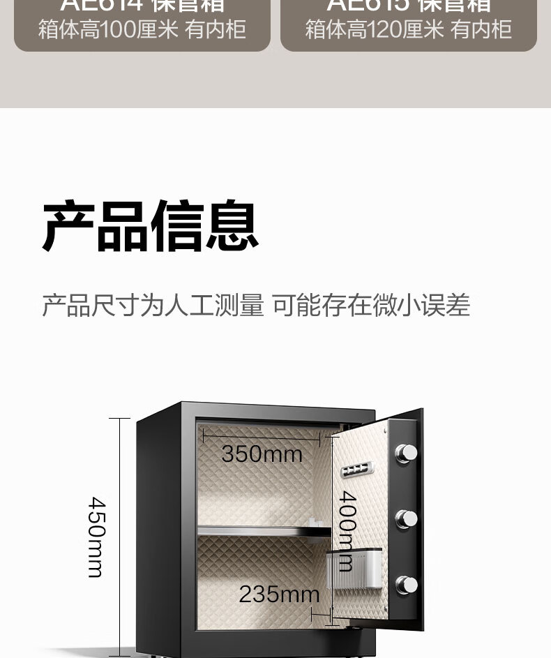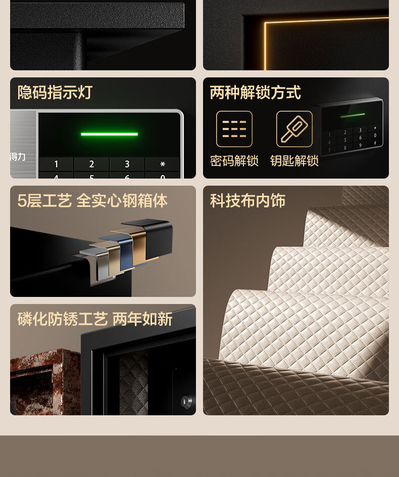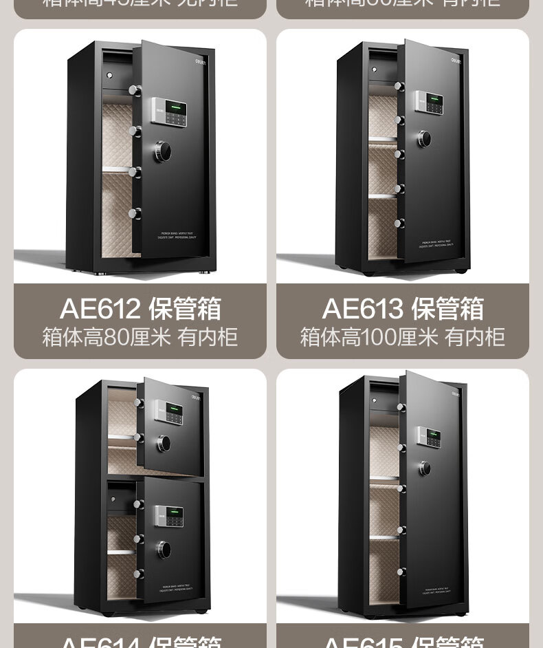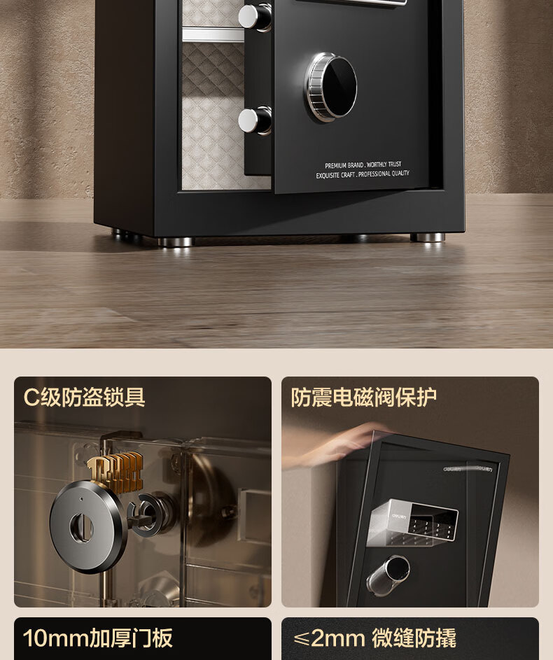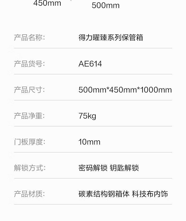 得力(deli)保险柜 曜臻系列电子密码保险保管箱 办公家用保管保险箱 全钢实心加粗锁闩 高45cm AE610