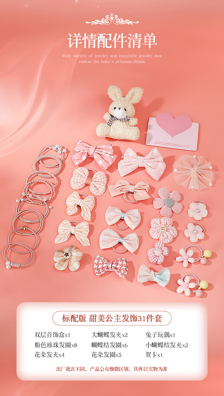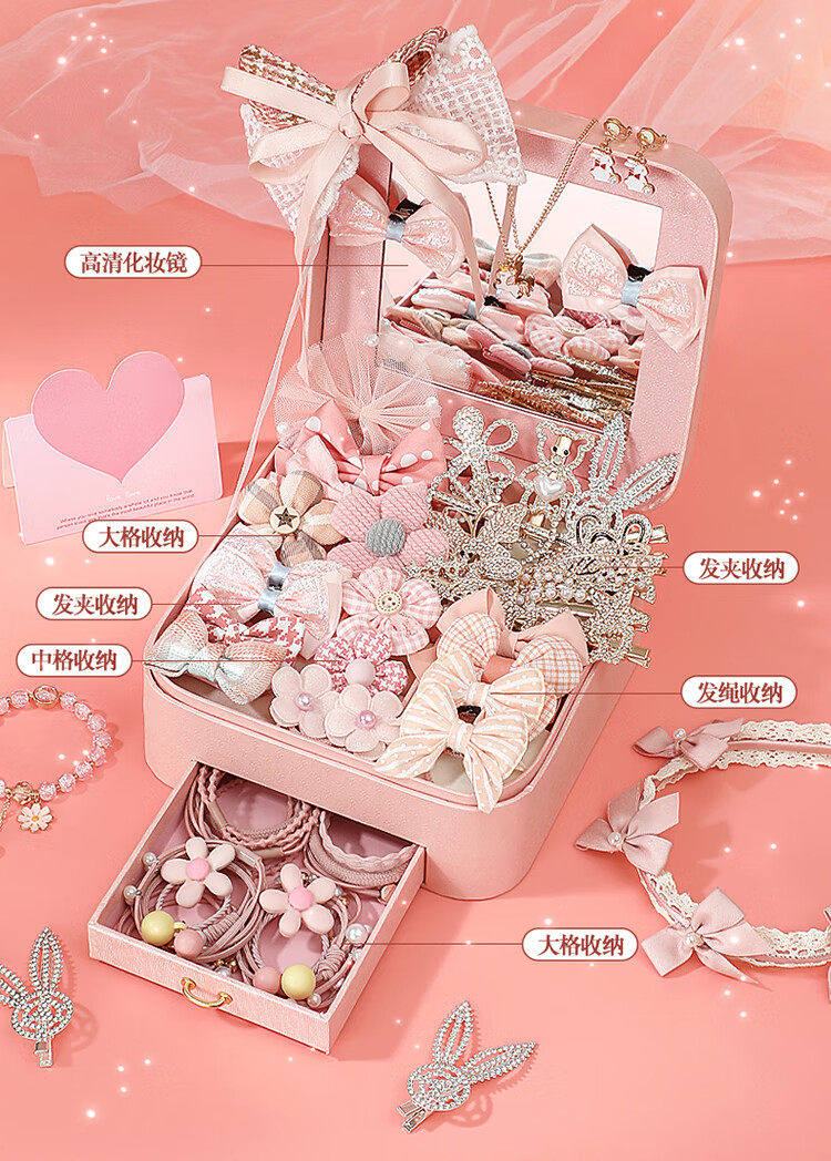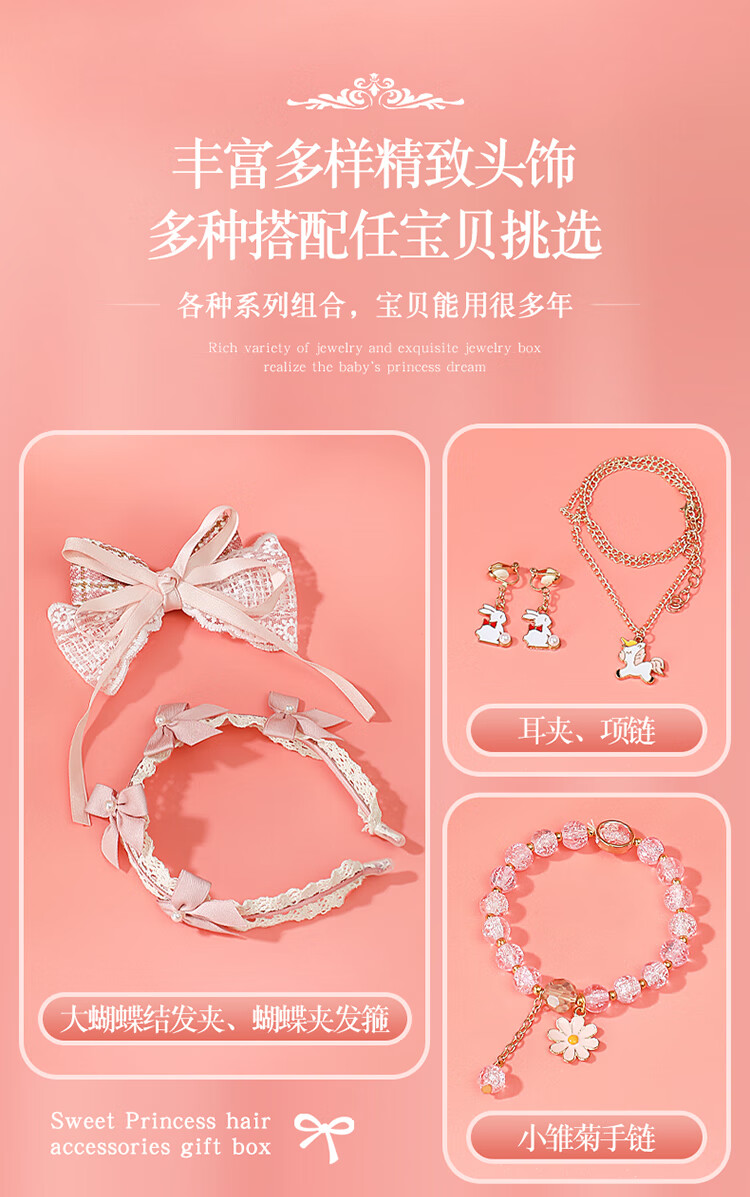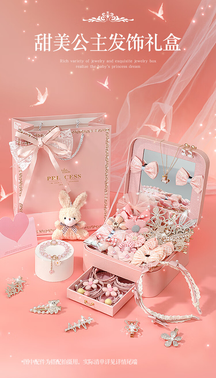 皇恩儿童公主发饰礼盒首饰盒套装小女孩玩具头饰4-6岁7-12-15生日礼物