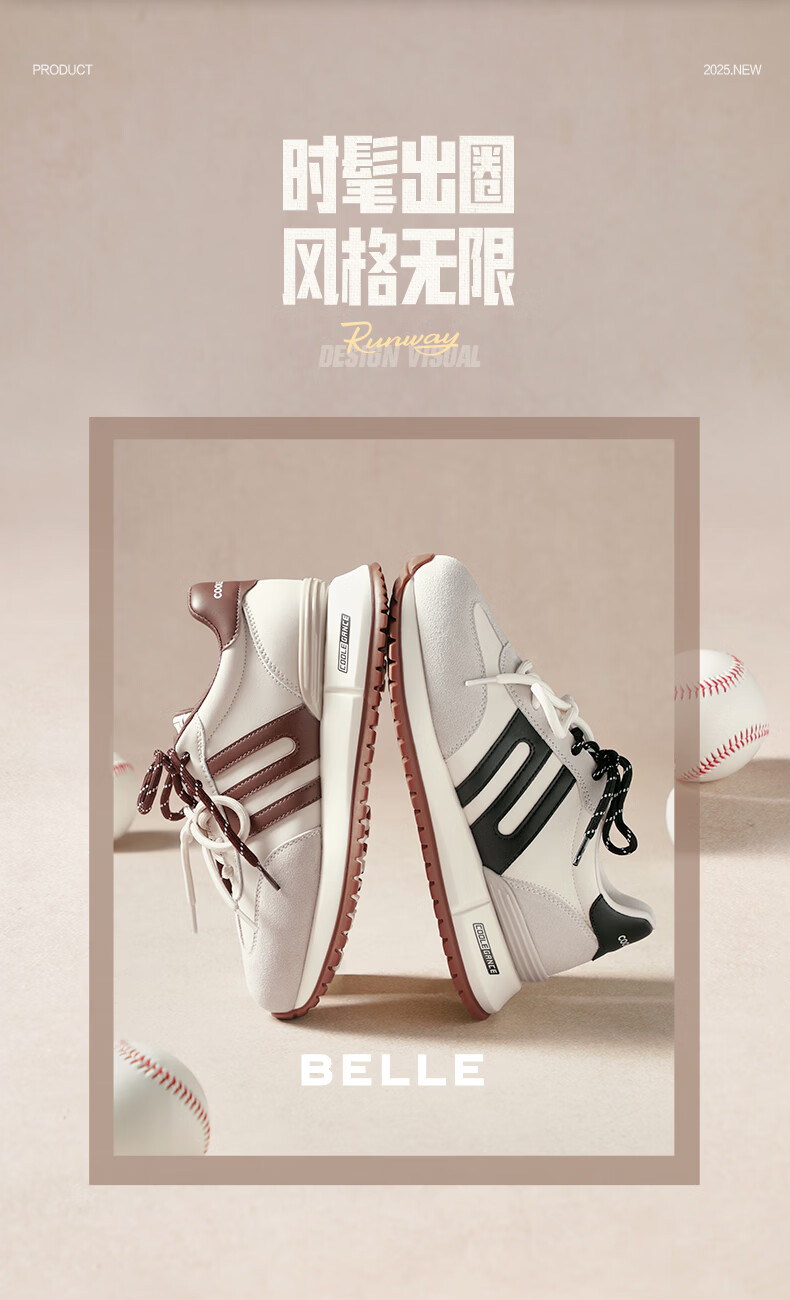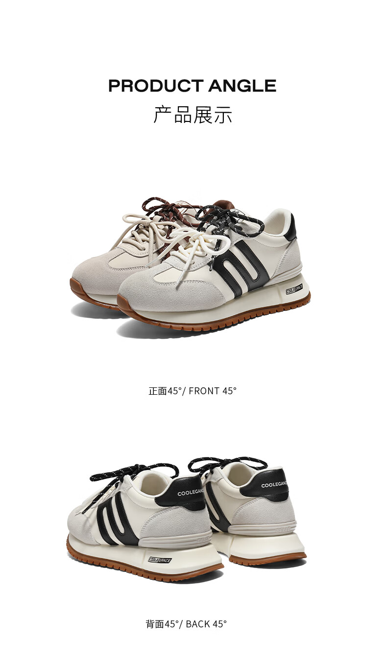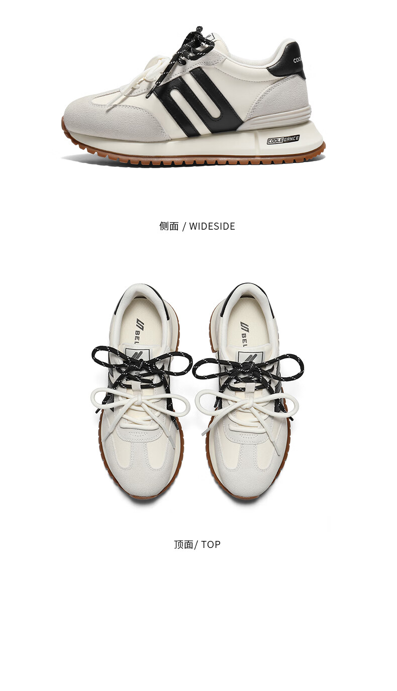 百丽(Belle)复古小金甘撞色跑道阿甘鞋女2026春新厚底增高运动休闲鞋F1N1DAM6 白色 39