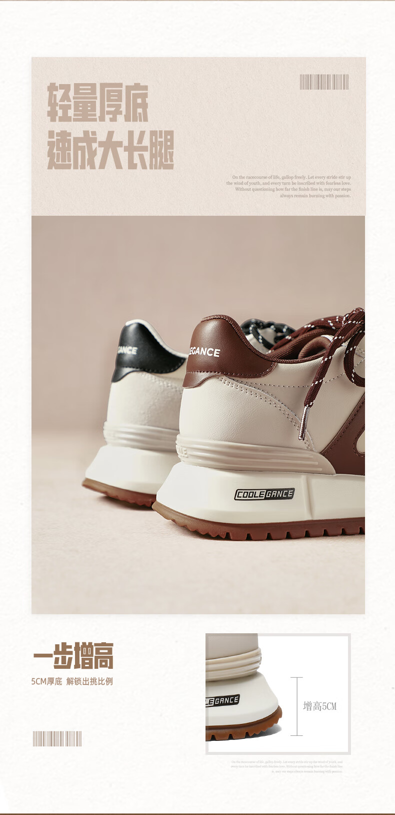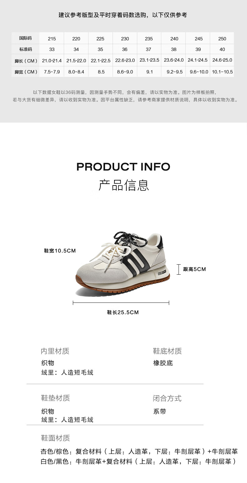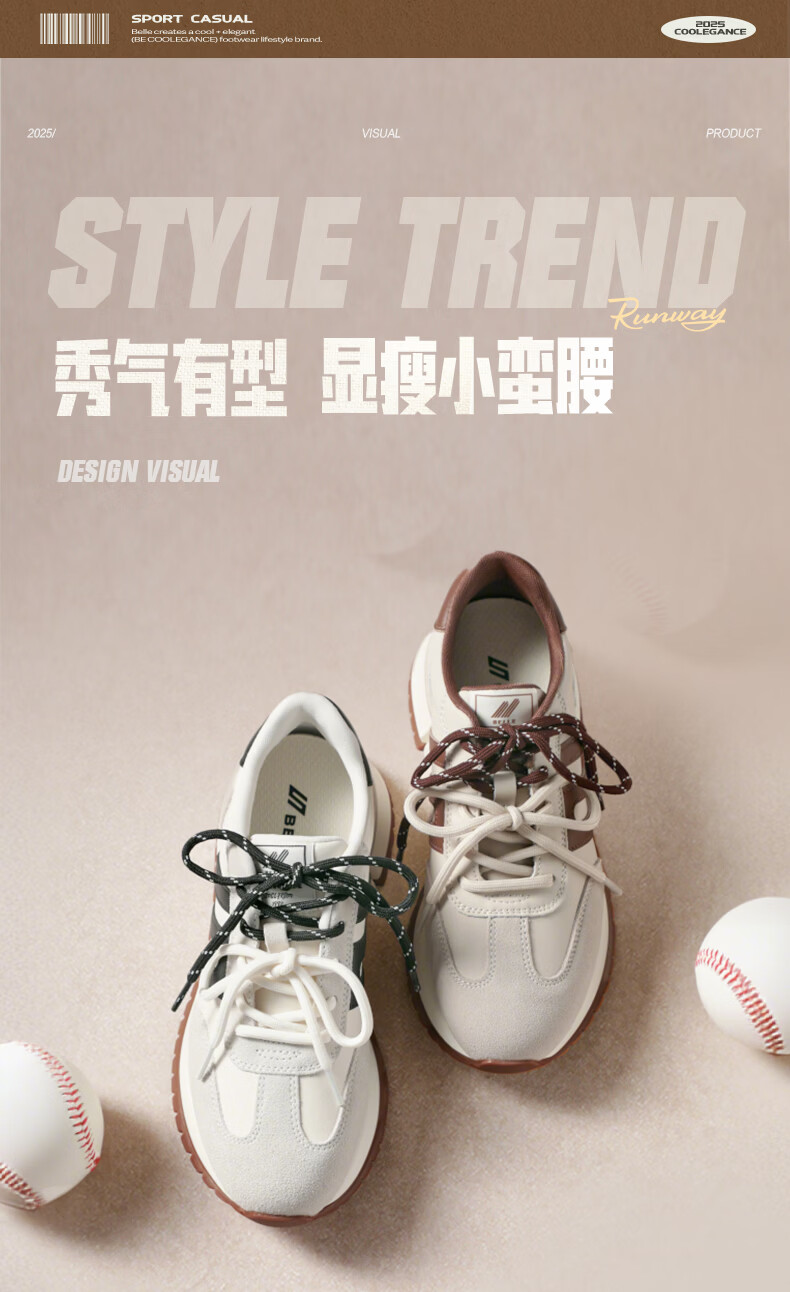 百丽(Belle)复古小金甘撞色跑道阿甘鞋女2026春新厚底增高运动休闲鞋F1N1DAM6 白色 39