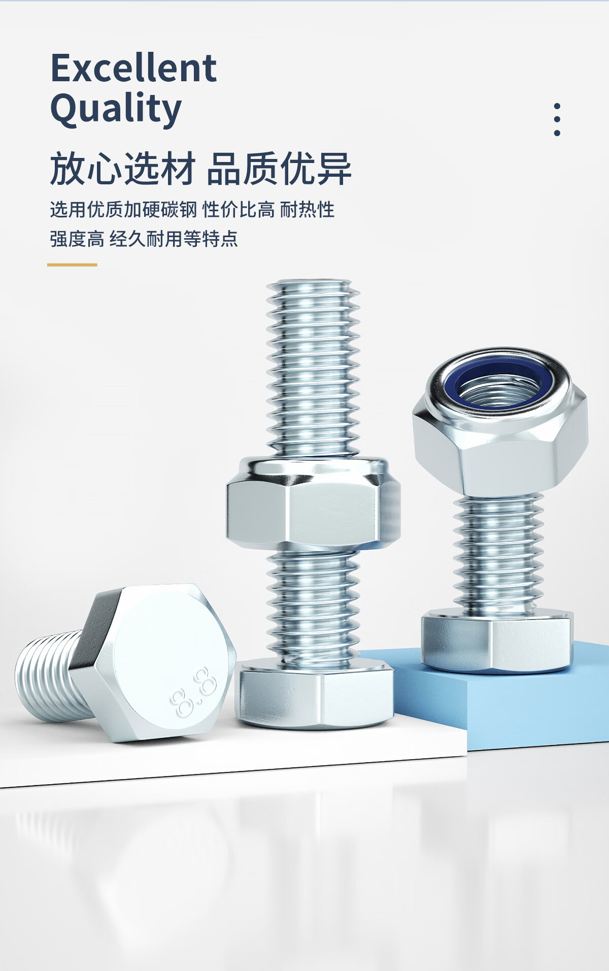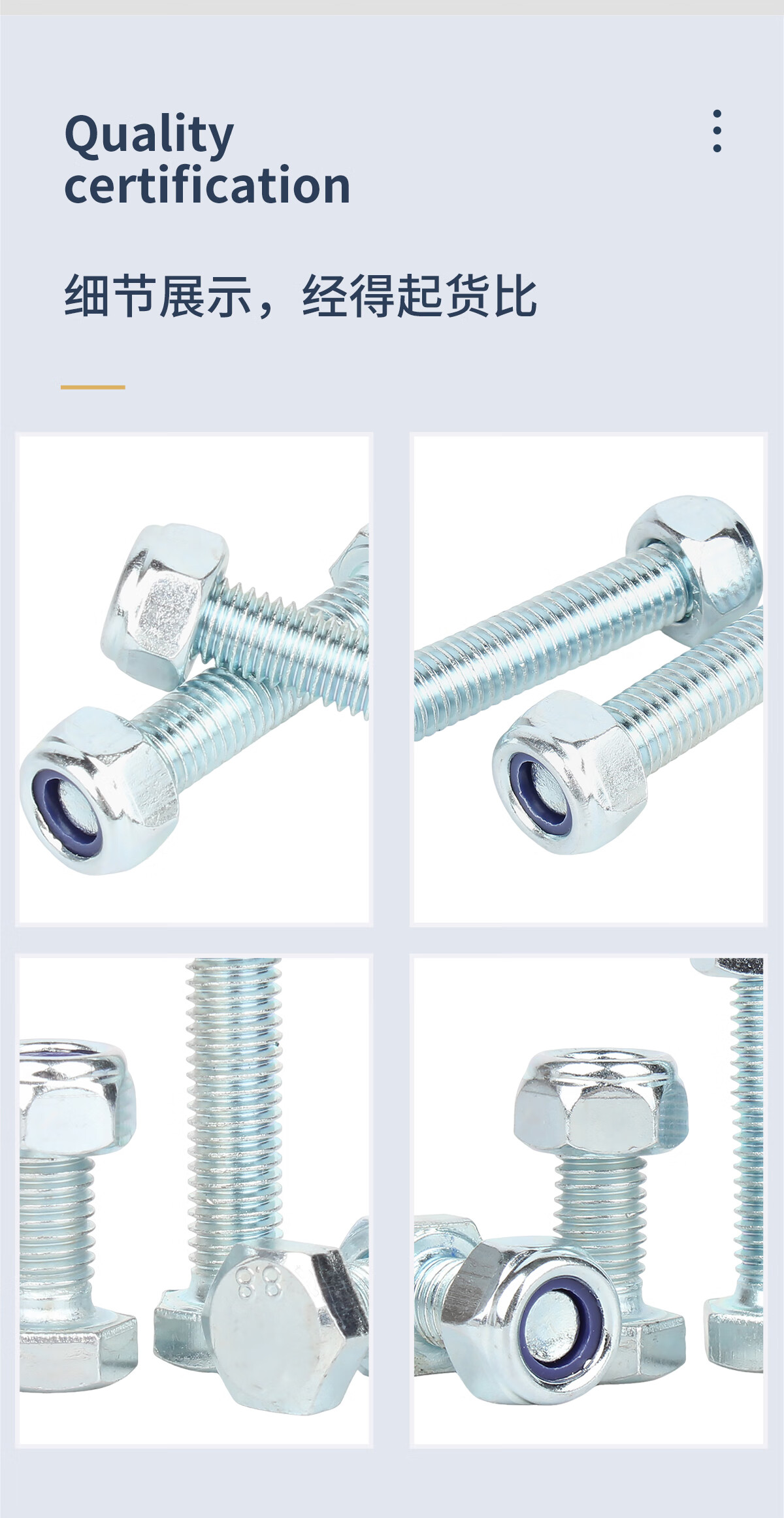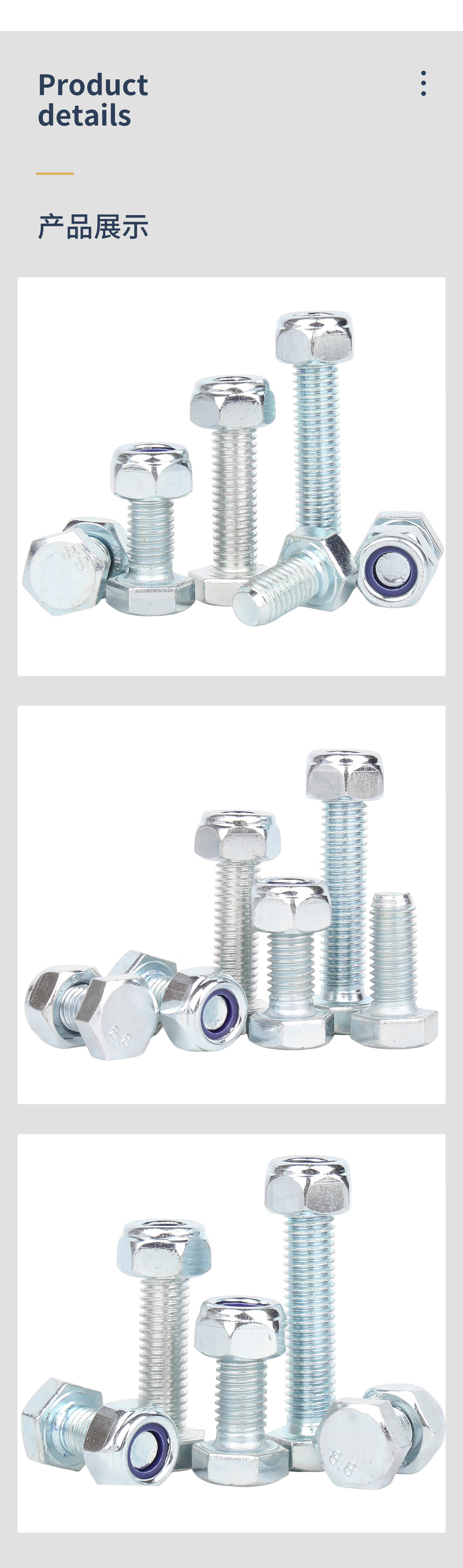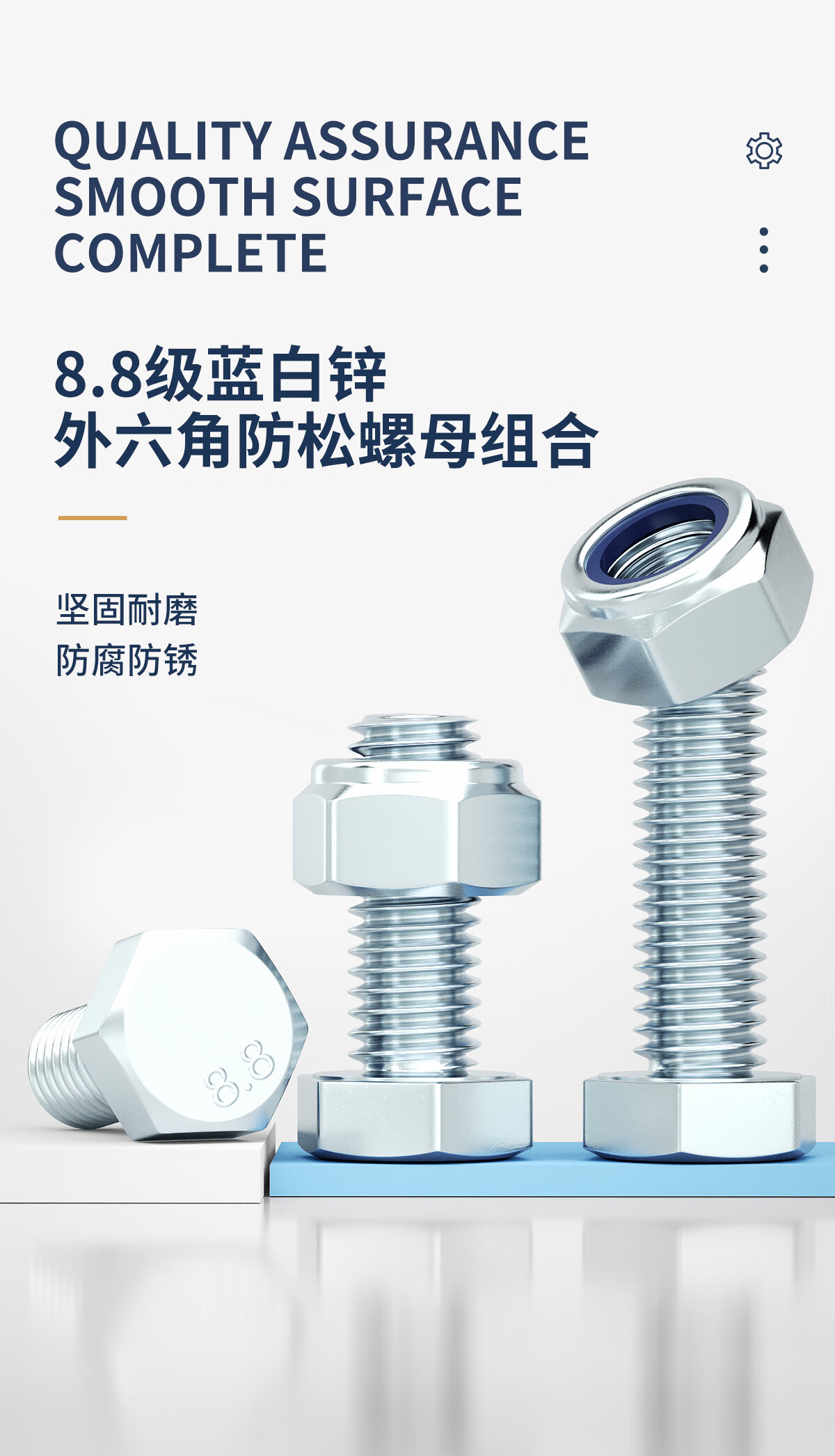 固万基(GUWANJI)高强度8.8级镀锌外六角螺丝螺母套装防松螺丝母组合长螺栓M4-M27 M4x6 全牙[50套]