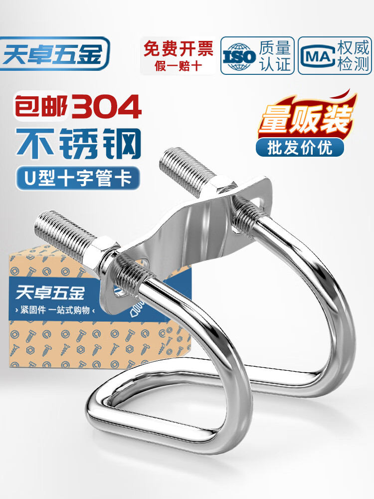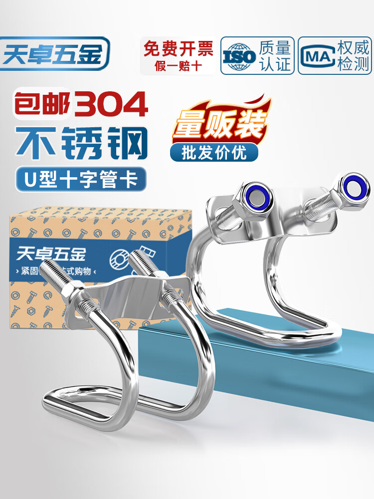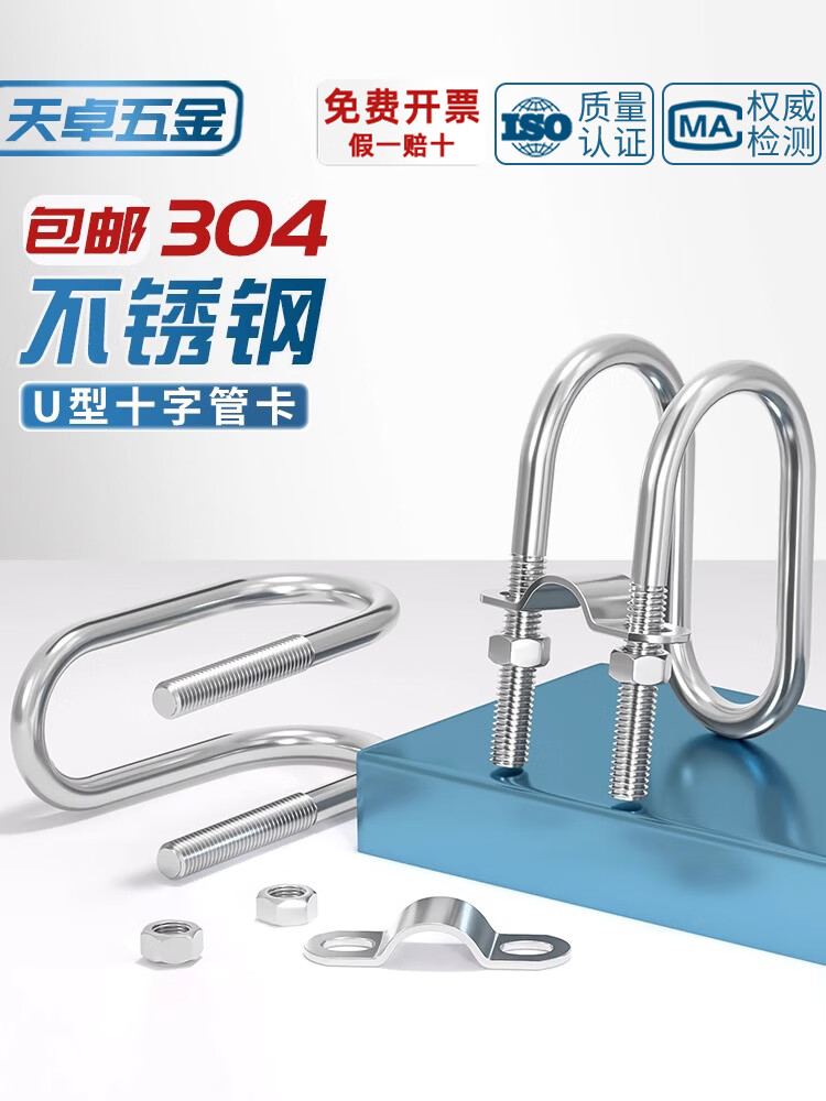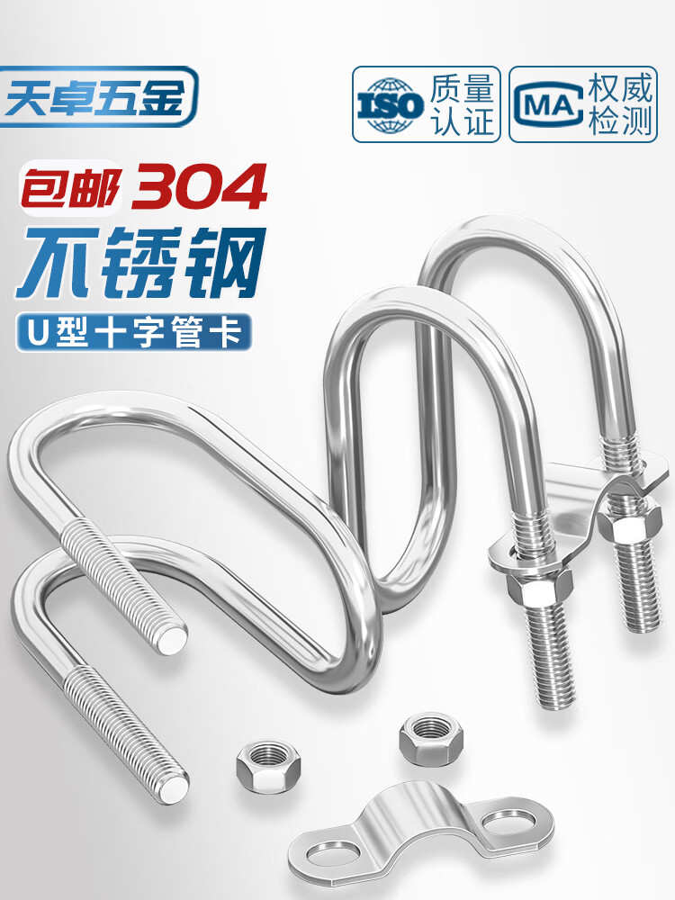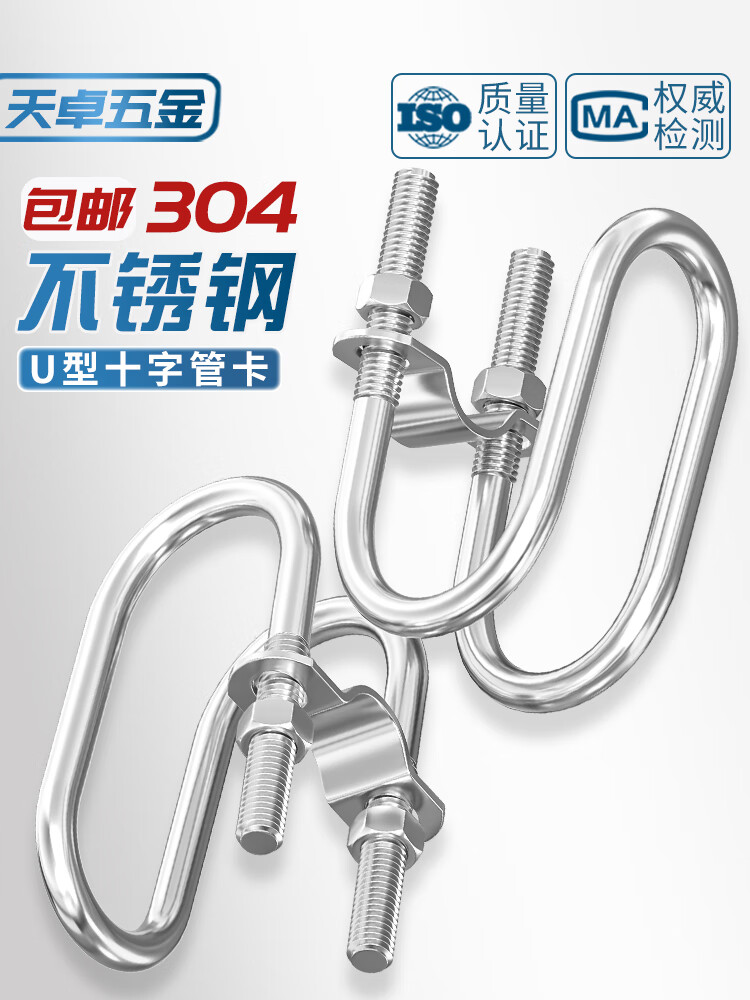 天卓五金304不锈钢双U型卡箍螺丝十字交叉u形螺栓猪场异型管卡扣养殖场用 M6*20*20/4分卡4分 配六角螺母(5个)