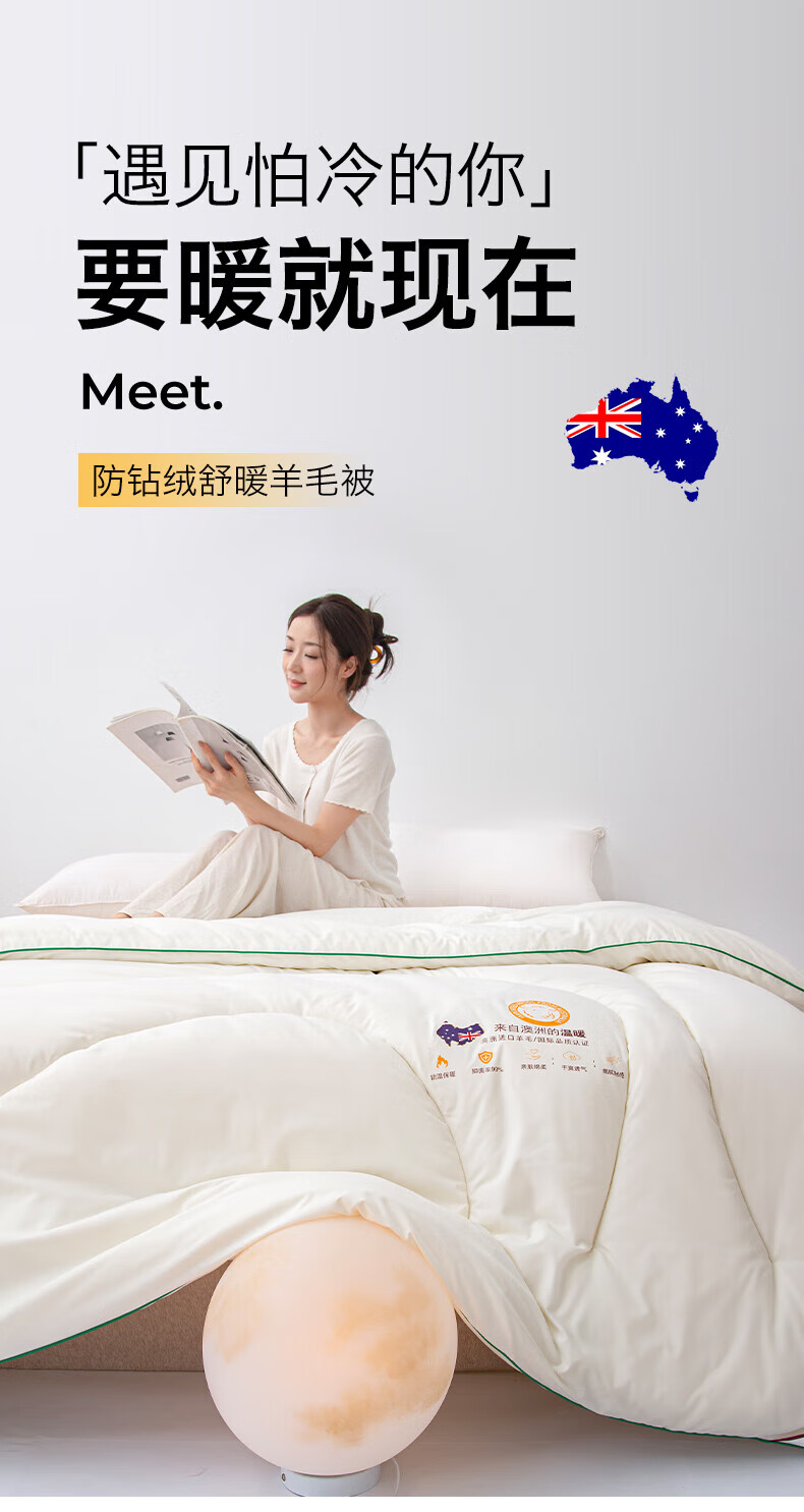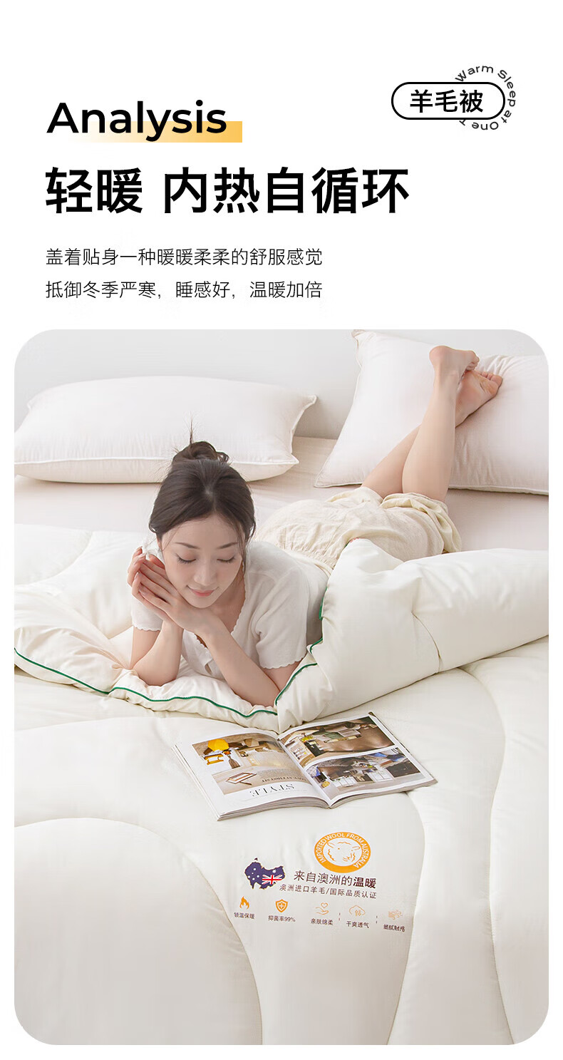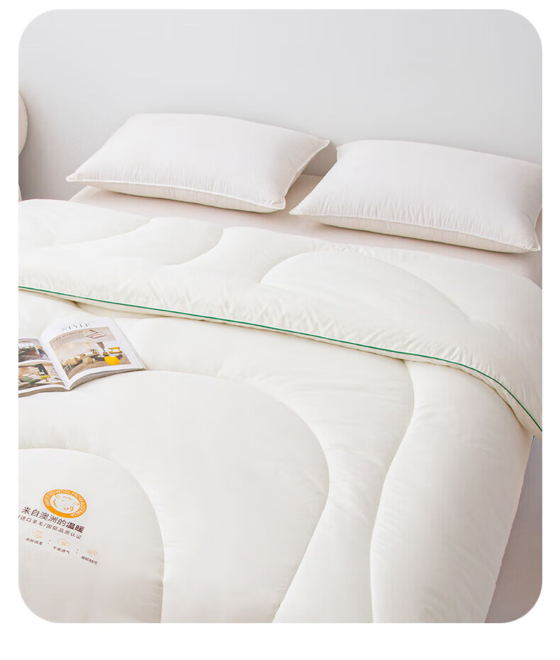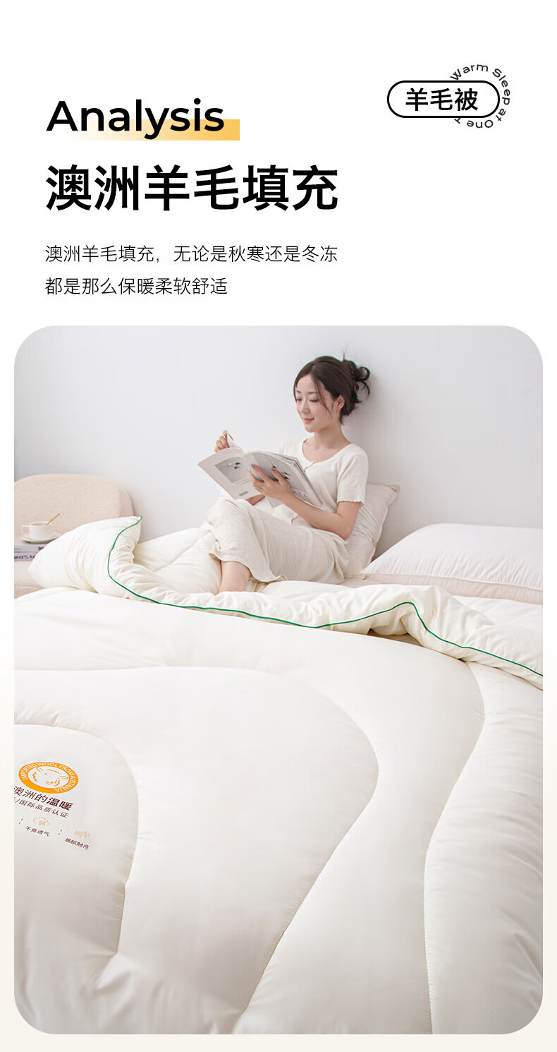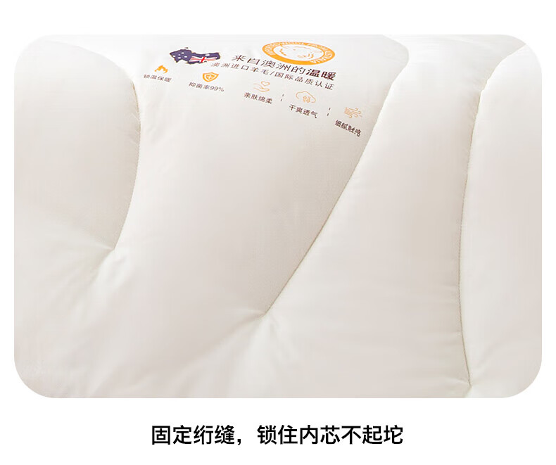 恒源祥澳洲进口羊毛被加厚保暖冬被6斤春秋被8斤棉被褥学生宿舍被子被芯 富贵白 180*220cm【7斤冬被】