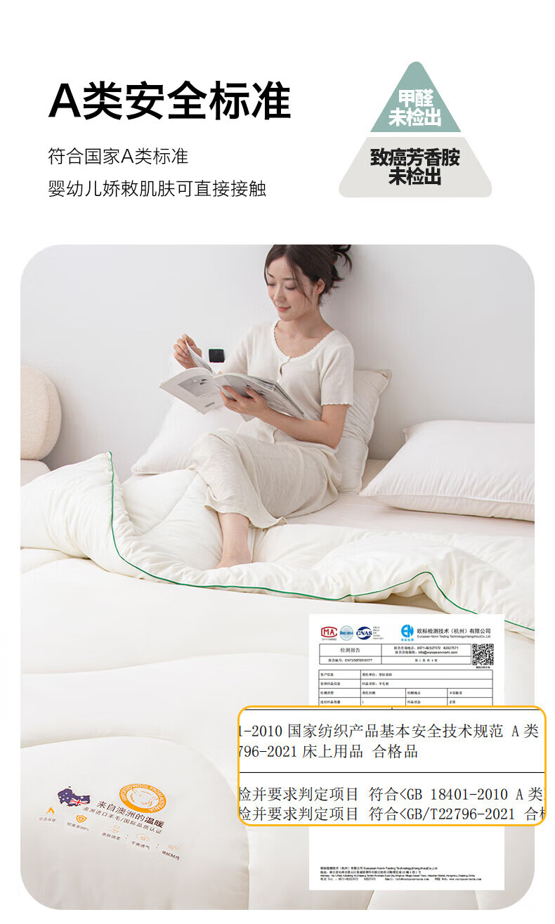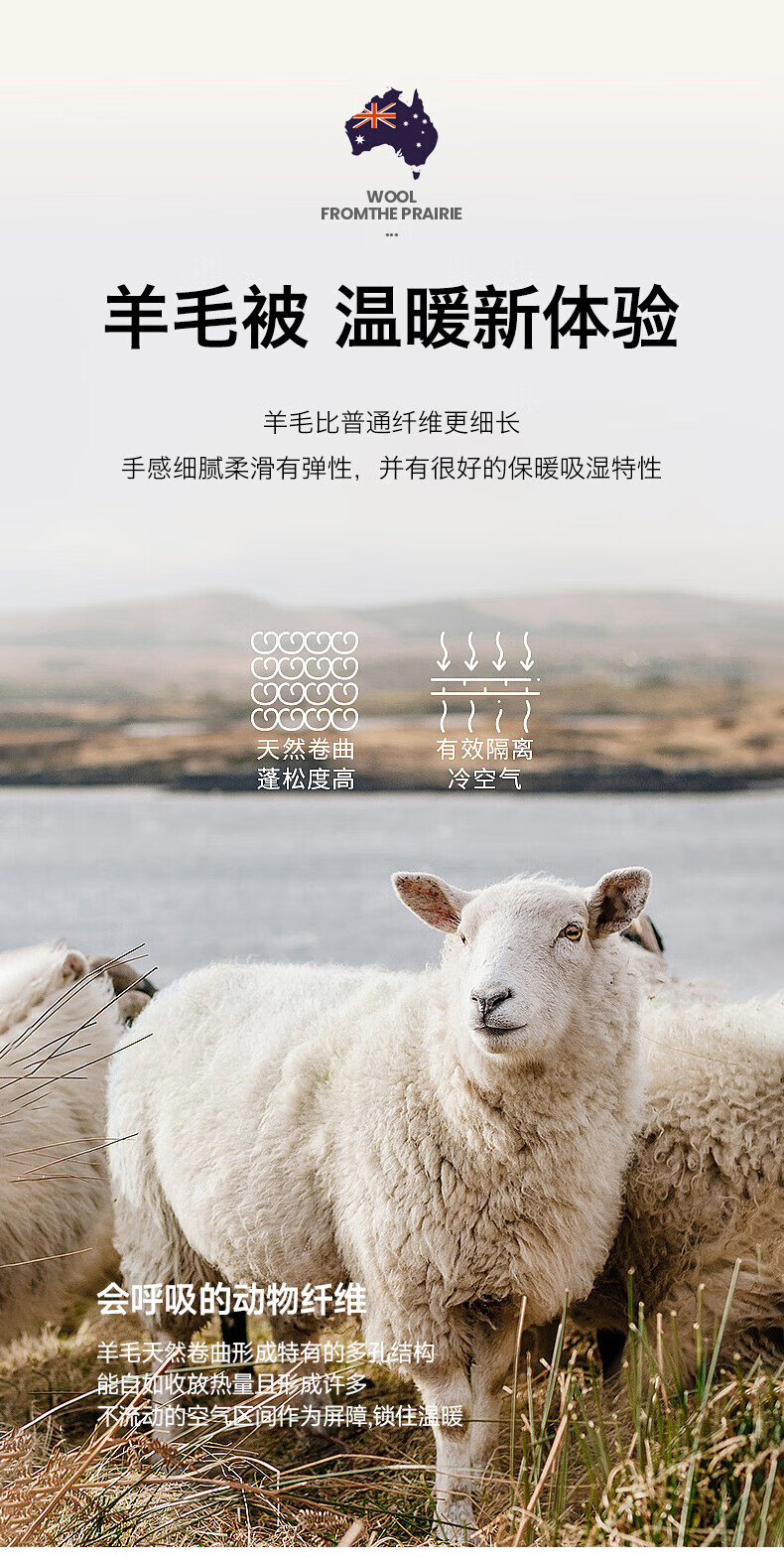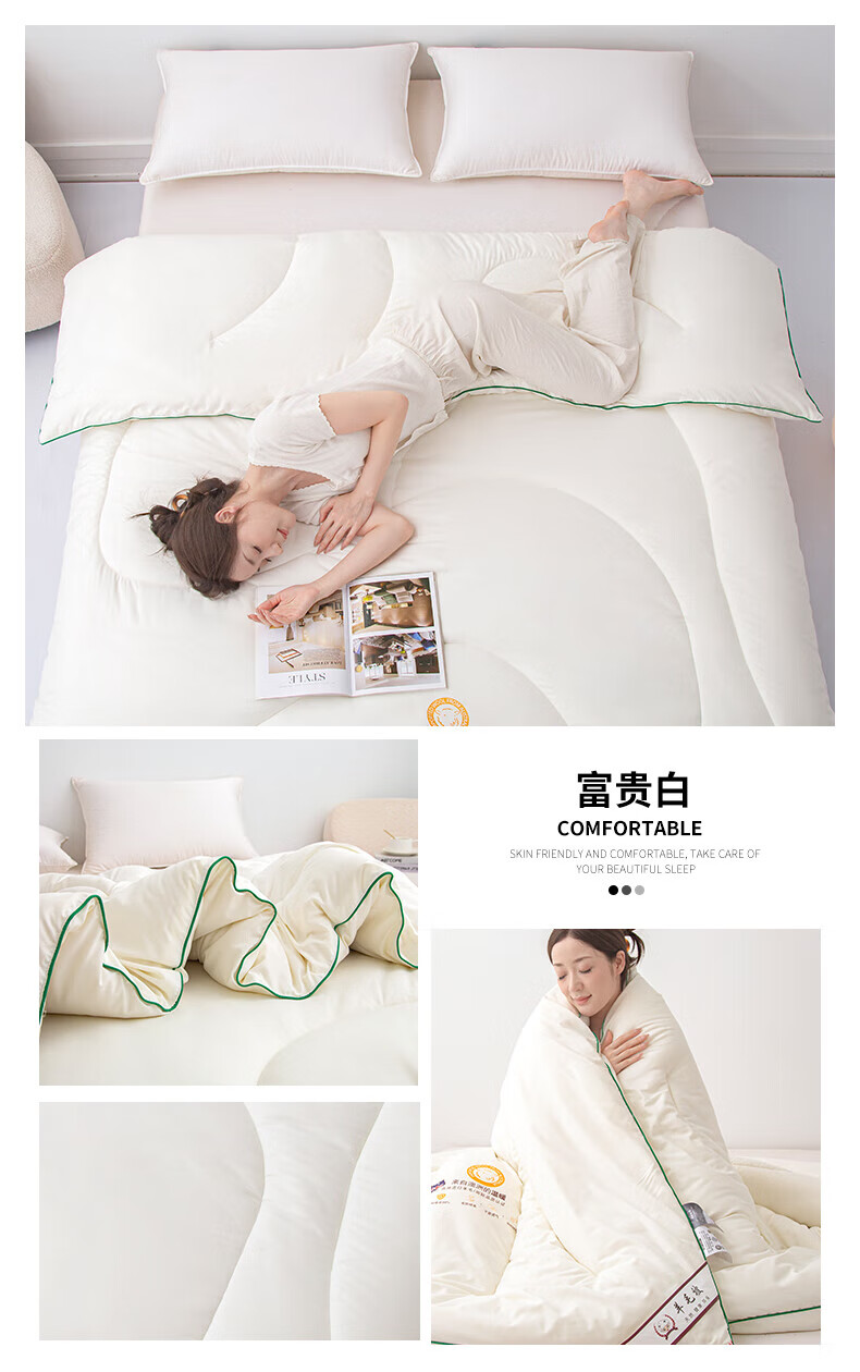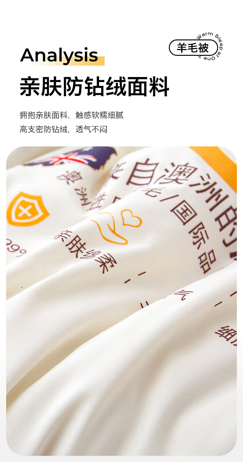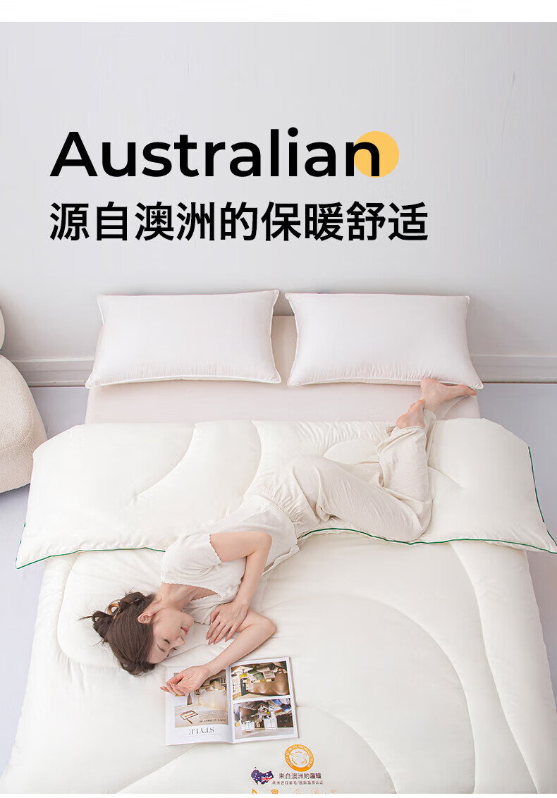恒源祥澳洲进口羊毛被加厚保暖冬被6斤春秋被8斤棉被褥学生宿舍被子被芯 富贵白 180*220cm【7斤冬被】