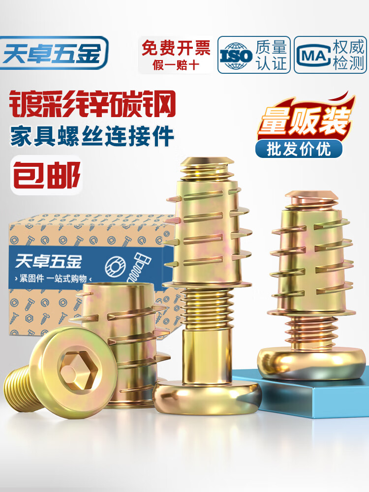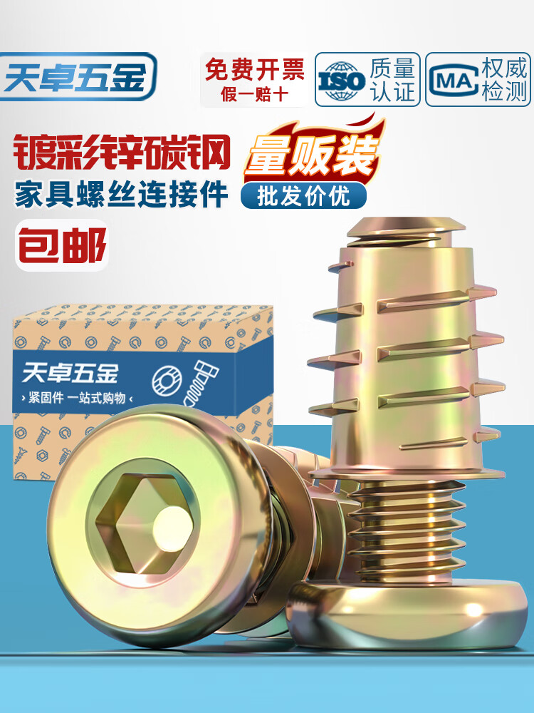 天卓五金家具螺丝紧固件内外牙螺母床连接件桌椅柜子木板预埋螺帽配件M6M8 内六角扳手【1.27mm-10mm】11支装