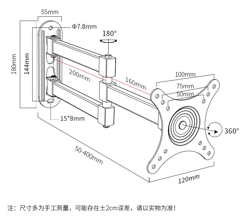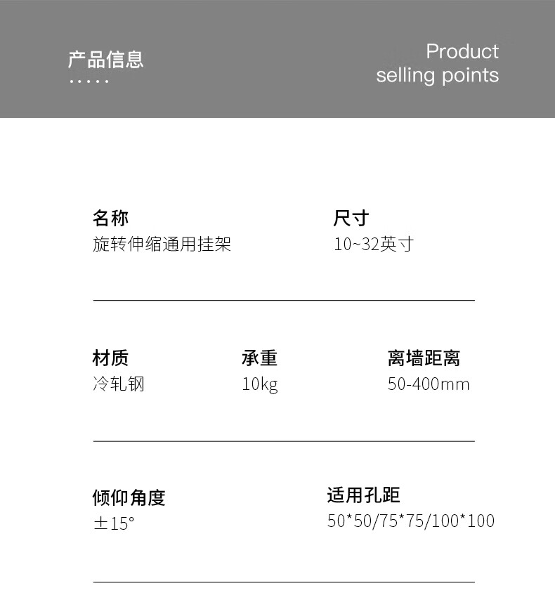 ProPre10-32英寸 通用电脑液晶显示器支架 壁挂旋转可伸缩架 电视机挂架 摇臂壁挂