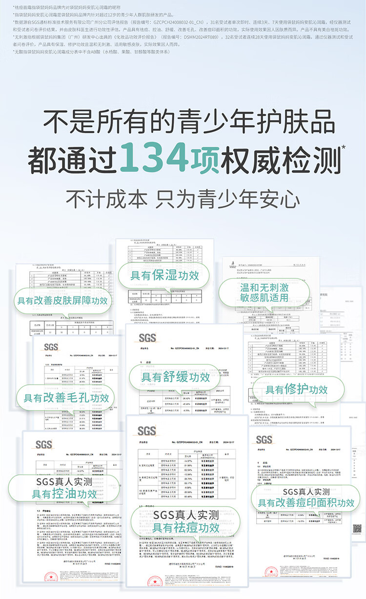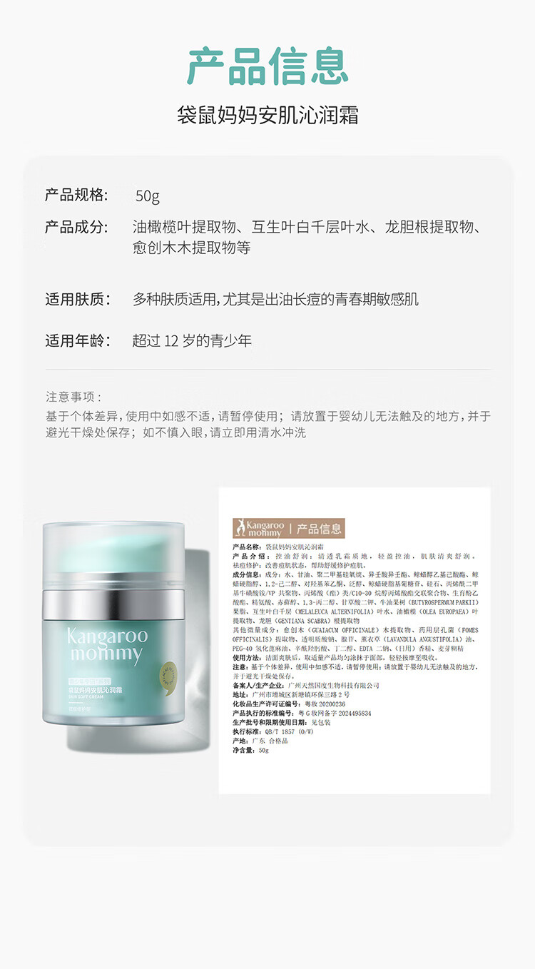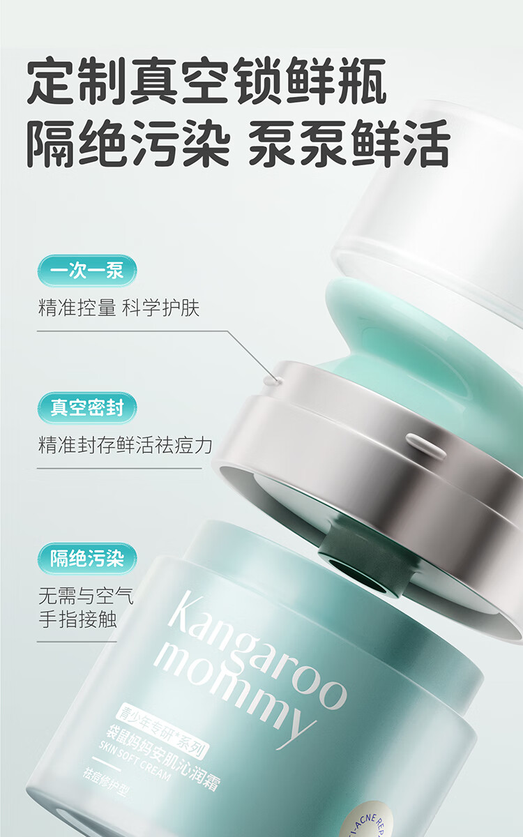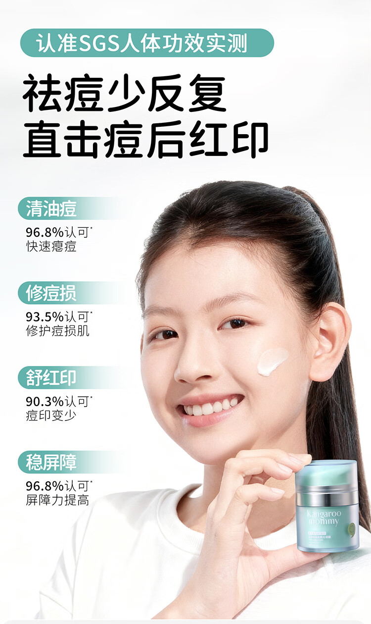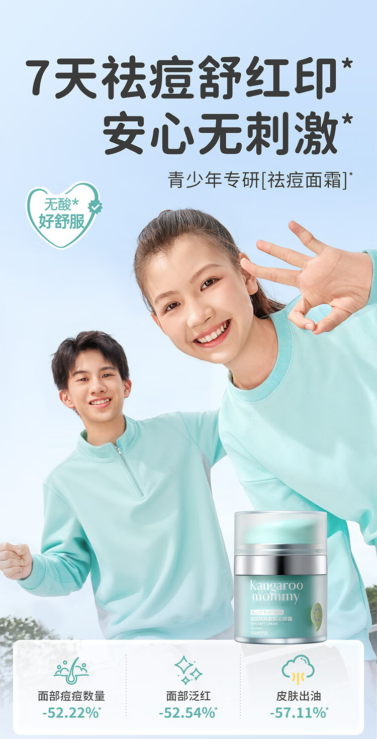 袋鼠妈妈青少年祛痘面霜控油祛痘青春期舒缓敏感肌保湿改善面部泛红面霜 【祛痘2件套】洁面乳+面霜