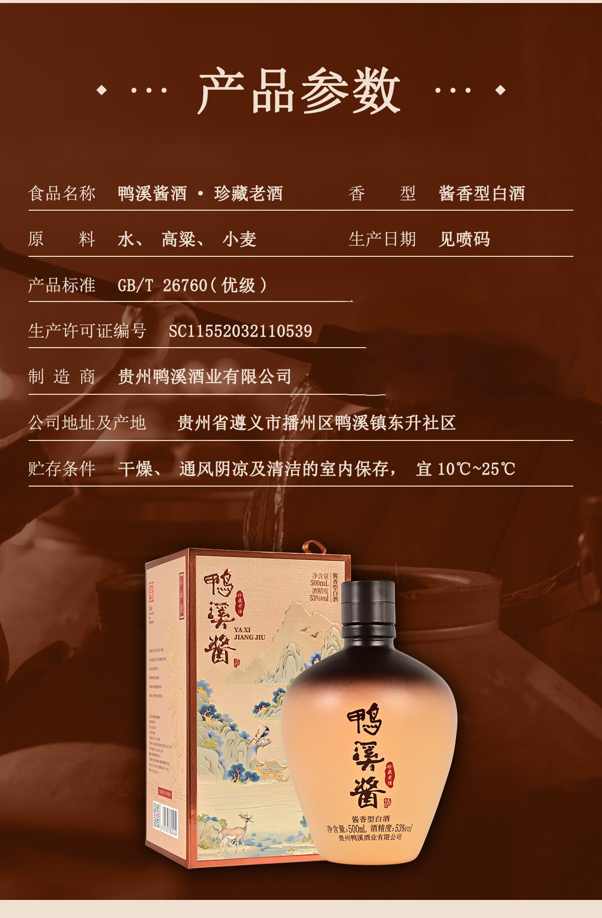 鸭溪酱 珍藏老酒 酱香型白酒 53度 500ml 单瓶装 热门商品