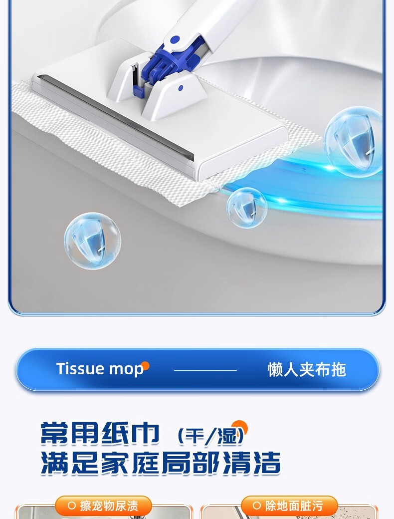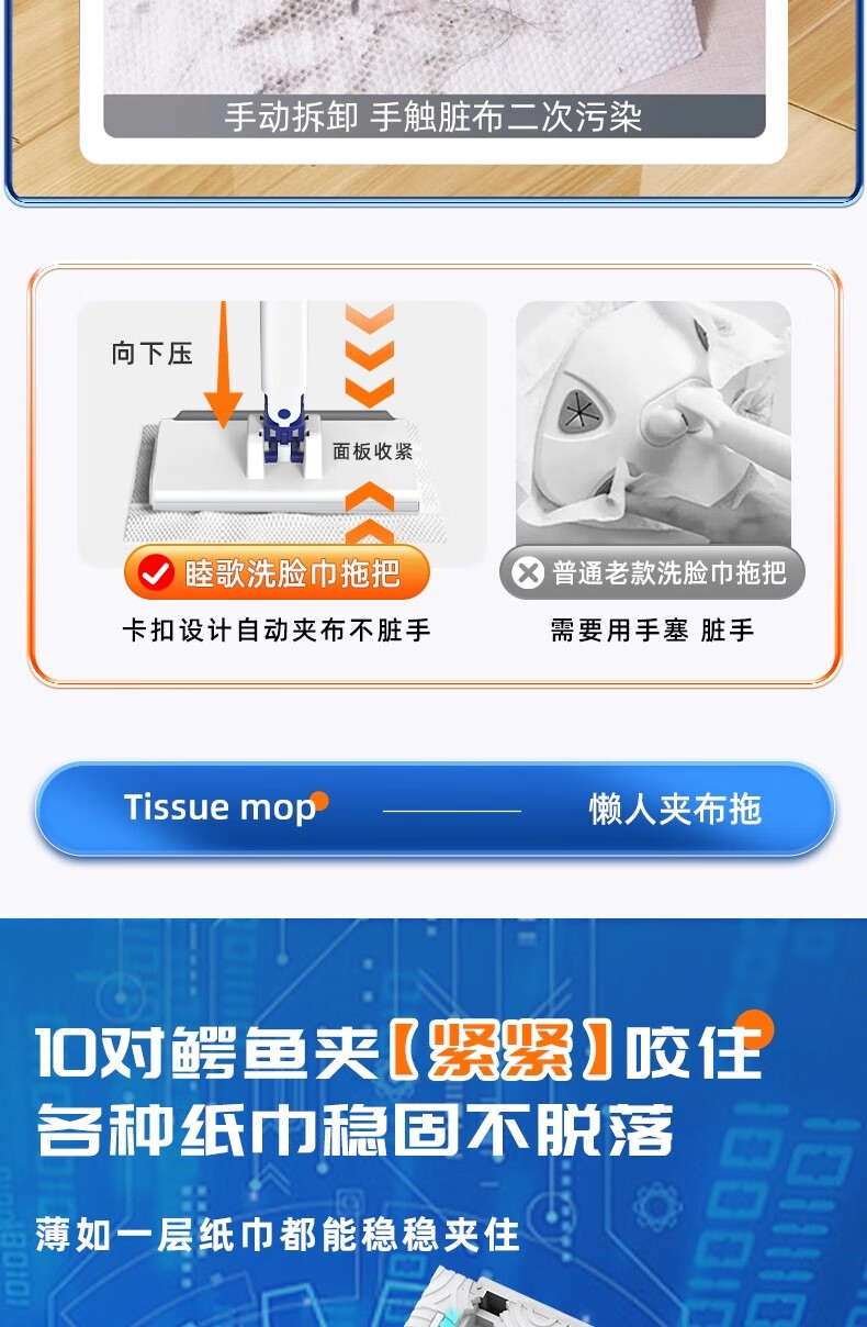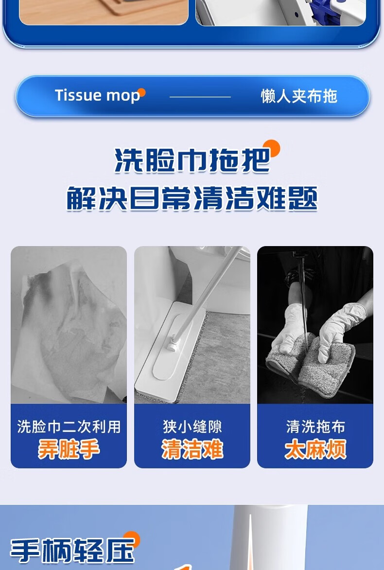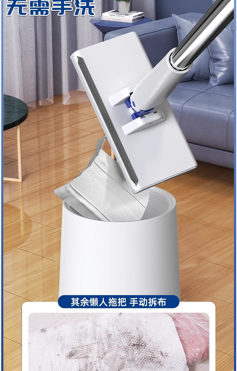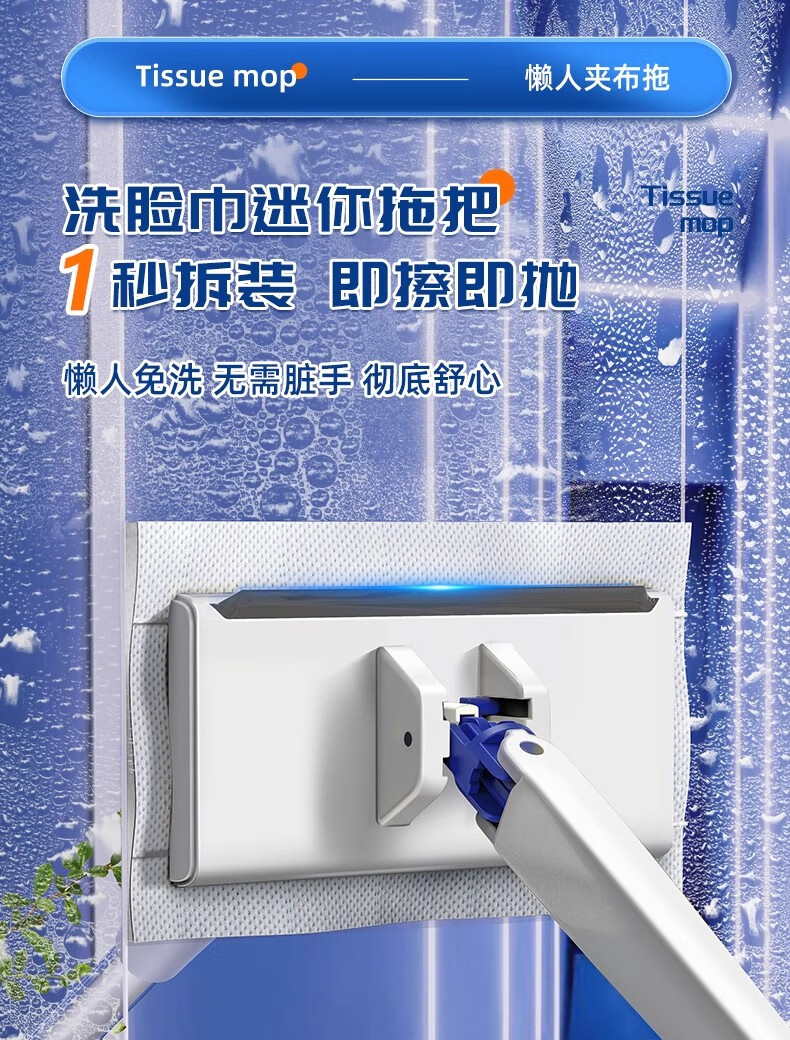 沐阁洗脸巾平板拖把布家用免手洗懒人拖地神器静电除尘纸夹布一键拆卸 迷你小拖把+拖把夹+1块拖布丨 自动拆装 升级刮刀