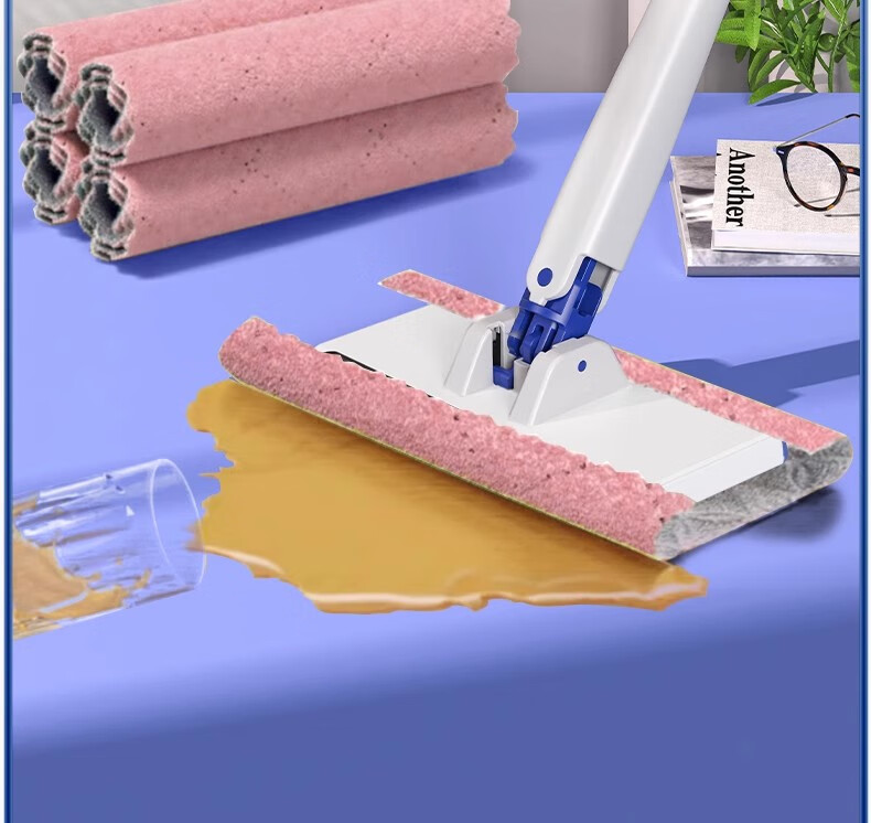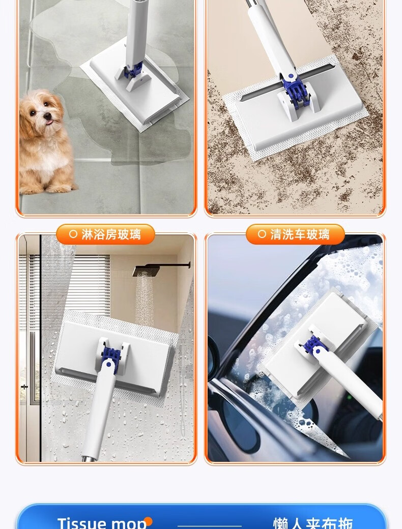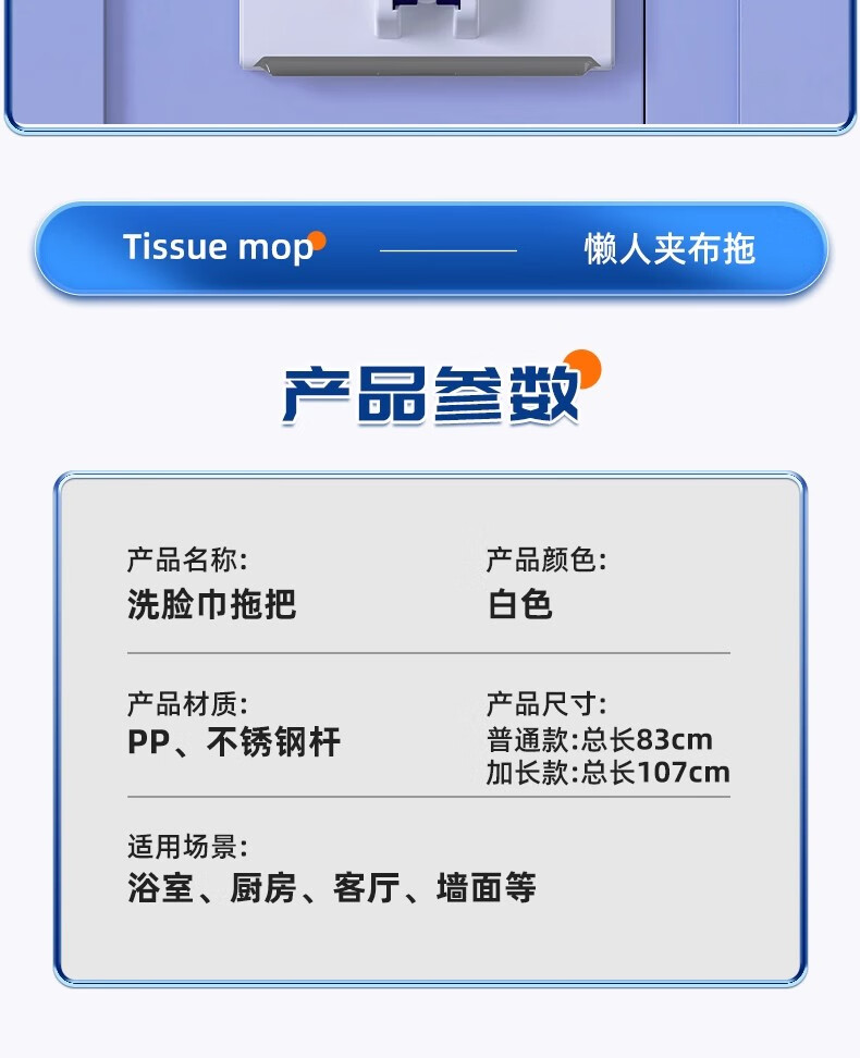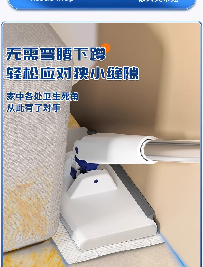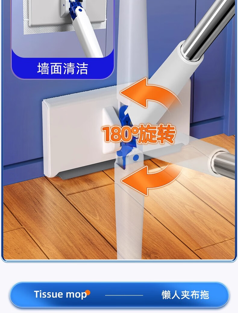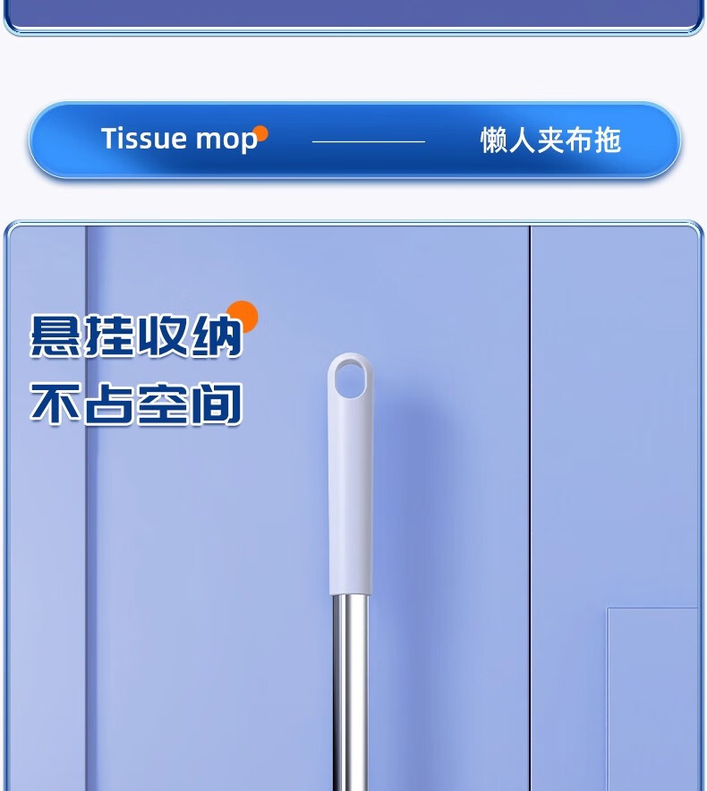 沐阁洗脸巾平板拖把布家用免手洗懒人拖地神器静电除尘纸夹布一键拆卸 迷你小拖把+拖把夹+1块拖布丨 自动拆装 升级刮刀
