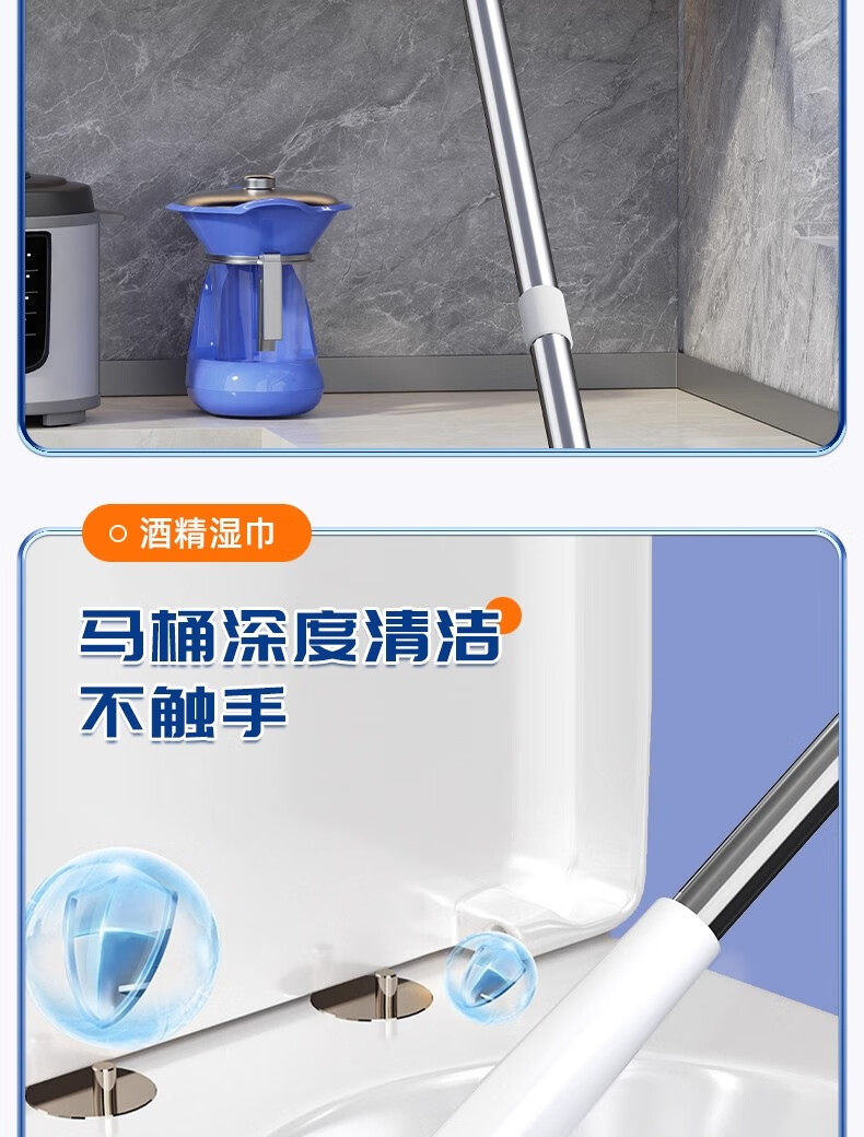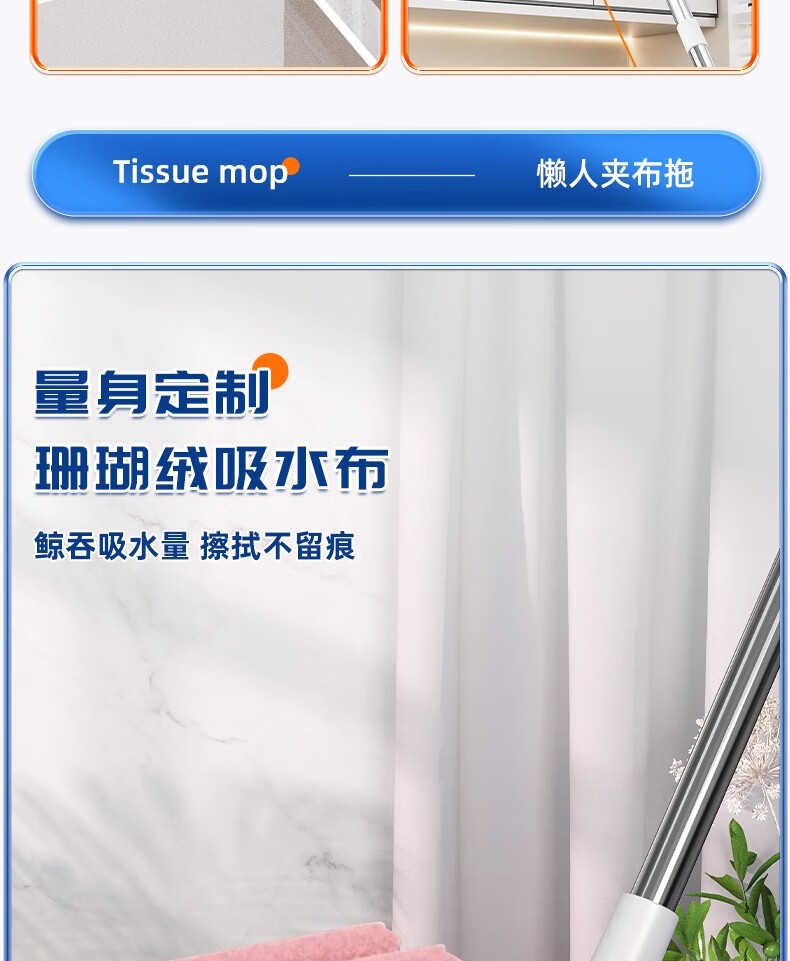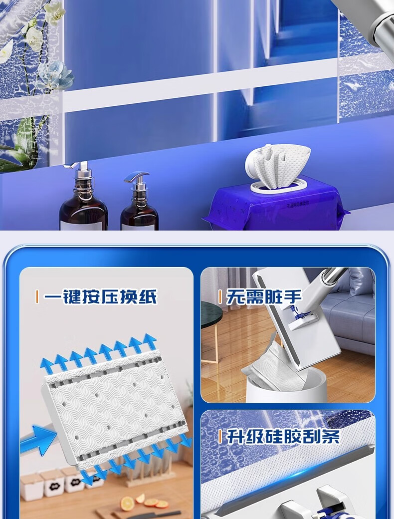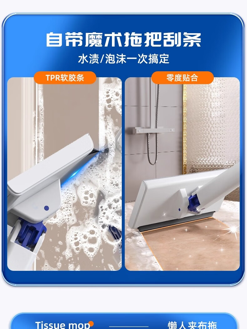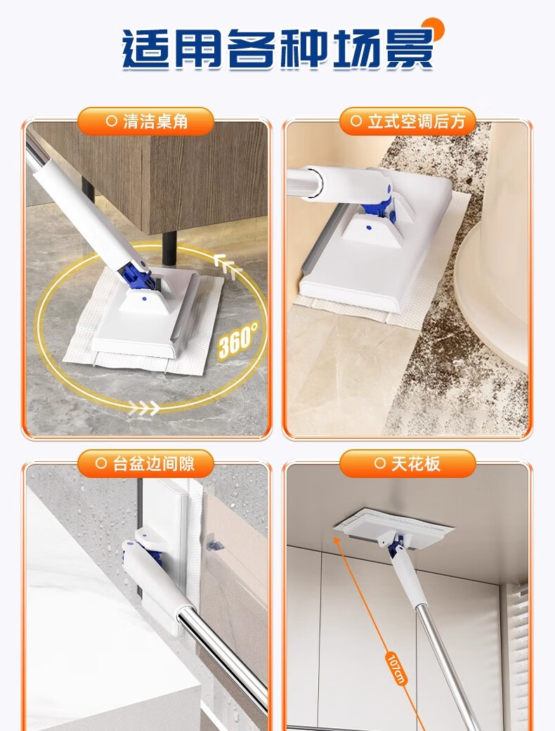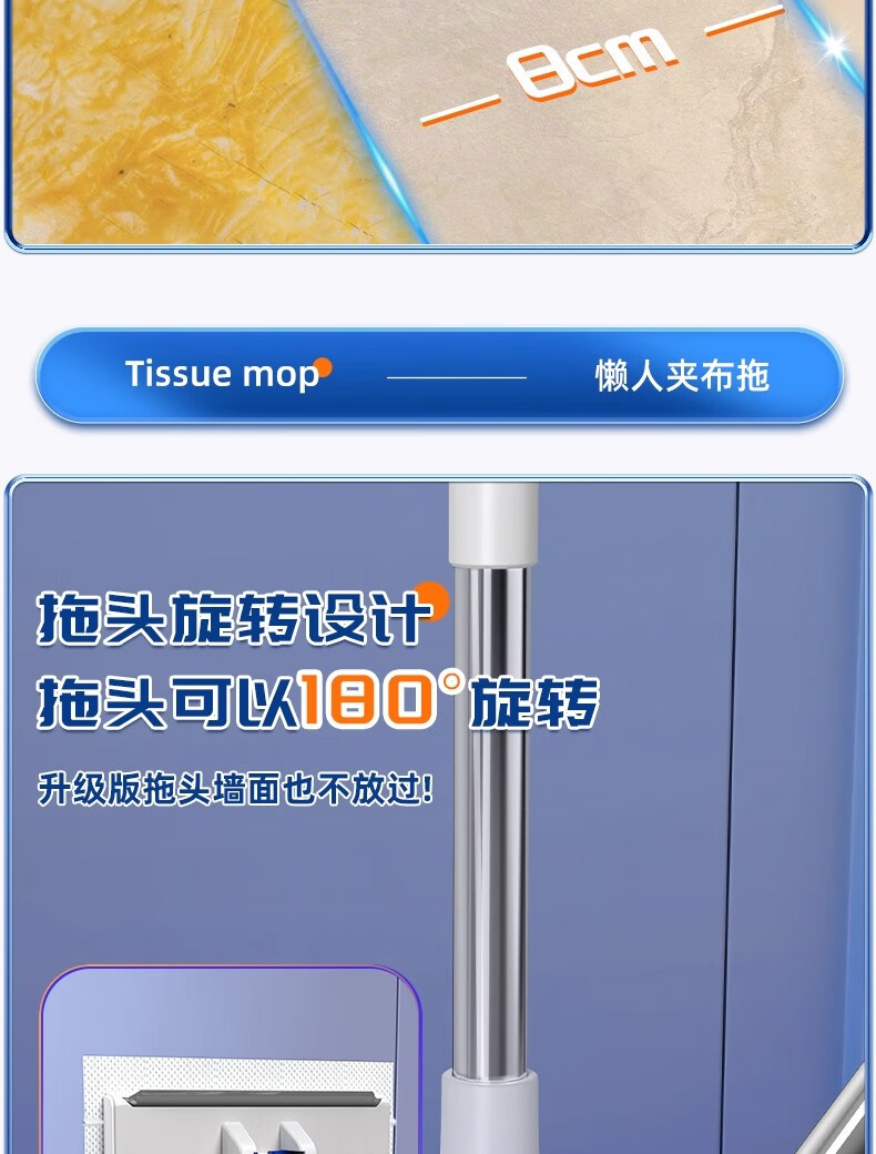 沐阁洗脸巾平板拖把布家用免手洗懒人拖地神器静电除尘纸夹布一键拆卸 迷你小拖把+拖把夹+1块拖布丨 自动拆装 升级刮刀