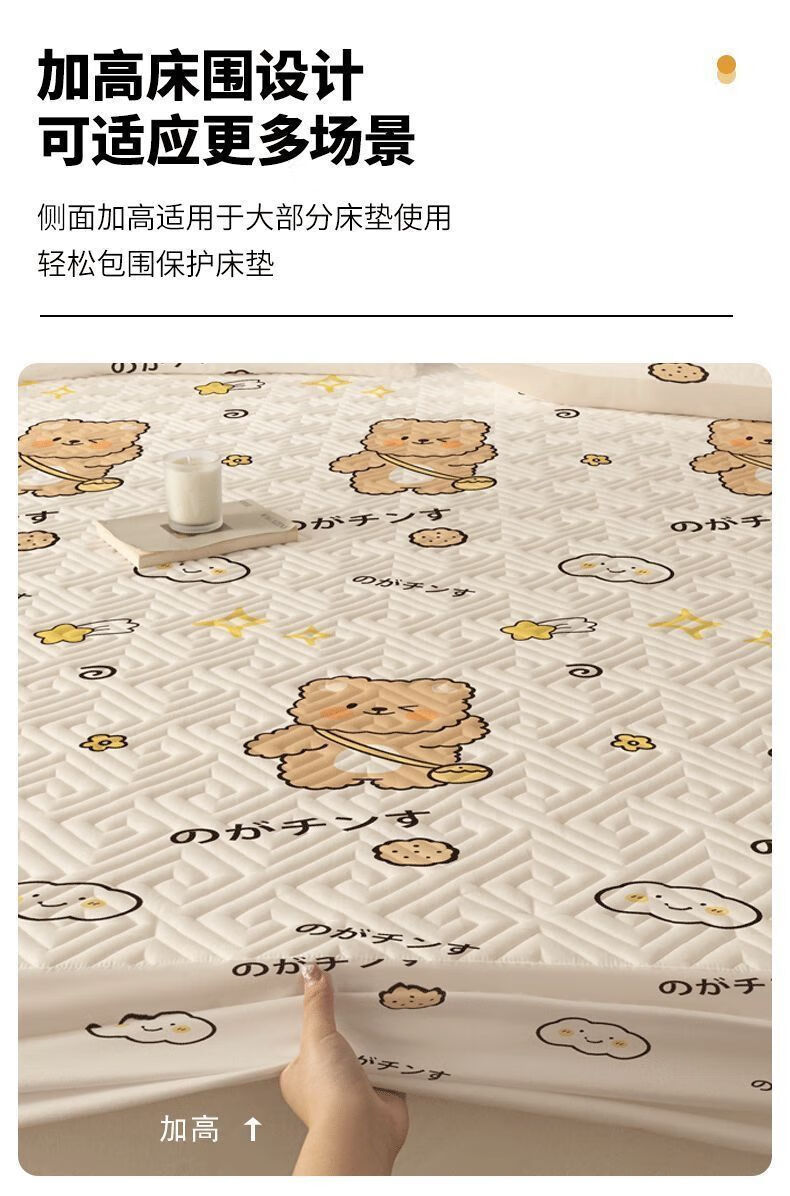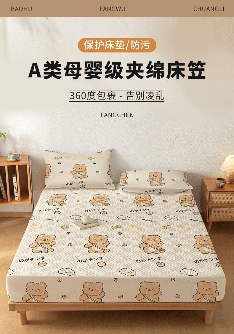 高睿A类抗菌夹棉床笠罩床罩单件2025新款席梦思床垫保护罩全包防尘套 云朵小熊【A类母婴级夹棉】 180*200cm单床笠