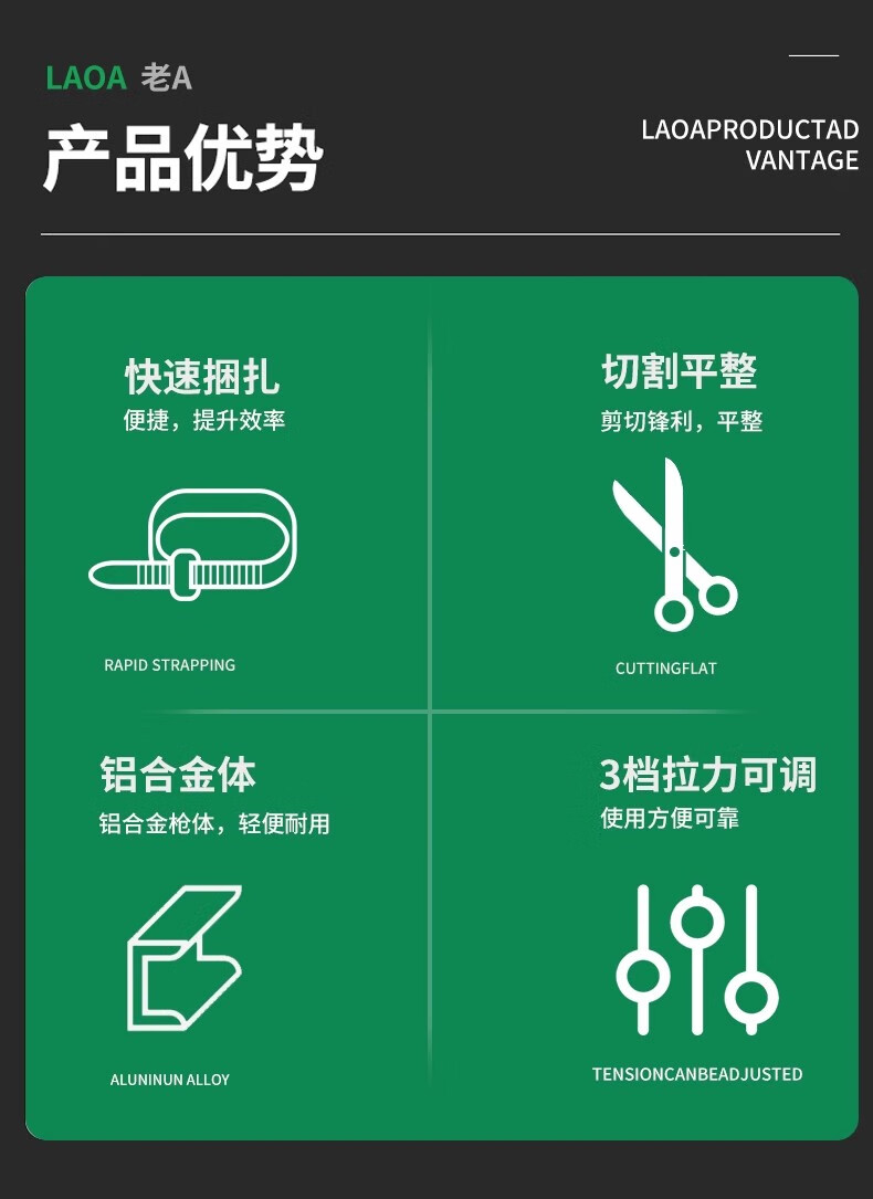 LAOALAOA工具扎带枪2.2~4.8MM自动拉紧工具枪扎带钳尼龙扎带收束枪 扎带枪+水口钳