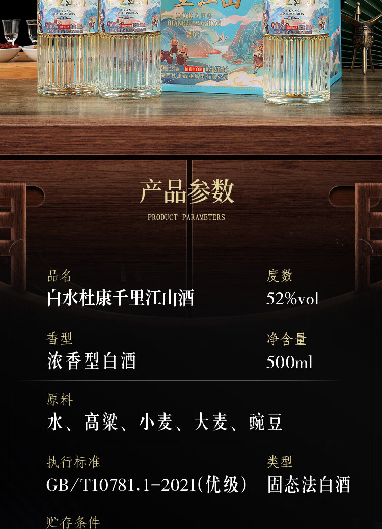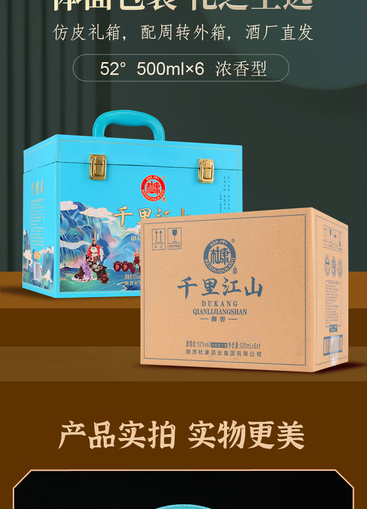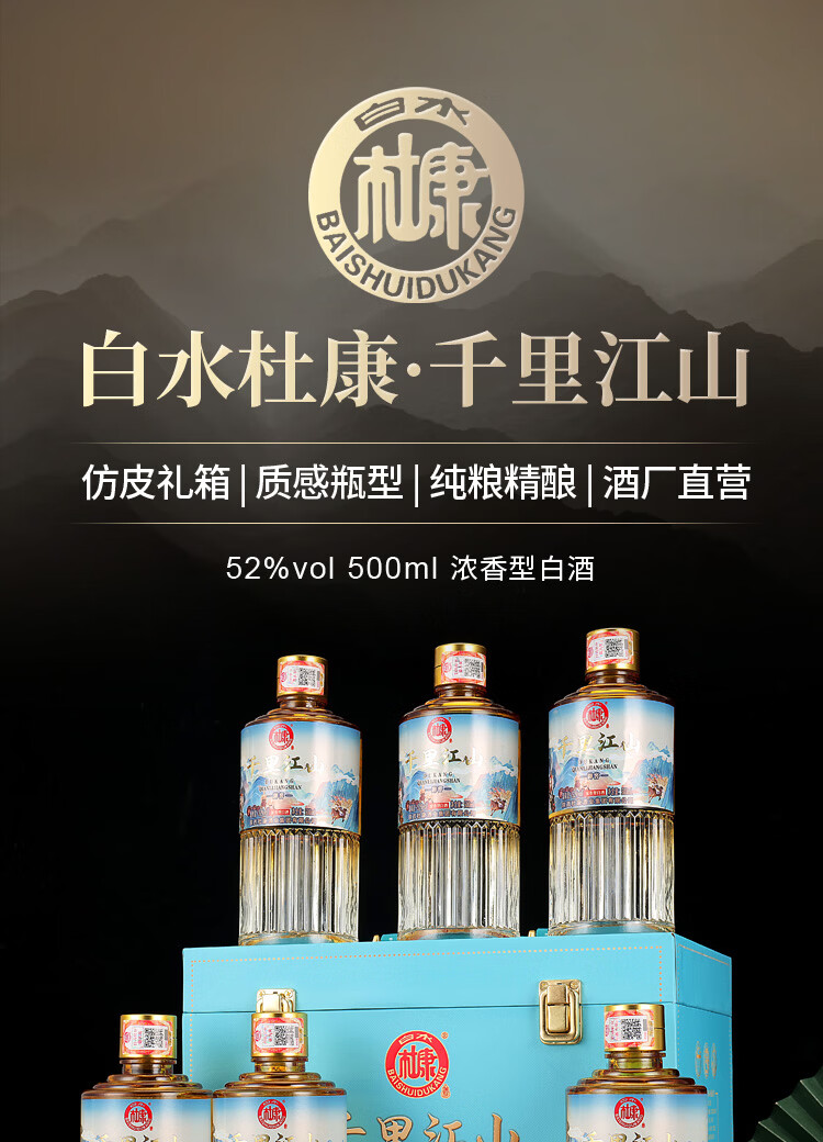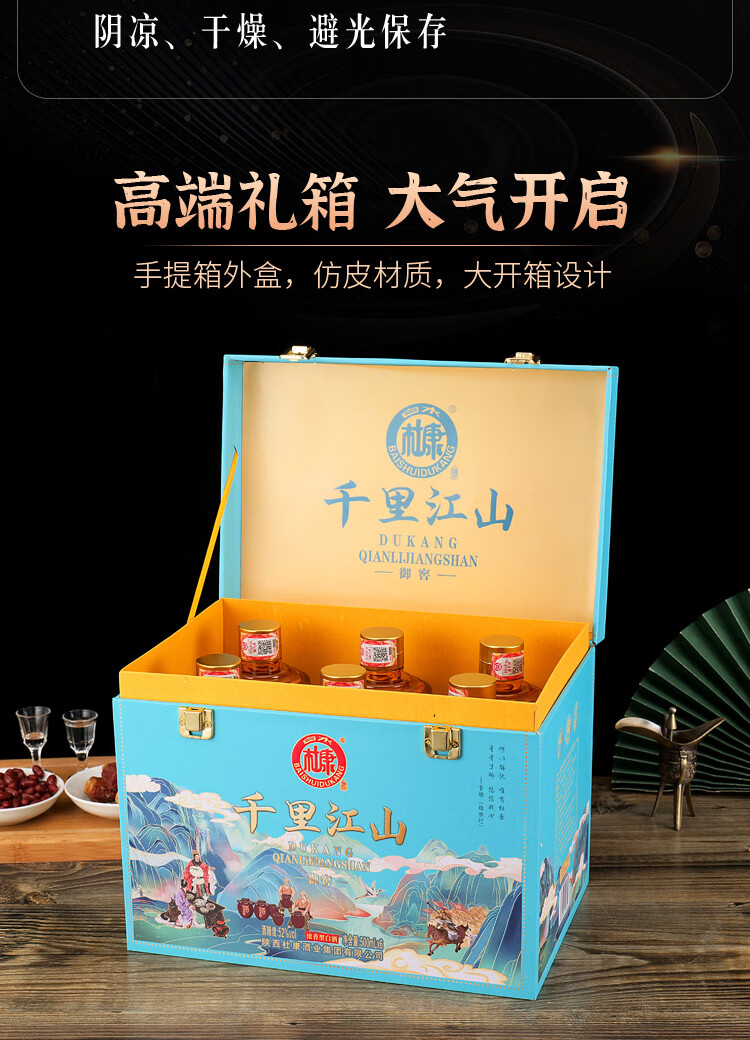 白水杜康千里江山浓香型纯粮固态法白酒礼盒装礼赠佳品 52度 500mL 6瓶 礼盒装赠礼袋