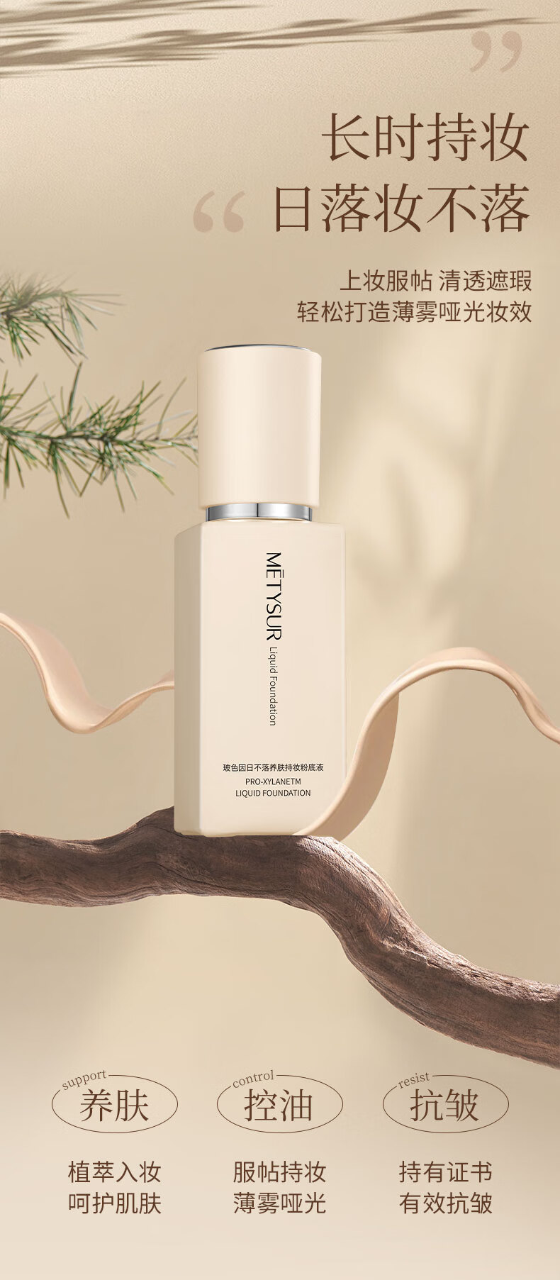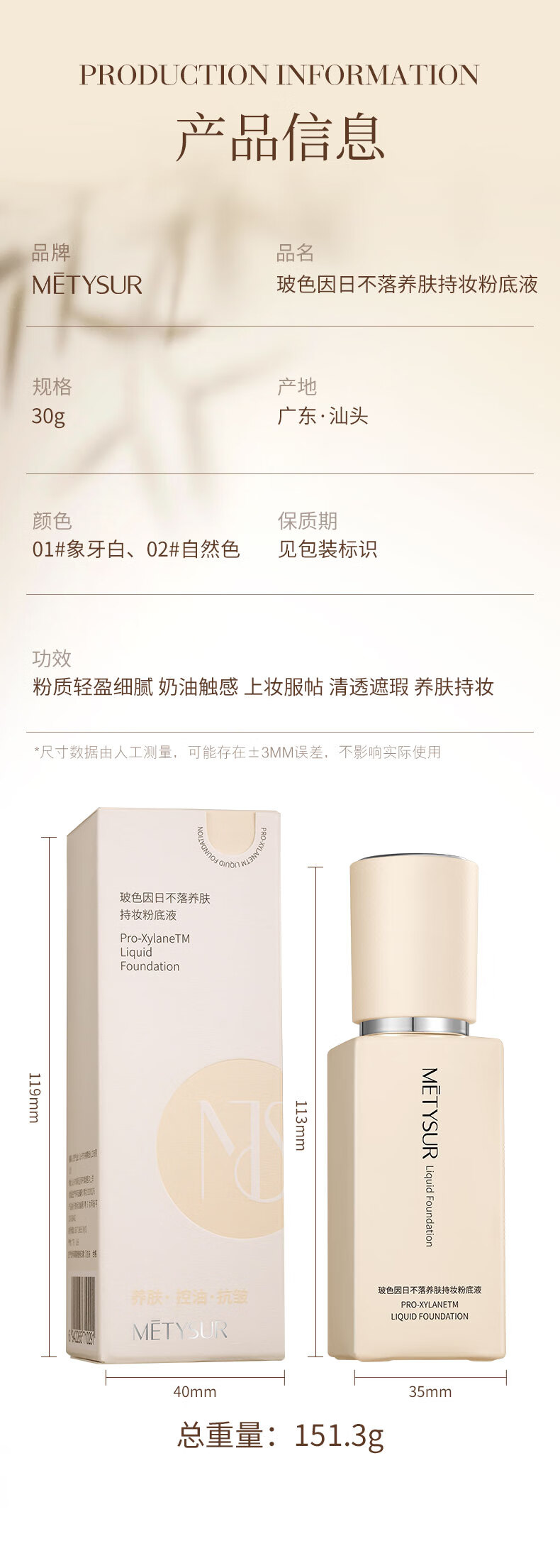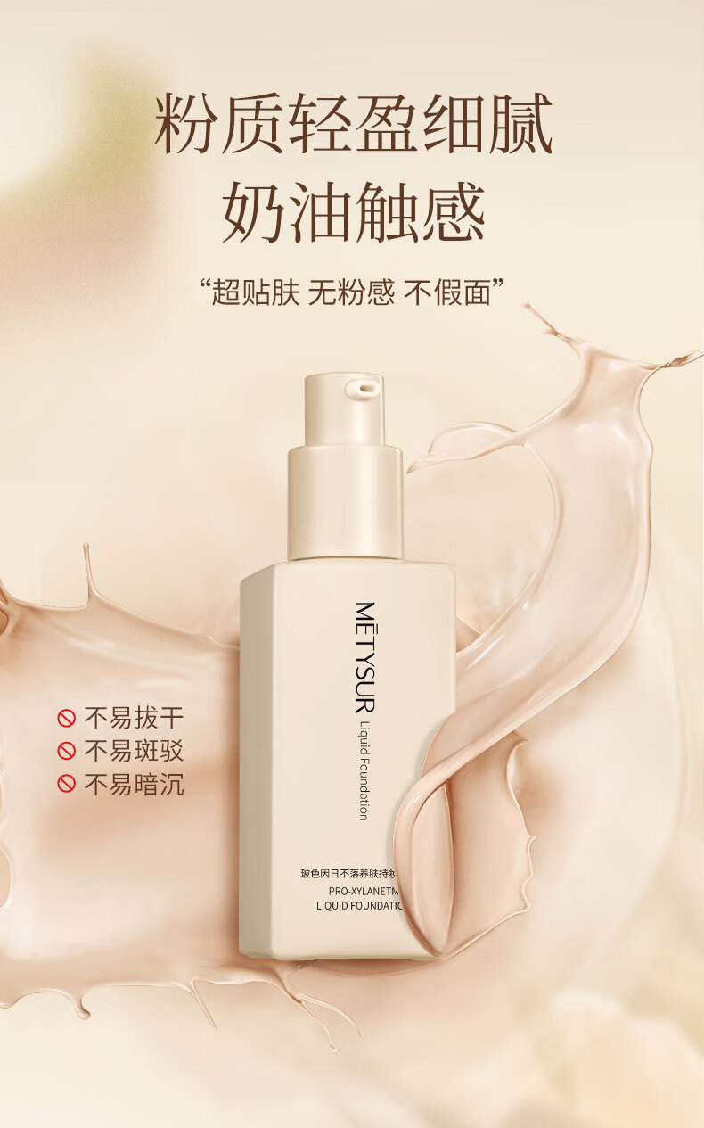 美媞秀(Metysur)持妆粉底液遮瑕持久防水不脱妆粉底液自然隐形控油养肤粉底液 象牙色