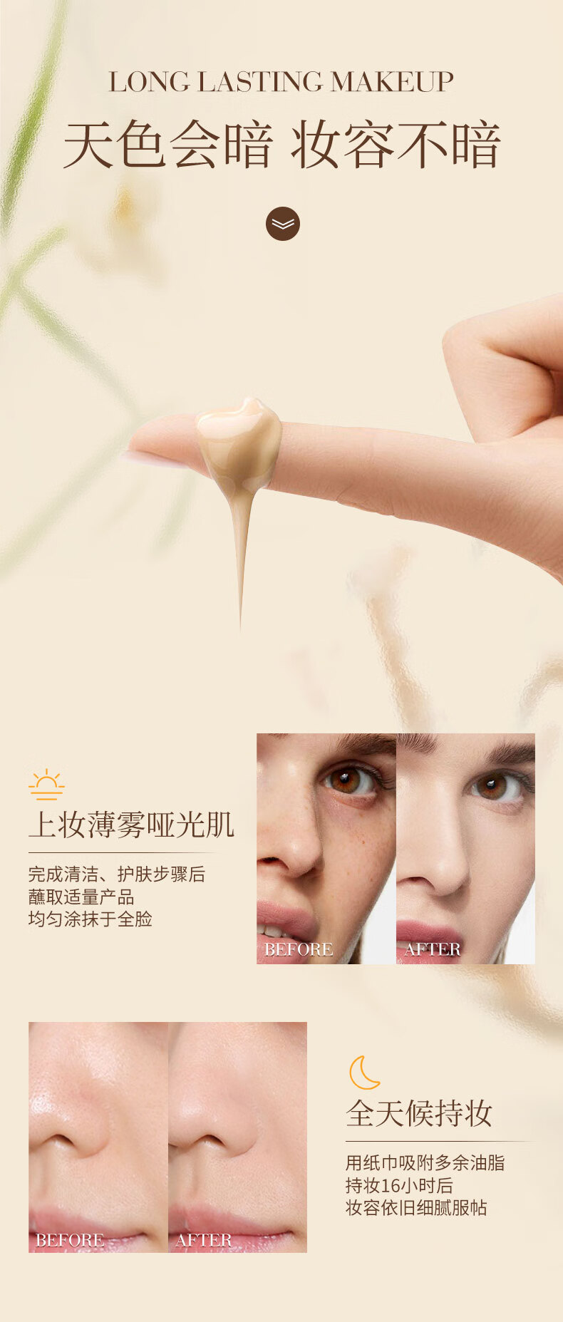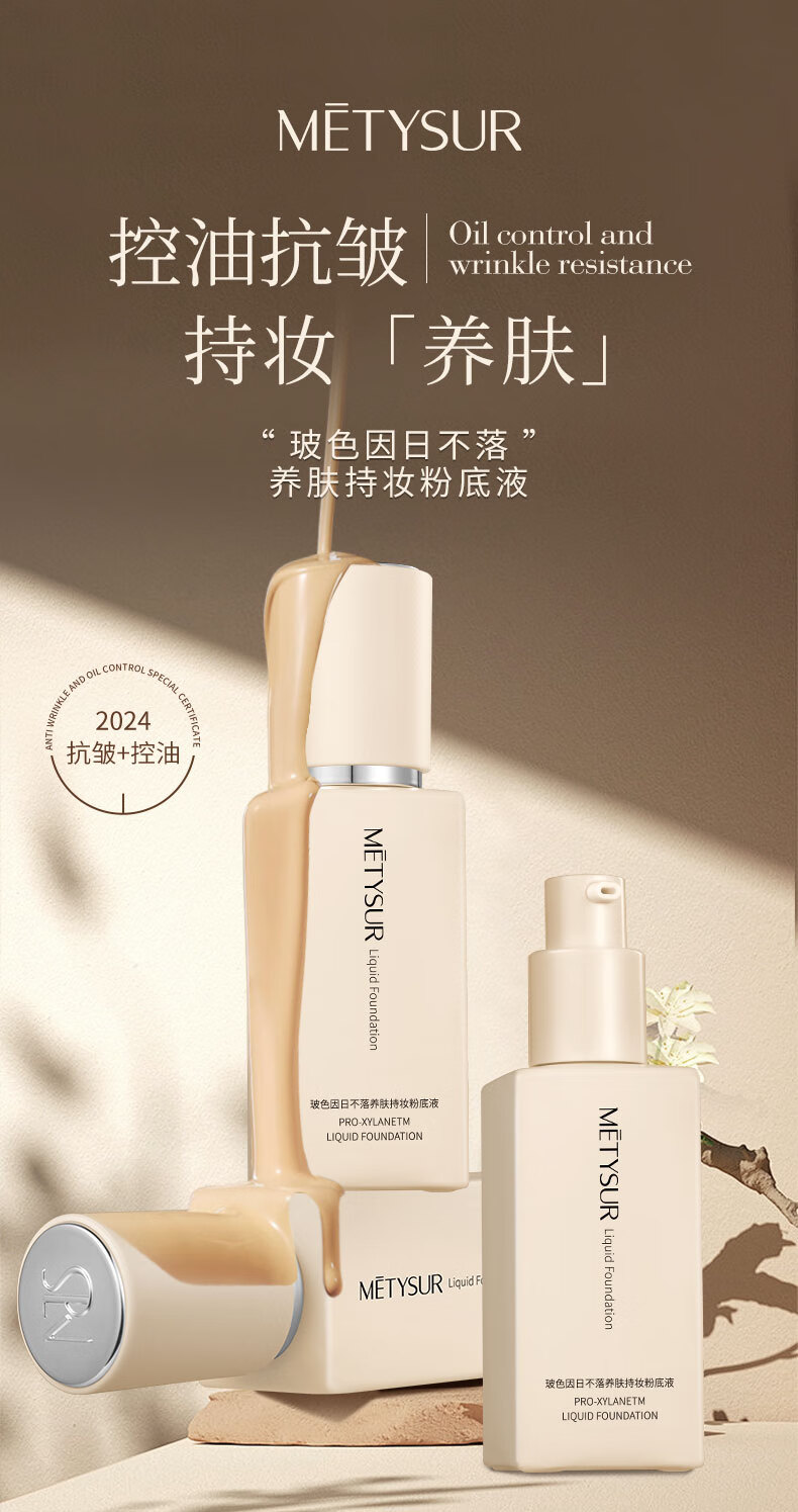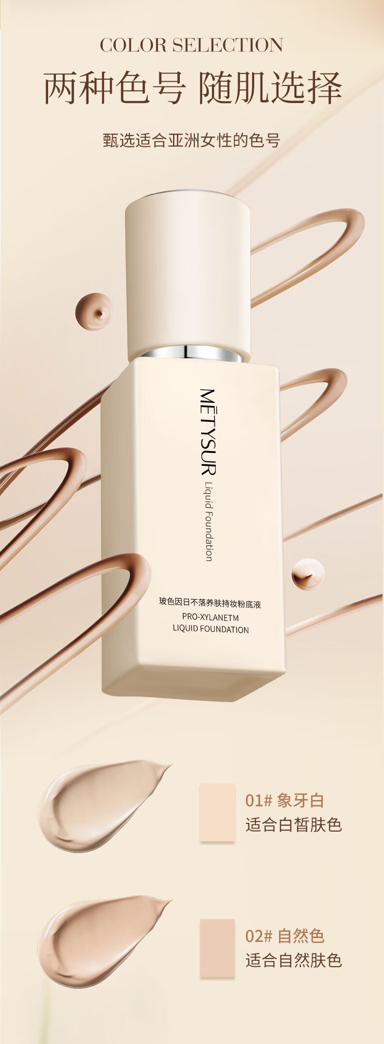 美媞秀(Metysur)持妆粉底液遮瑕持久防水不脱妆粉底液自然隐形控油养肤粉底液 象牙色