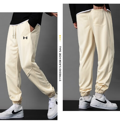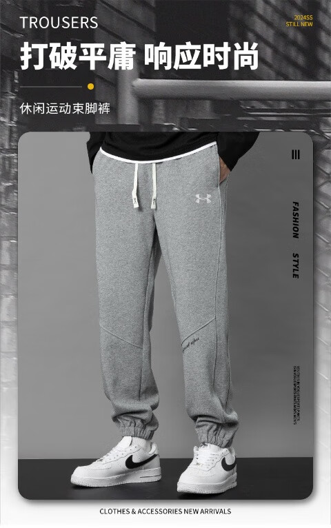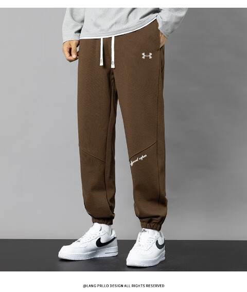 安德玛刺绣logo秋冬纯棉男士针织卫裤宽松束脚加绒运动裤保暖舒适长裤子 黑色冬季加绒款 L 建议体重100-120斤