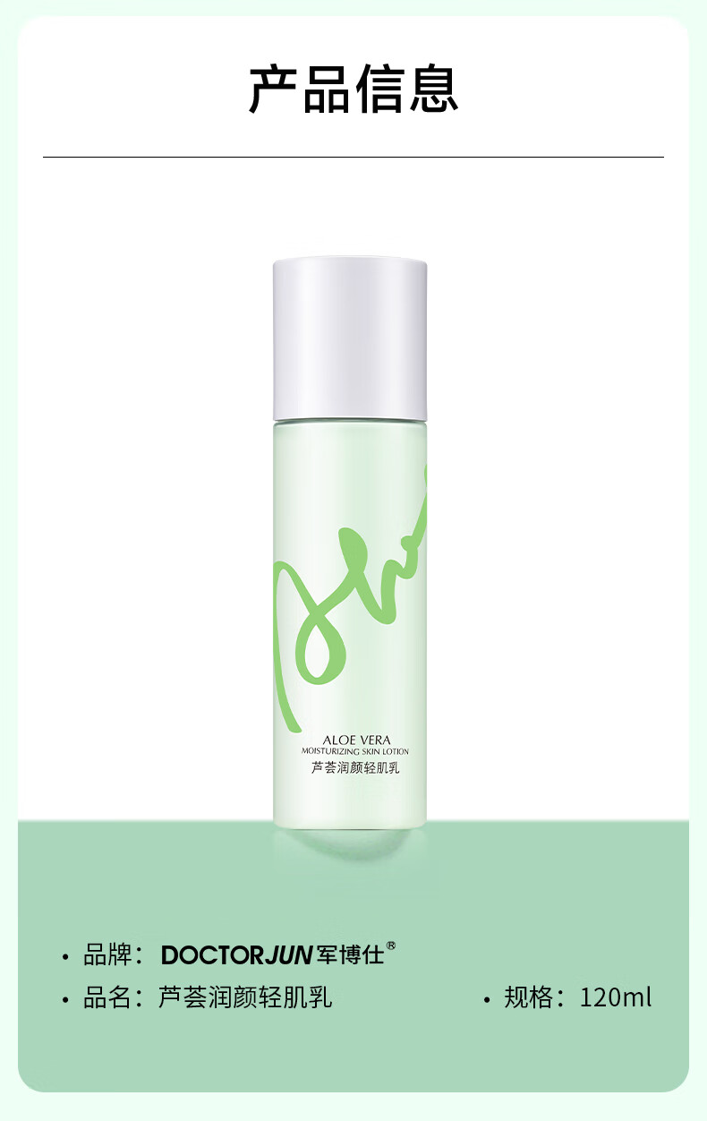 军博仕芦荟润颜轻肌乳 植萃养护配方 润泽肌肤 锁水保湿 乳液护肤品男女 军博仕芦荟润颜轻肌乳 120ml