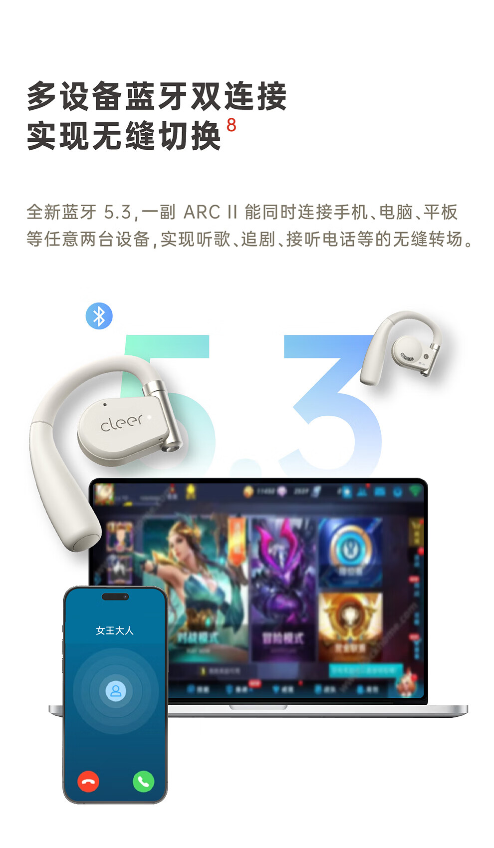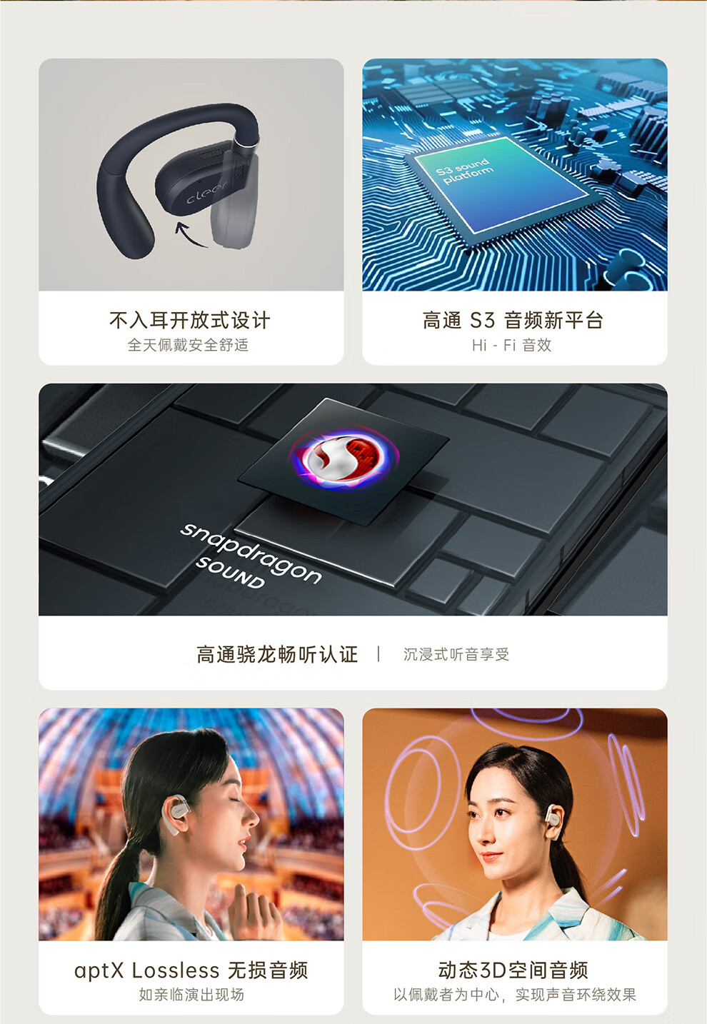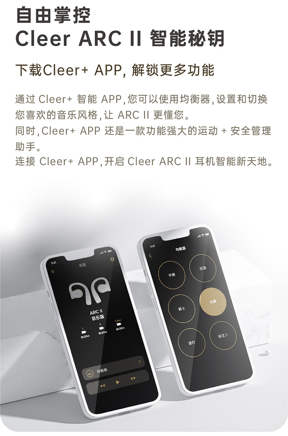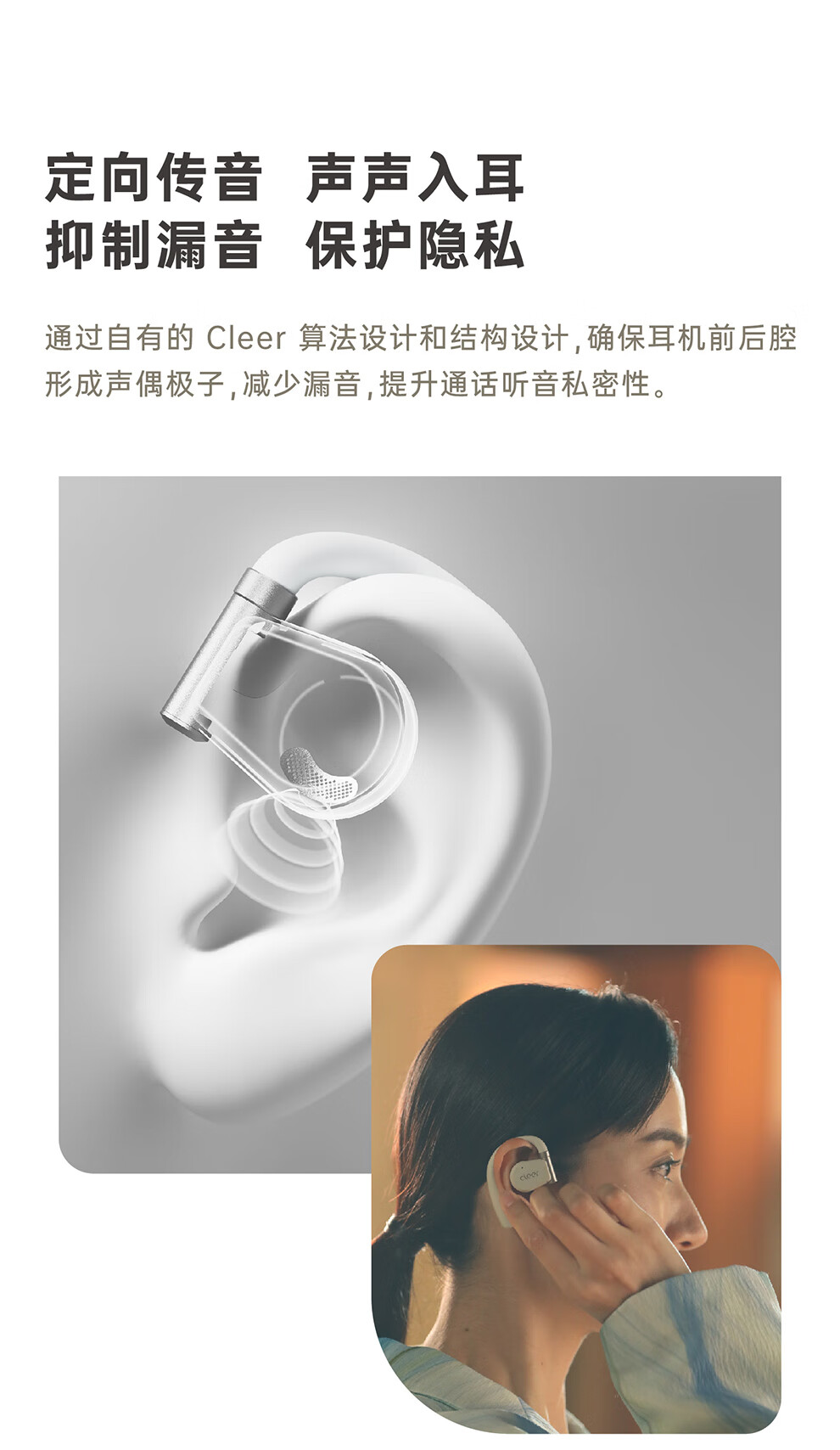 cleer ARC 2 代不入耳开放式智能音乐耳机无线蓝牙耳机开车跑步骑行挂耳式商务耳机适配华为苹果小米 薄荷绿【音乐版】