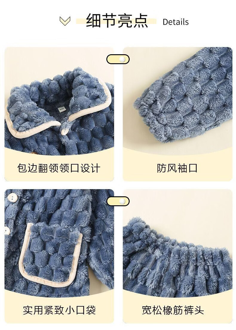 木木屋(mumuwu)【M】儿童法兰绒睡衣秋冬季男童女童加绒加厚宝宝小童珊瑚绒 浅蓝,深蓝【随机发】加厚绒睡衣套装 80码数【建议70-80cm】
