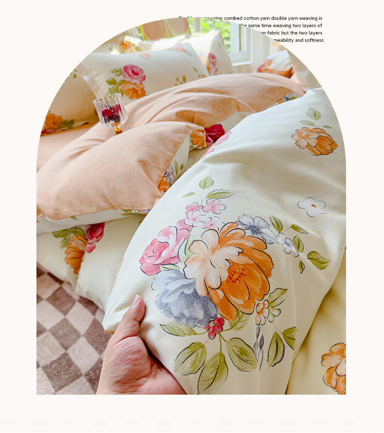 金号100%全棉加厚磨毛四件套单人学生宿舍被罩纯棉被套床单三件套套件 花园小兔【全棉磨毛】 单被套-【适150*200cm被芯】