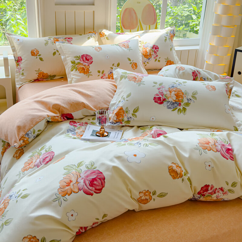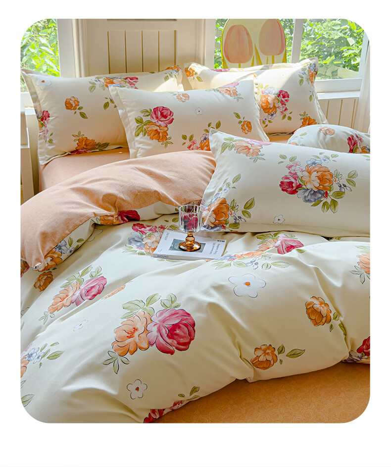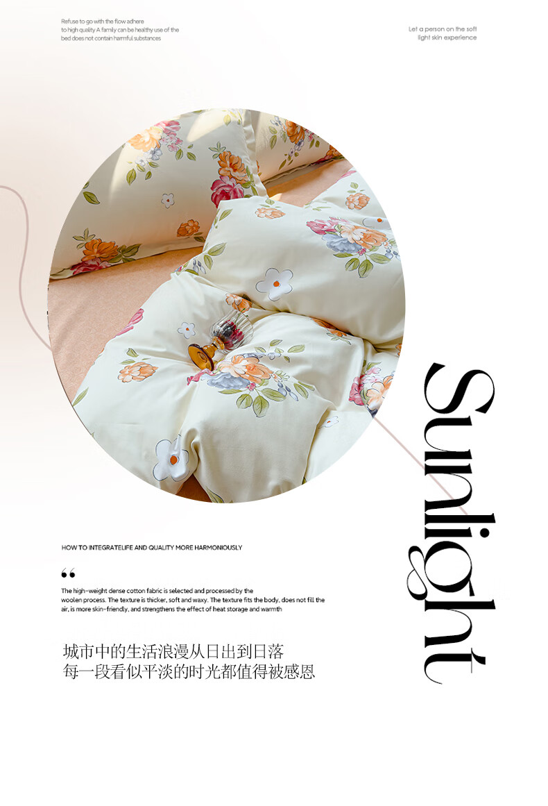 金号全棉加厚磨毛四件套单人学生宿舍被罩100%纯棉被套床单三件套套件 花花熊【A类100%全棉 加厚磨毛】 小号床单三件套(适合1.5m被芯)
