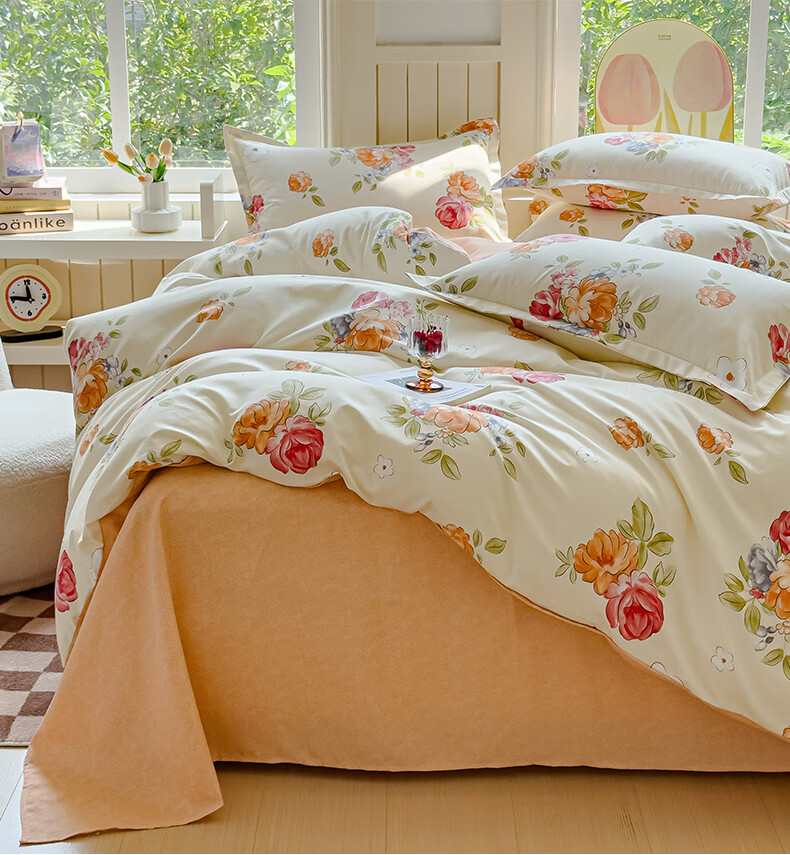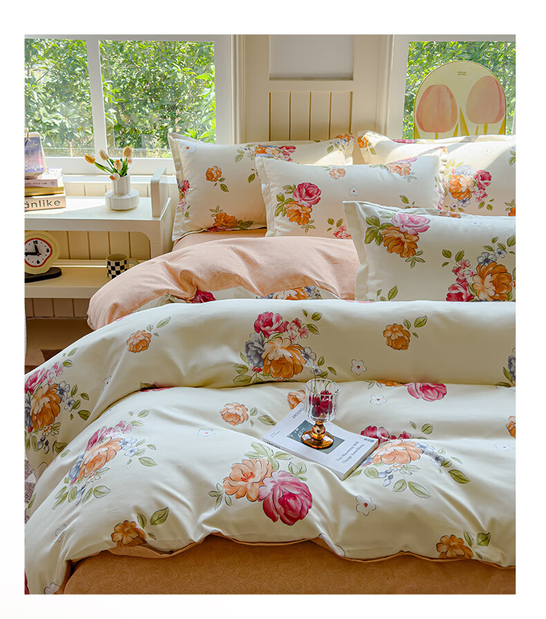 麦琪娜 斜纹磨毛四件套床上用品四件套双人床四件套简约床单被套四件套 40.01支 爱心 1.5/1.8米 床单款 被套200*230cm 四件套