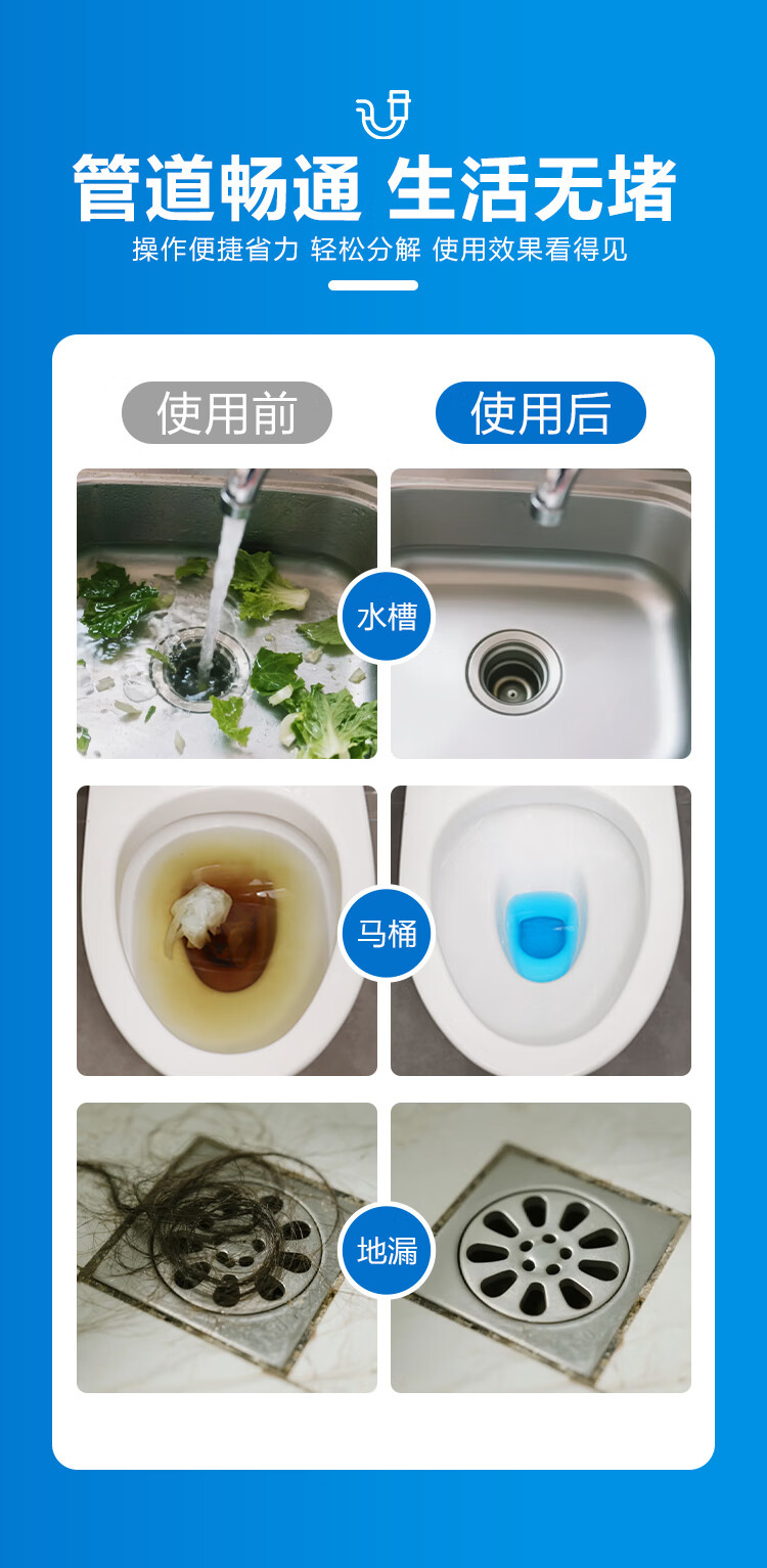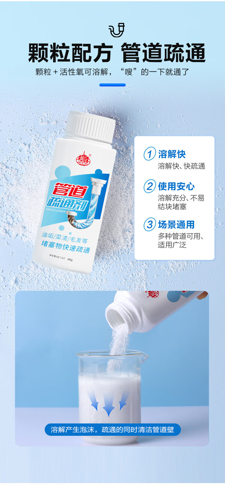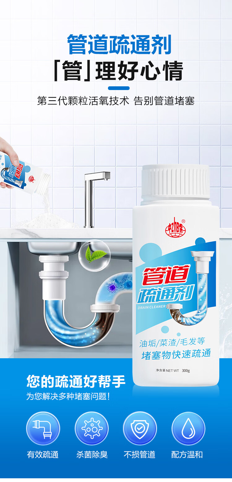 赵师傅管道疏通剂厨房油污卫生间通下水道马桶除臭清洁剂地漏溶解粉剂 300g*3瓶