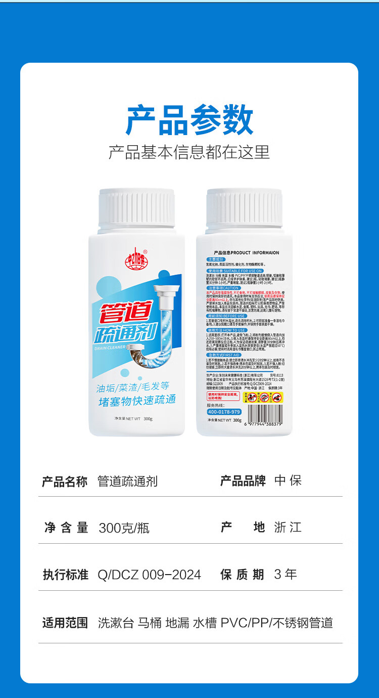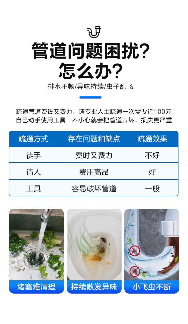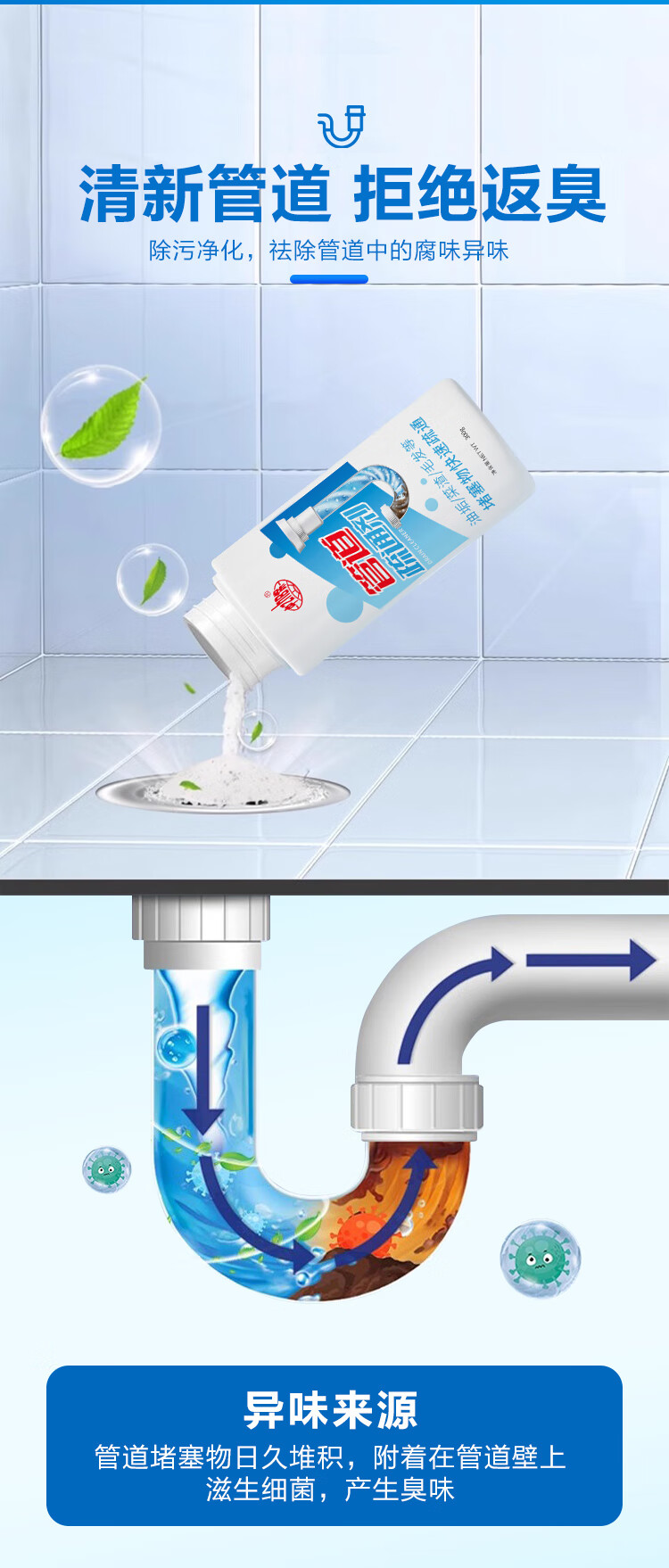 赵师傅管道疏通剂厨房油污卫生间通下水道马桶除臭清洁剂地漏溶解粉剂 300g*3瓶