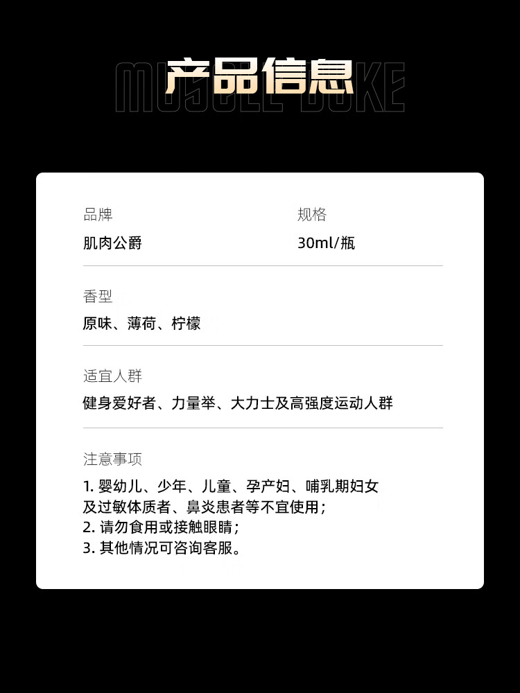 肌肉公爵MD嗅盐健身提神跑步溴盐举重一发入魂爆发力/次日达 薄荷提神