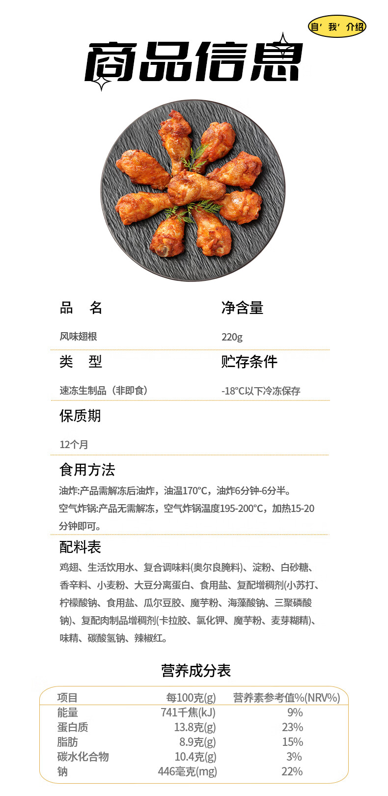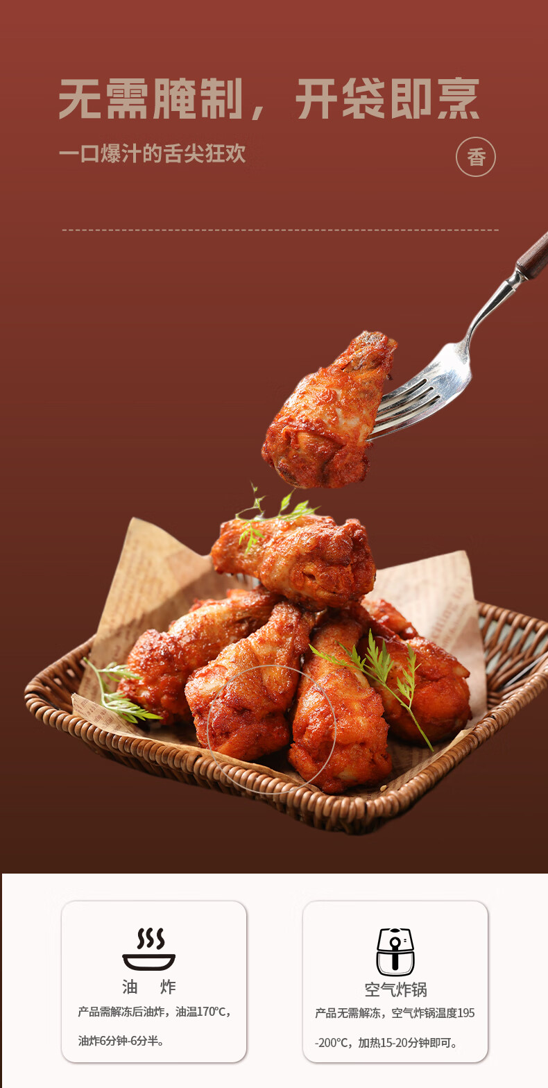 禾豊风味翅根奥尔良鸡翅根奥尔良腌制翅根烧烤半成品空气炸锅顺丰 风味翅根3袋装(共660g)