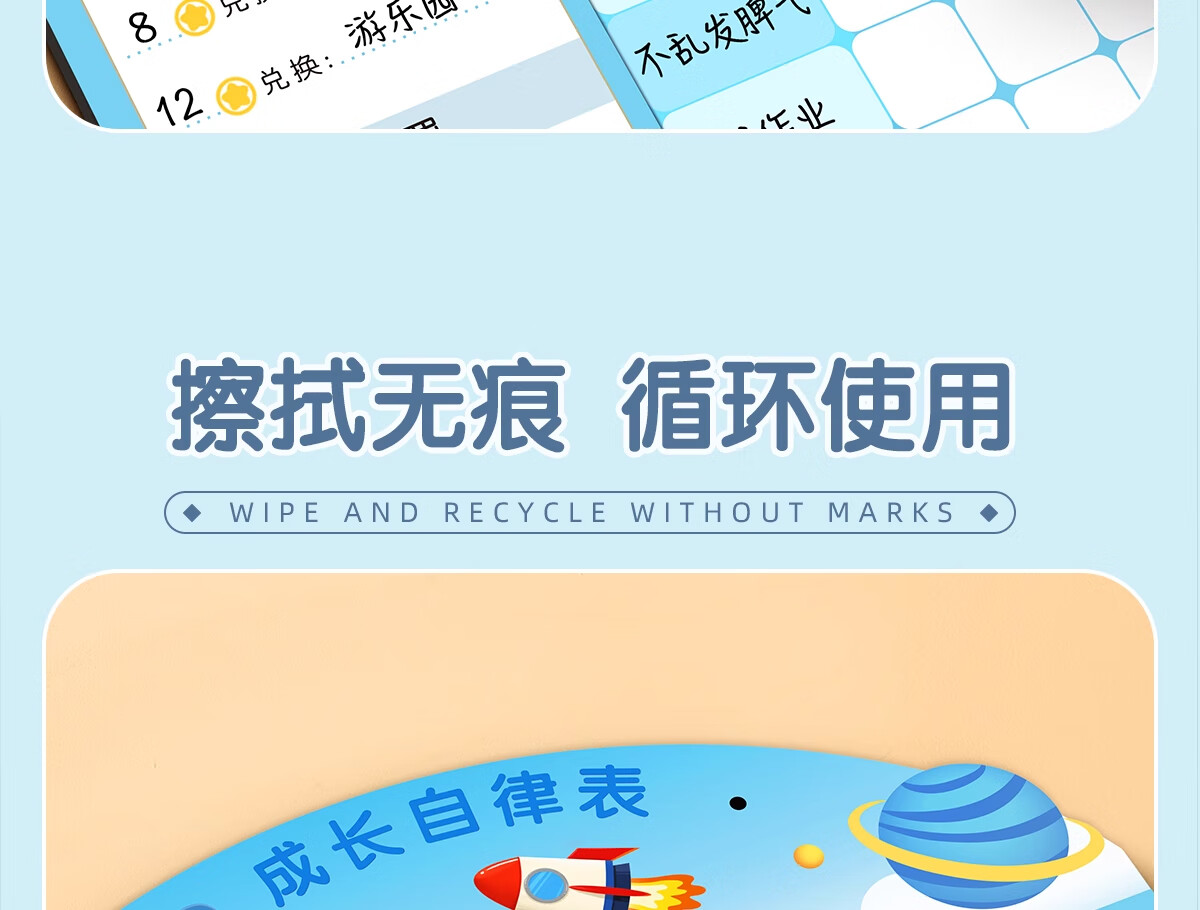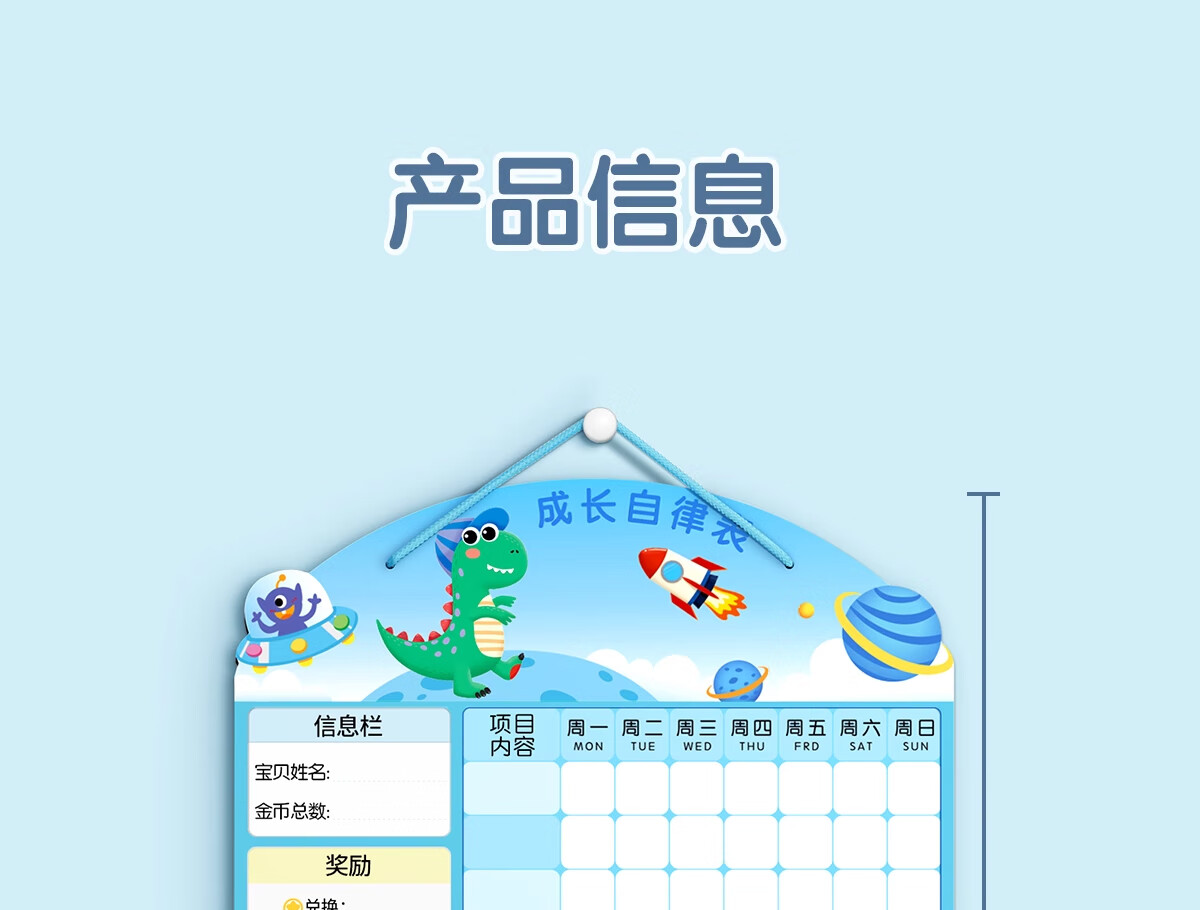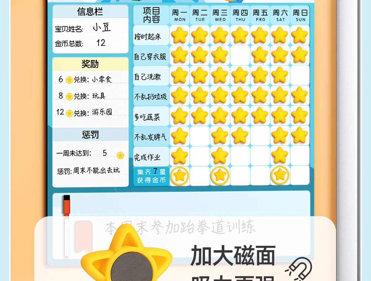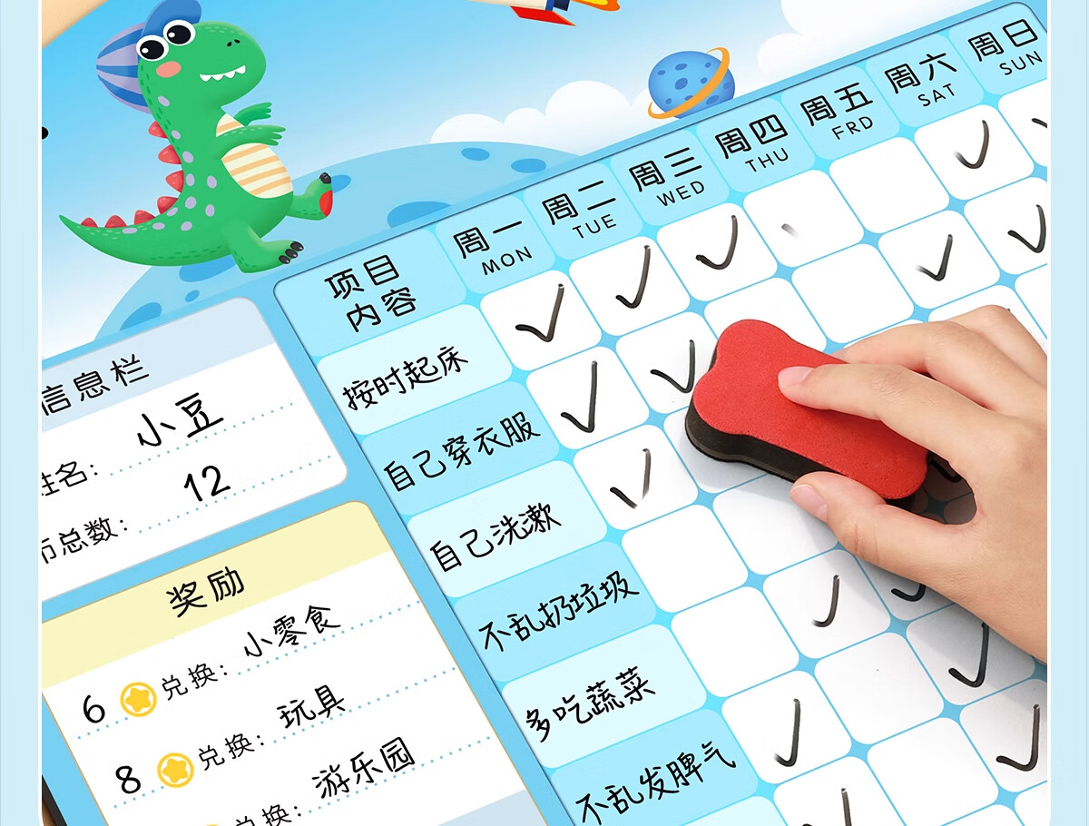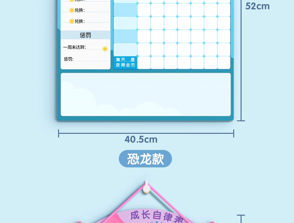 金枝叶儿童成长自律表奖励记录学习计划表孩子的积分卡贴纸鼓励墙贴榜表扬好习惯养成宝宝幼儿小红花打卡 【恐龙款】升级款(49颗星星+7颗金币)