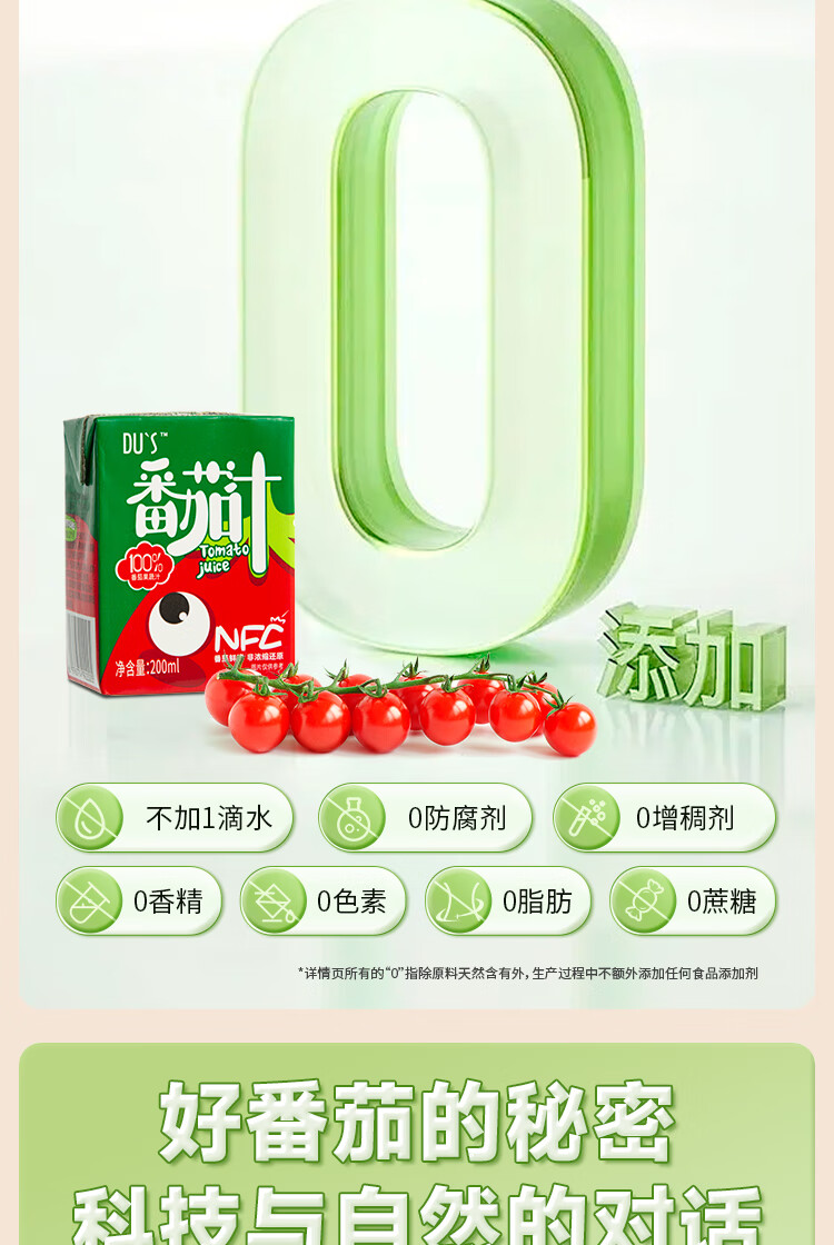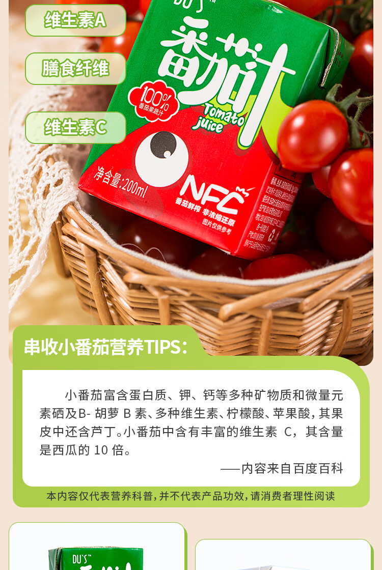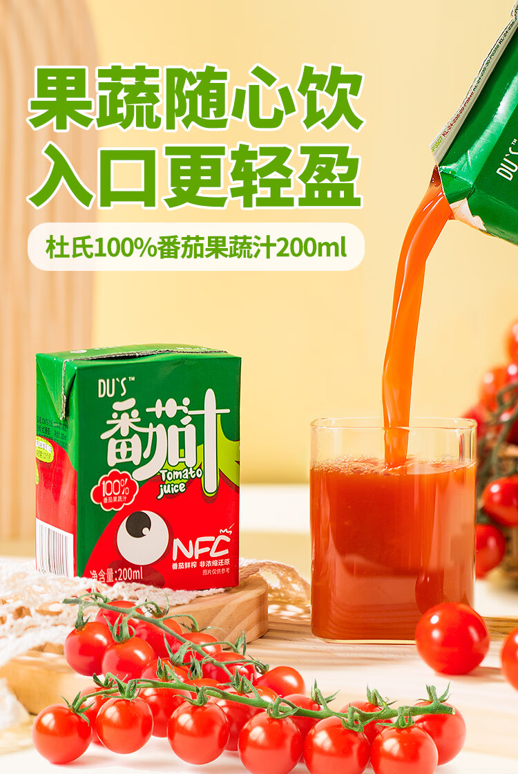 DU'S杜氏100%番茄汁nfc果汁原浆 0脂0蔗糖0添加 200ml/盒 200ml*12盒(红番茄汁)