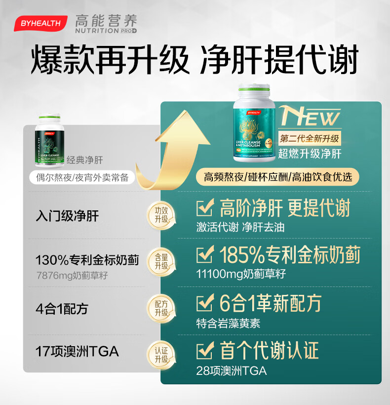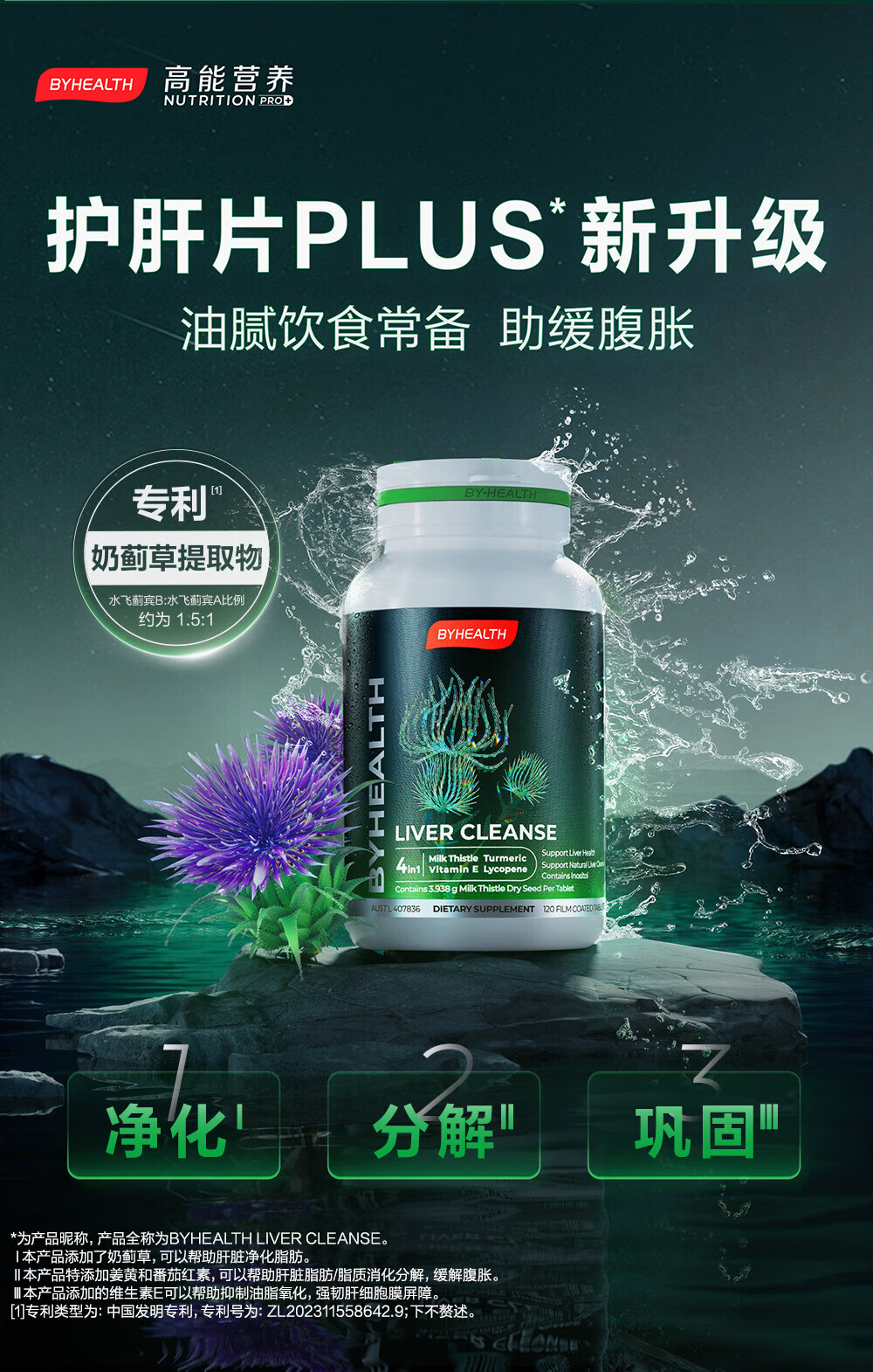 汤臣倍健(BYHEALTH)护肝片二代升级版奶蓟草水飞蓟净肝解酒护肝熬夜烟酒脂肪肝保健品 【改善指标】护肝PLUS升级版120粒*2