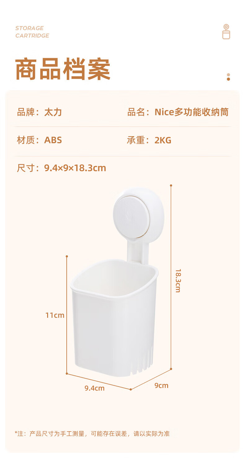 太力吸盘筷子收纳盒沥水筷子筒 厨房置物架筷笼吸盘壁挂1个装