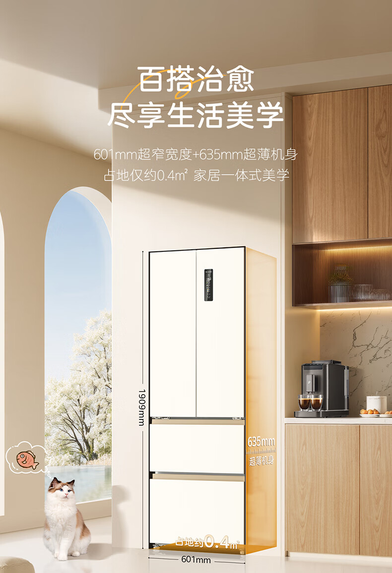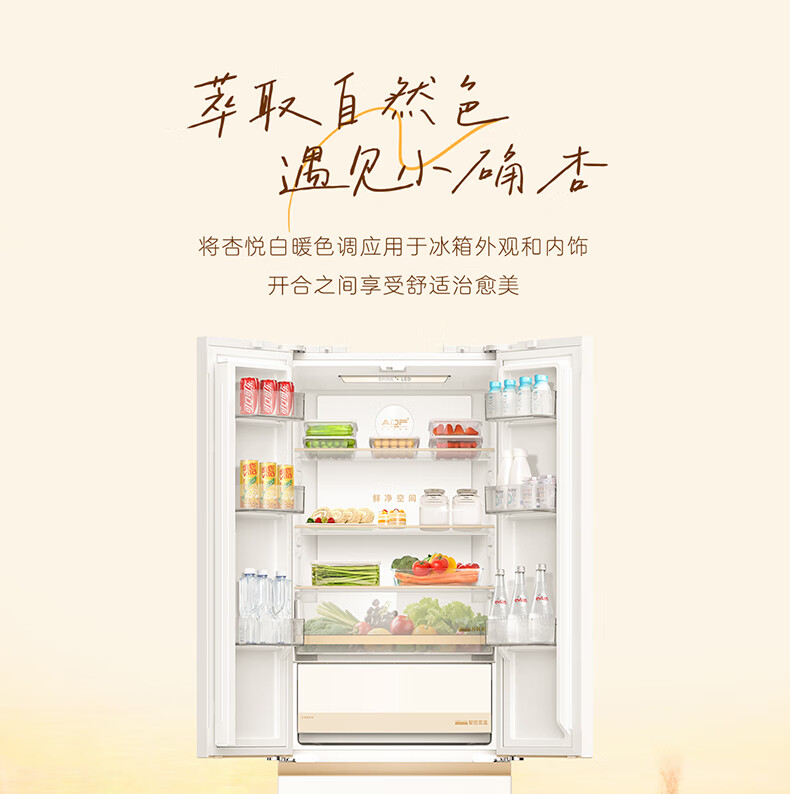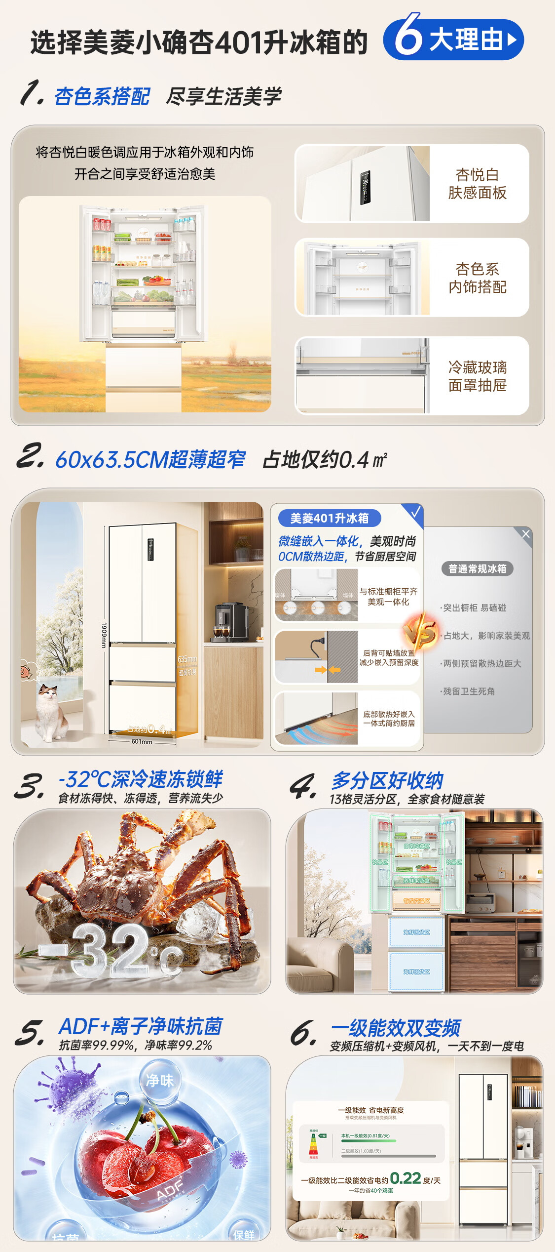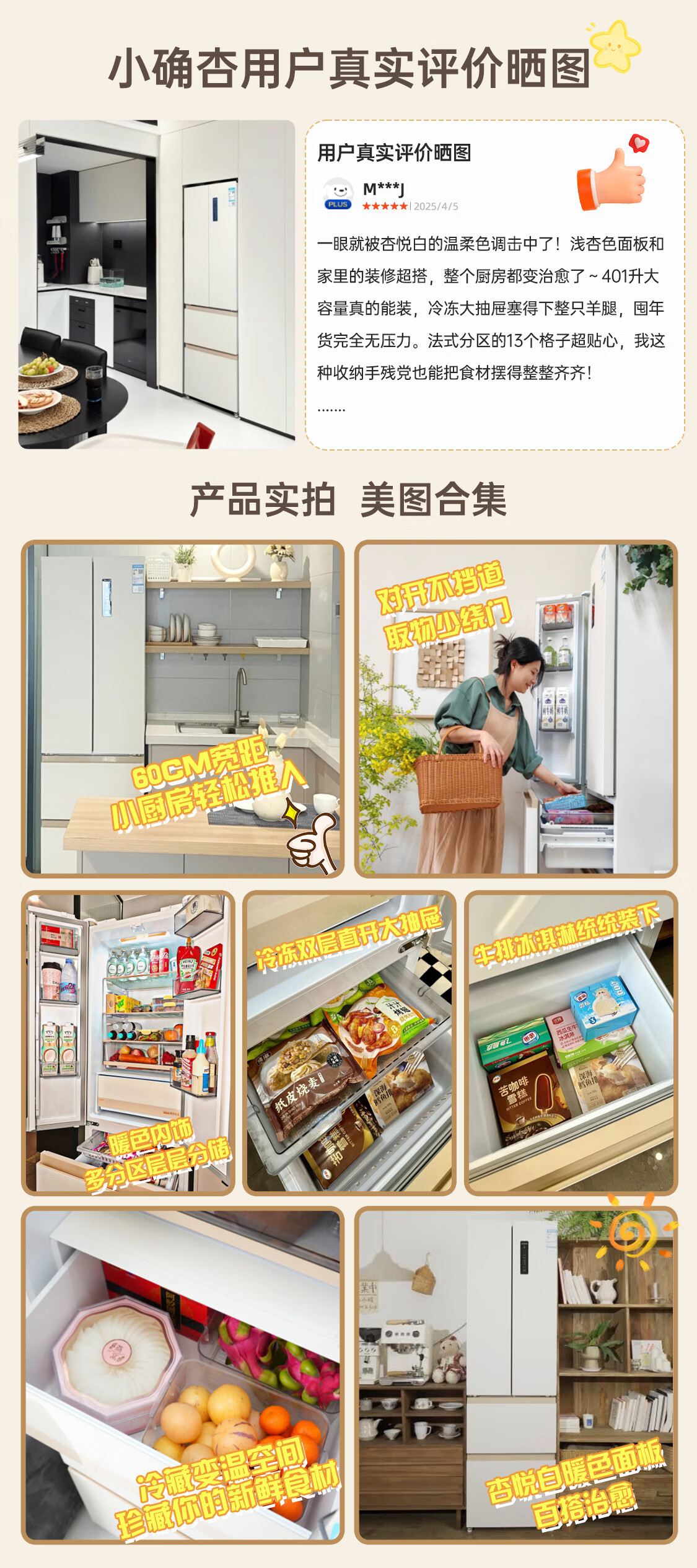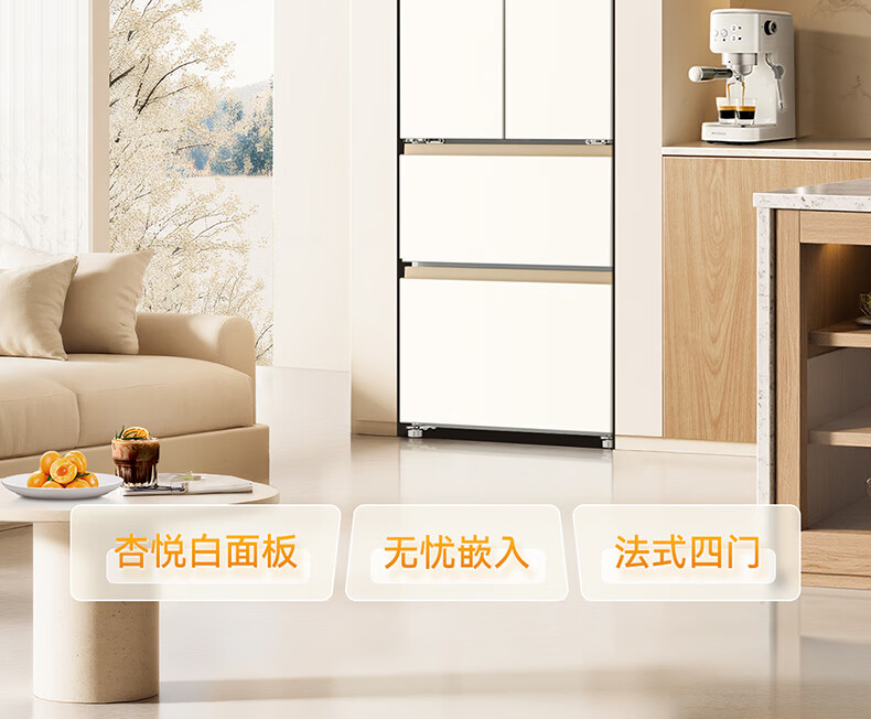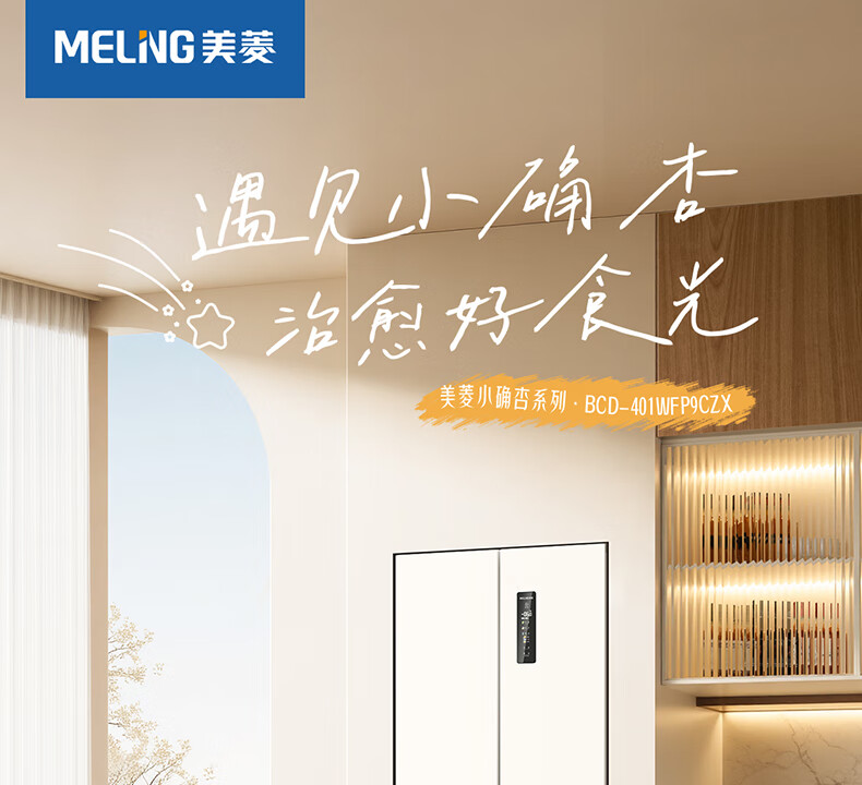 美菱(MeiLing)小确杏401升法式多门冰箱小户型家用底部散热60cm宽超薄窄门嵌入风冷无霜BCD-401WFP9CZX国家补贴