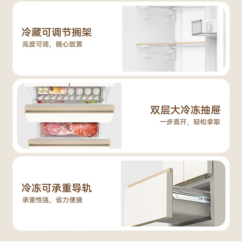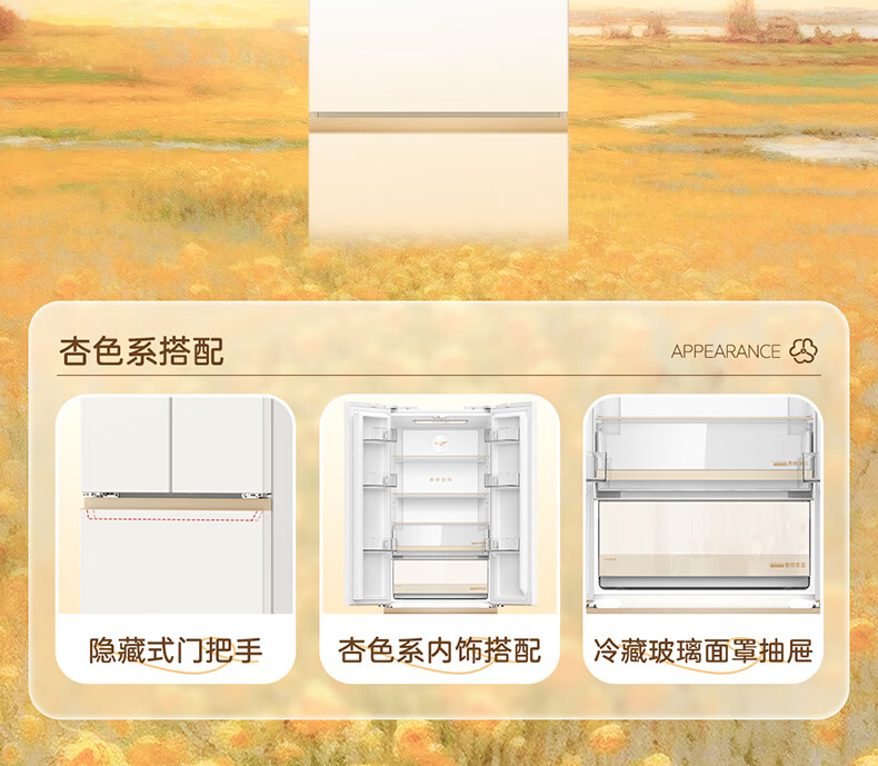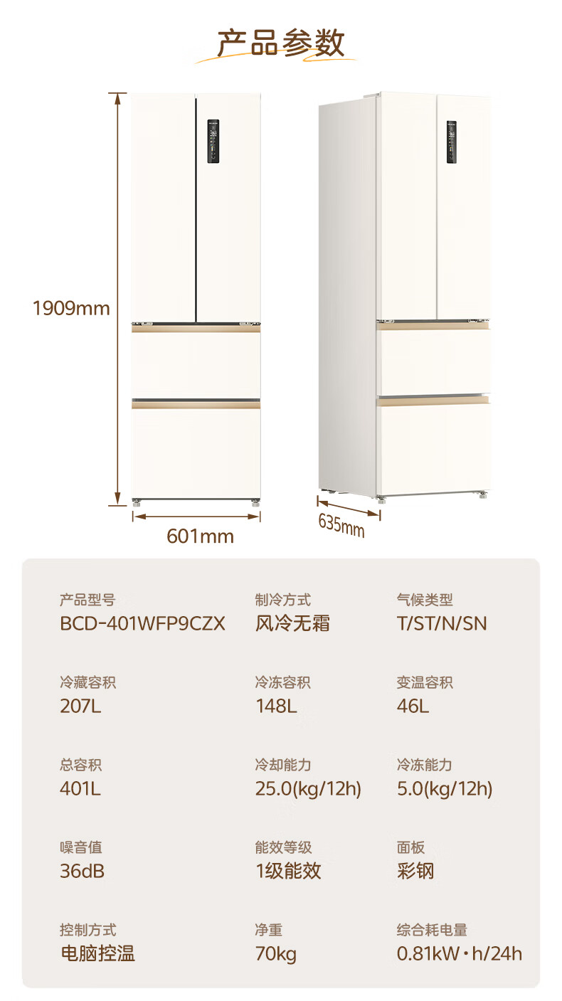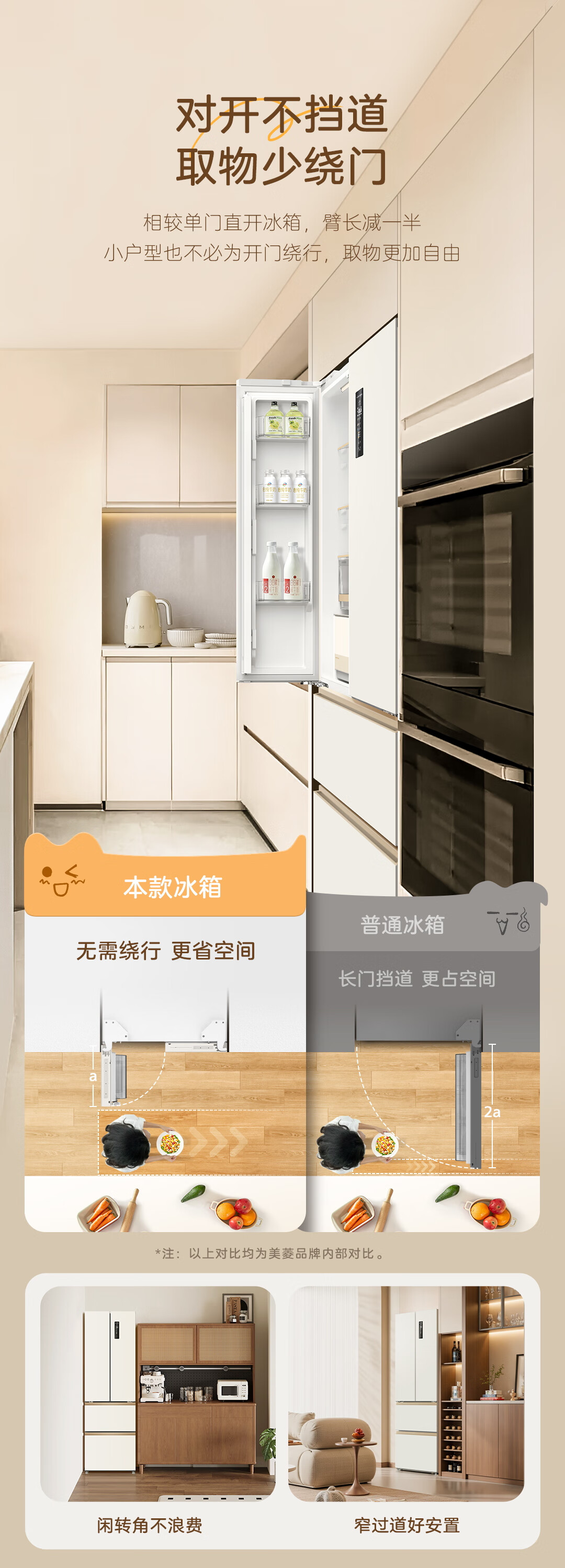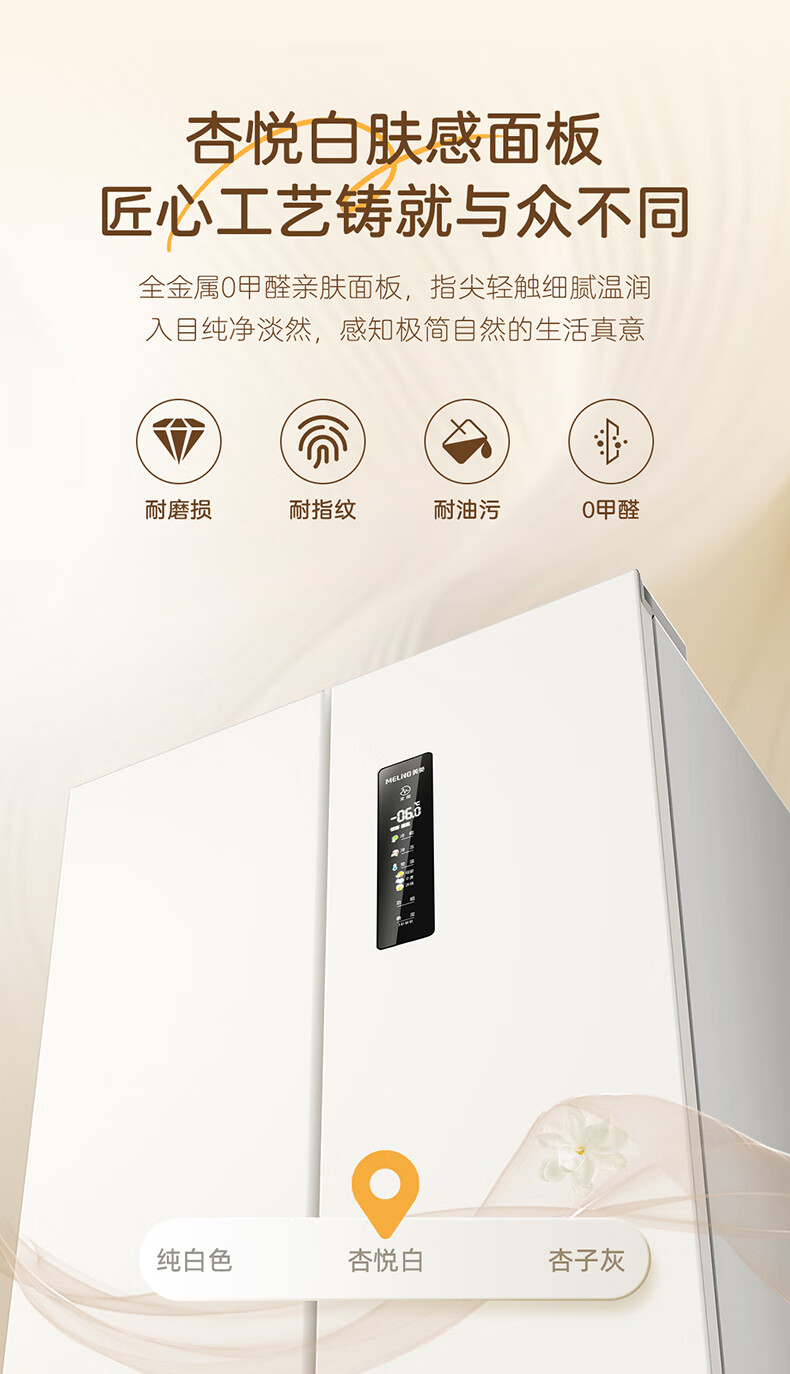 美菱(MeiLing)小确杏401升法式多门冰箱小户型家用底部散热60cm宽超薄窄门嵌入风冷无霜BCD-401WFP9CZX国家补贴