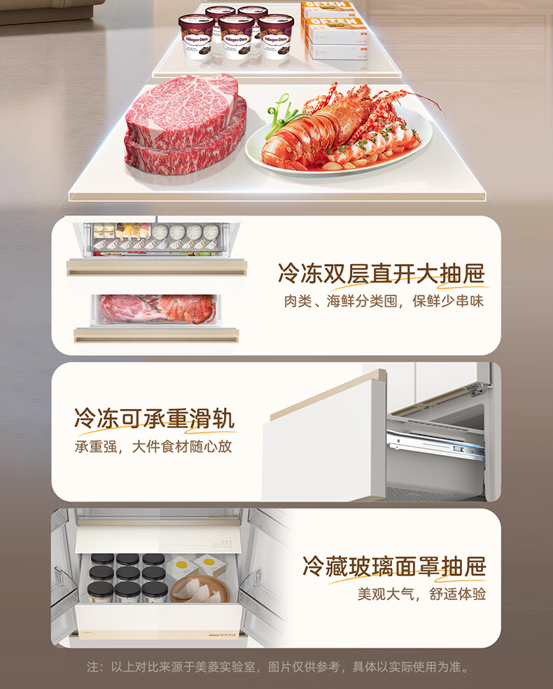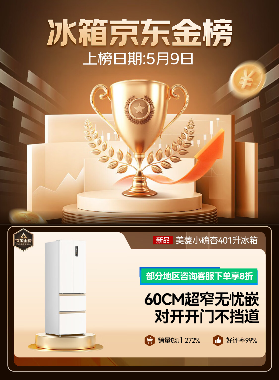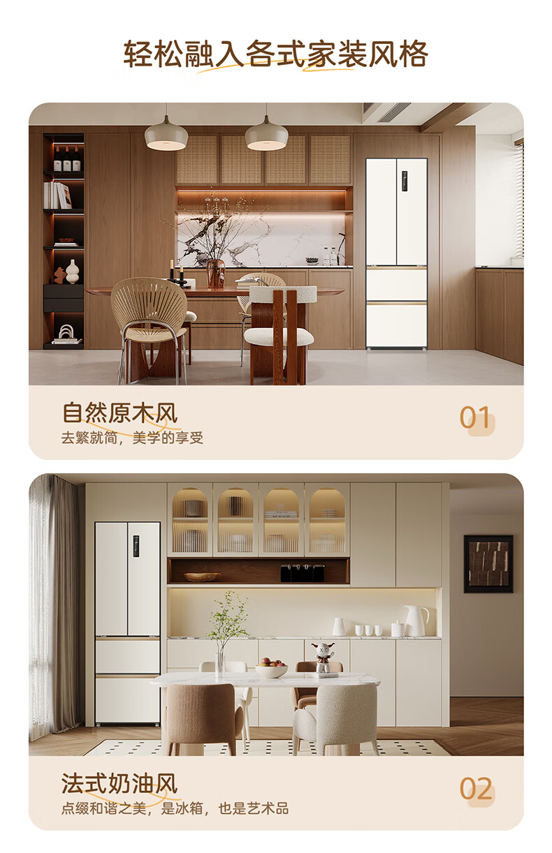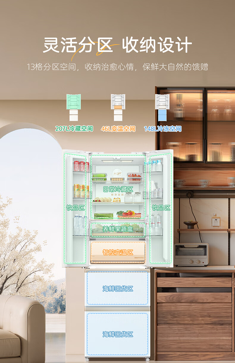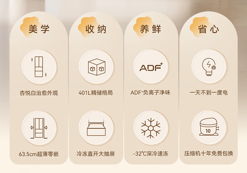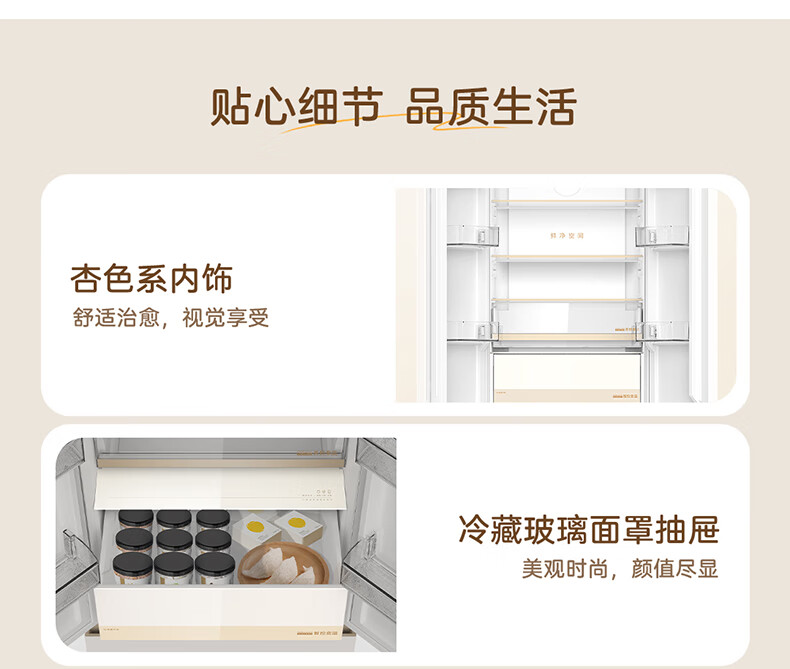 美菱(MeiLing)小确杏401升法式多门冰箱小户型家用底部散热60cm宽超薄窄门嵌入风冷无霜BCD-401WFP9CZX国家补贴