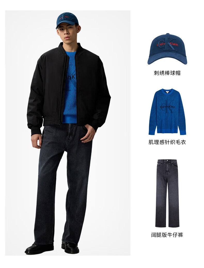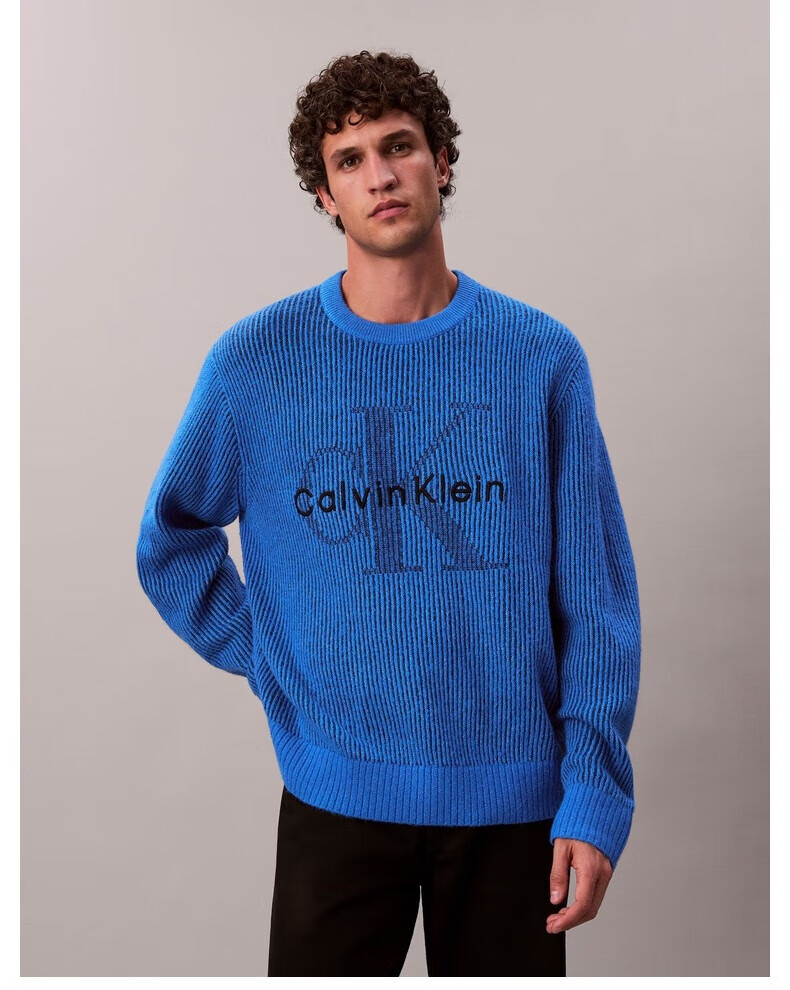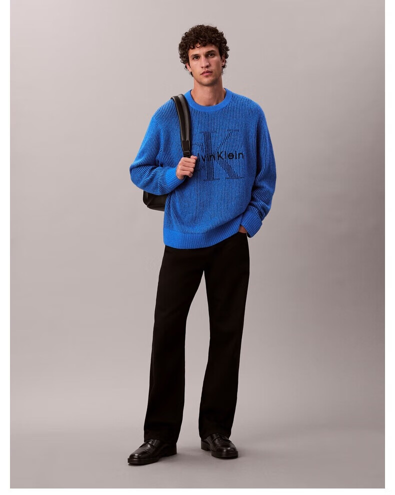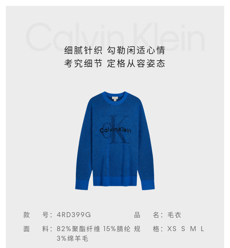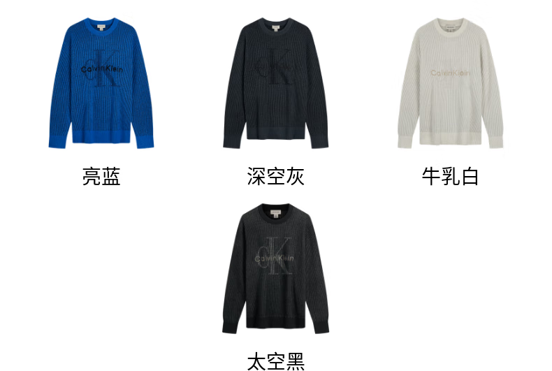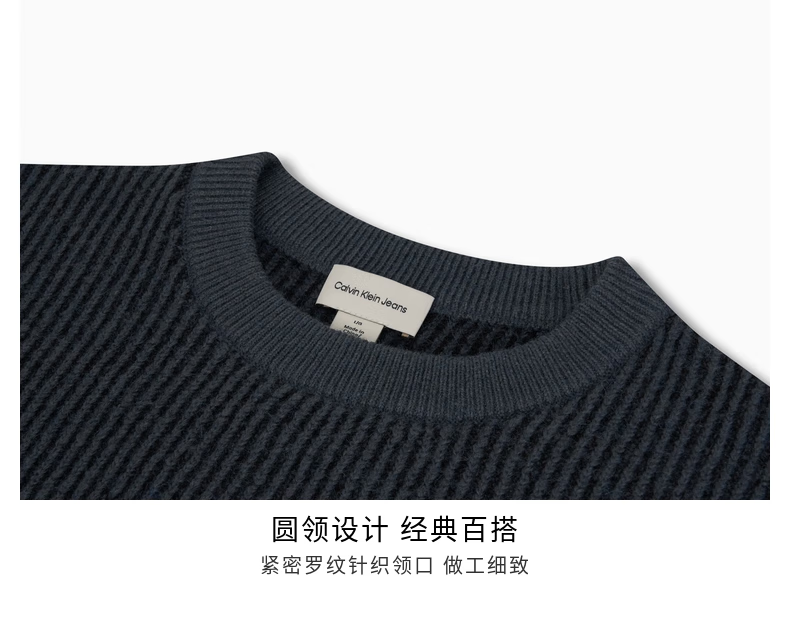 Calvin KleinJeans25秋季新款男女情侣休闲通勤ck肌理感字母内搭打底针织毛衣 WD7-深空灰 M