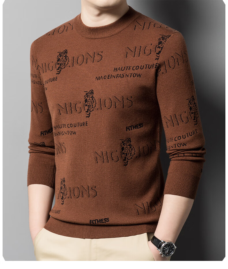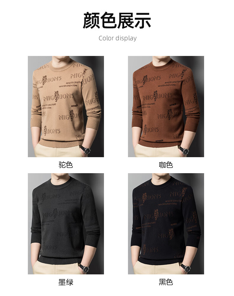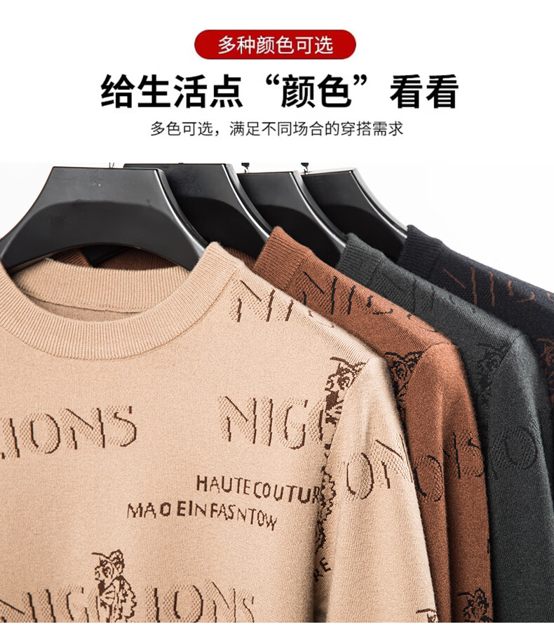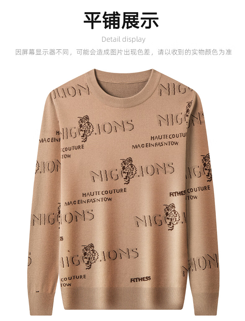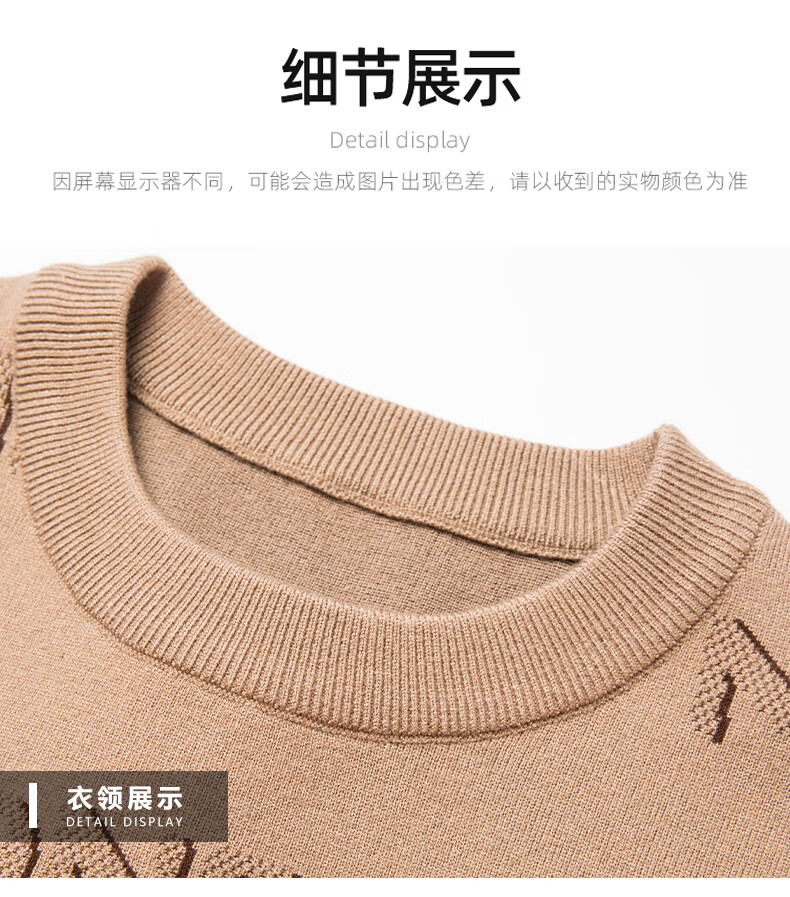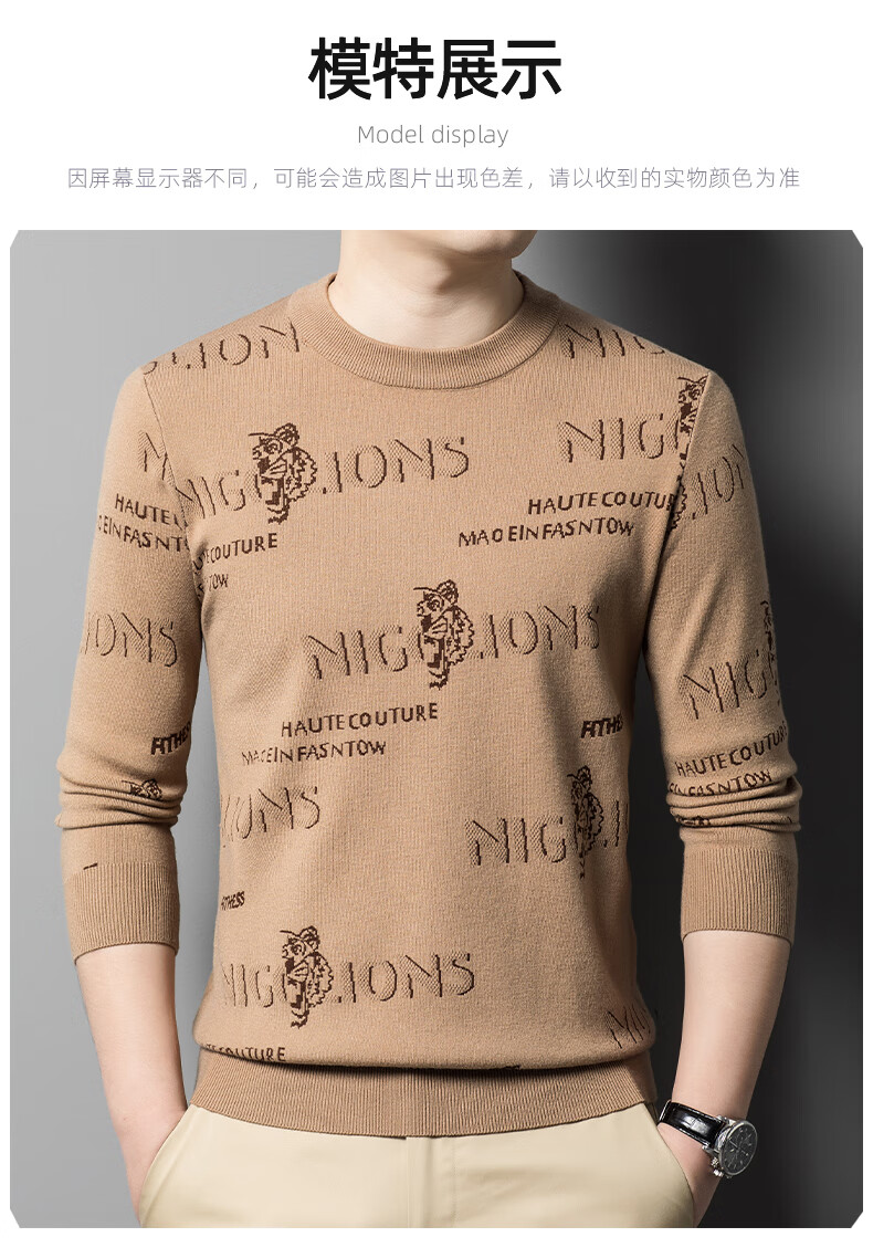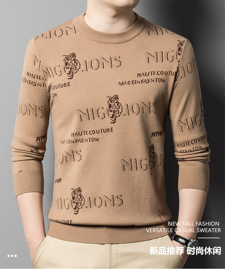 法莱阿玛尼高端品牌2025新款秋季款男针织衫秋冬季圆领保暖上衣男士毛 驼色22315 M 165 建议95-115斤