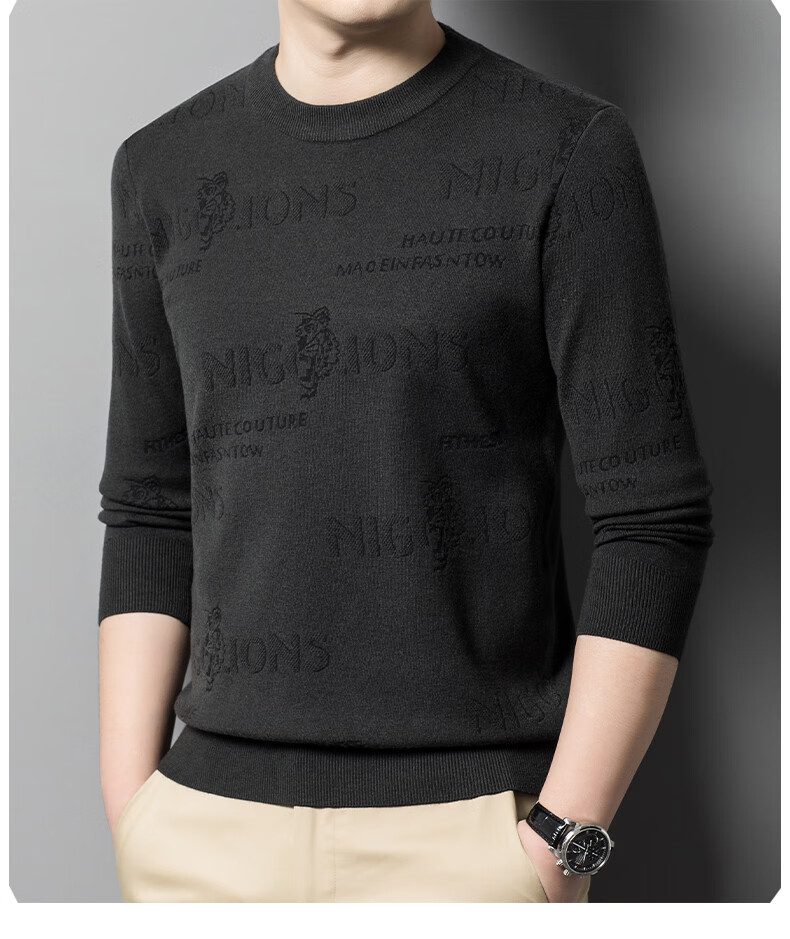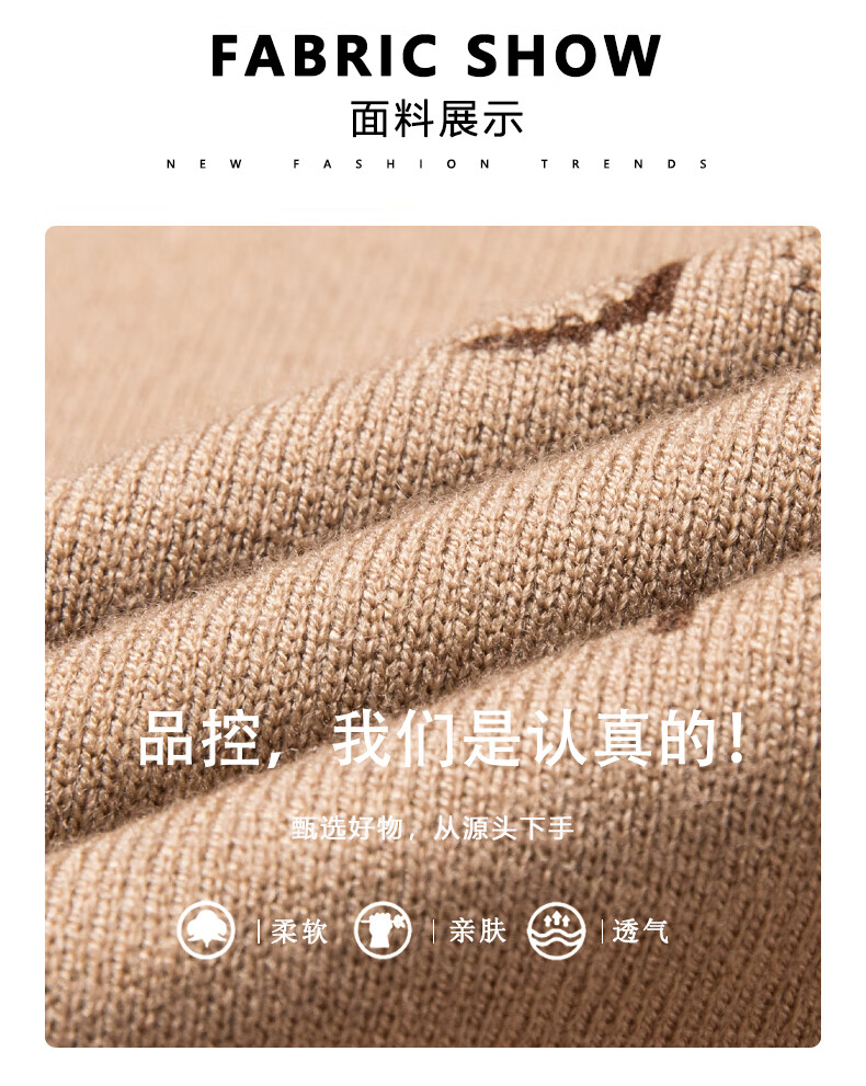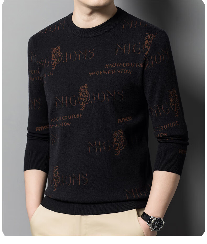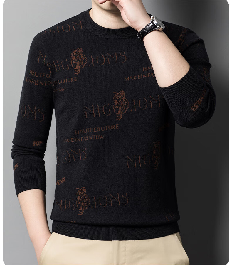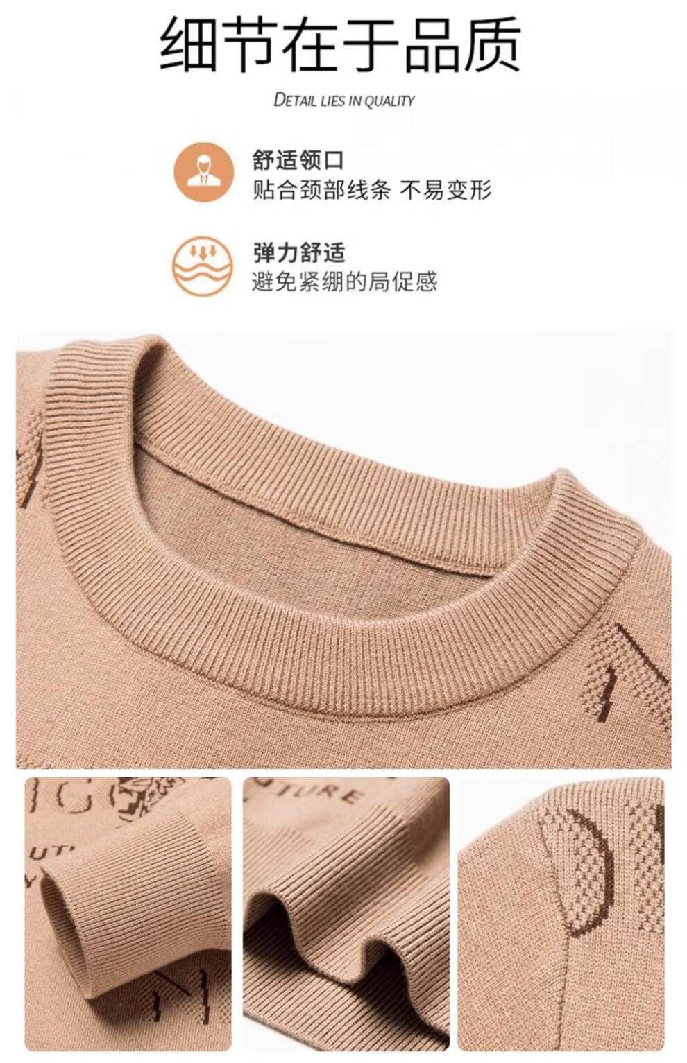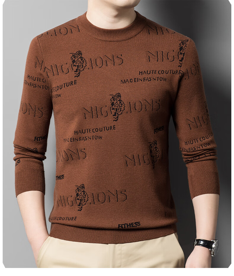 法莱阿玛尼高端品牌2025新款秋季款男针织衫秋冬季圆领保暖上衣男士毛 驼色22315 M 165 建议95-115斤