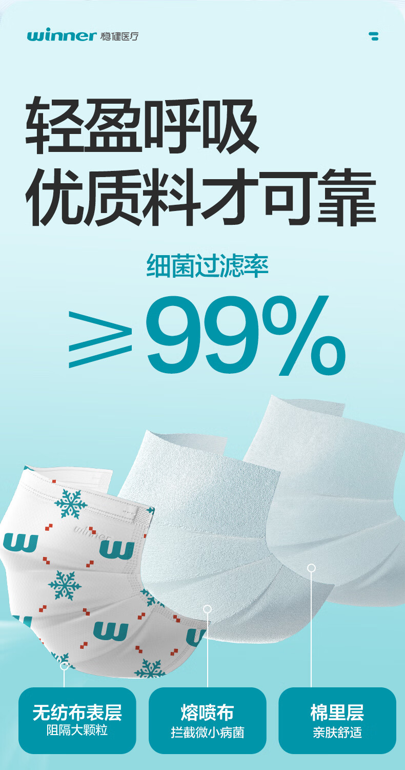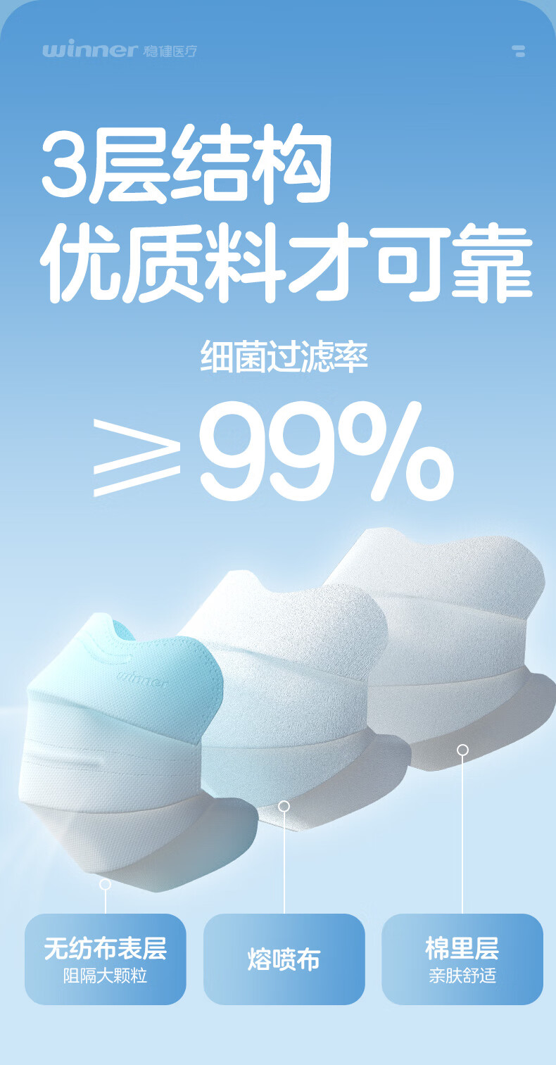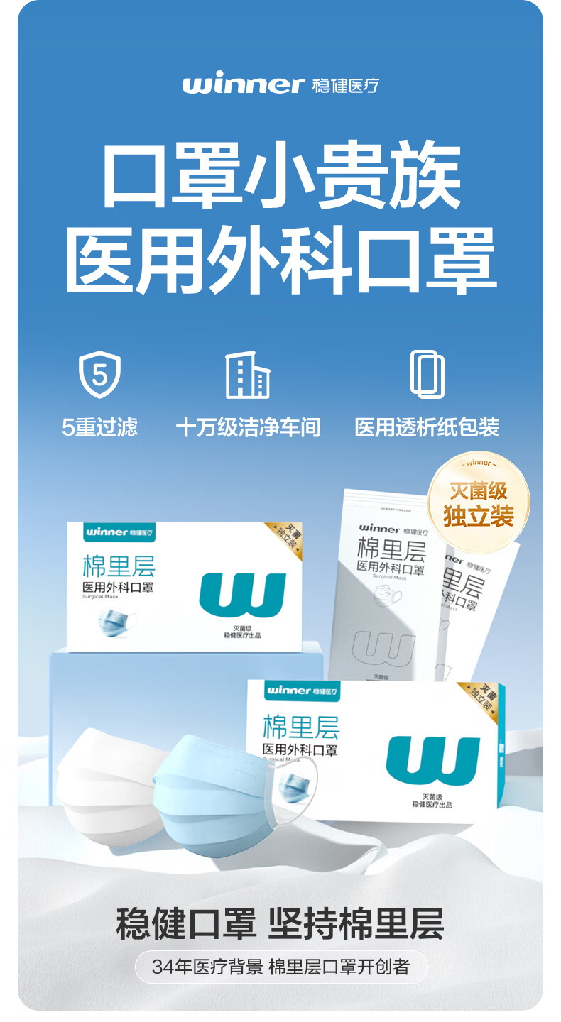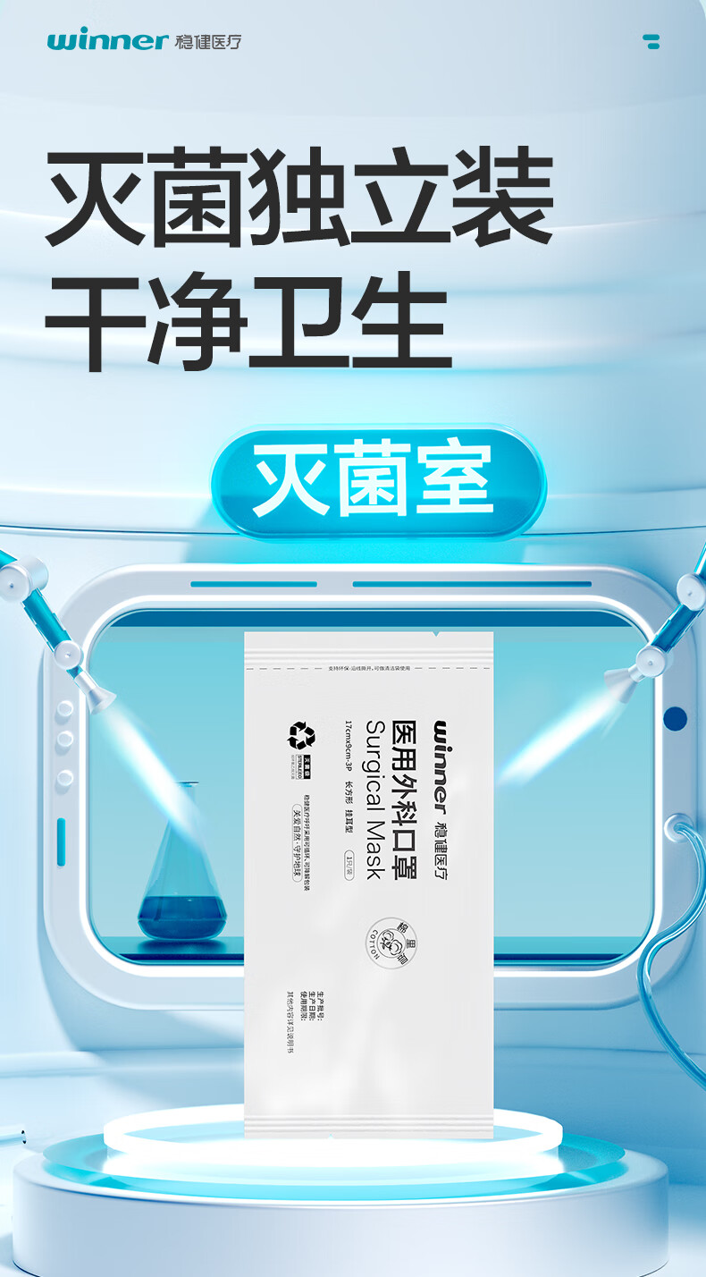 稳健医用外科口罩独立装灭菌成人口罩一次性冬季保暖防风口罩防细菌 【镇店爆款】成人款蓝色 50袋/盒